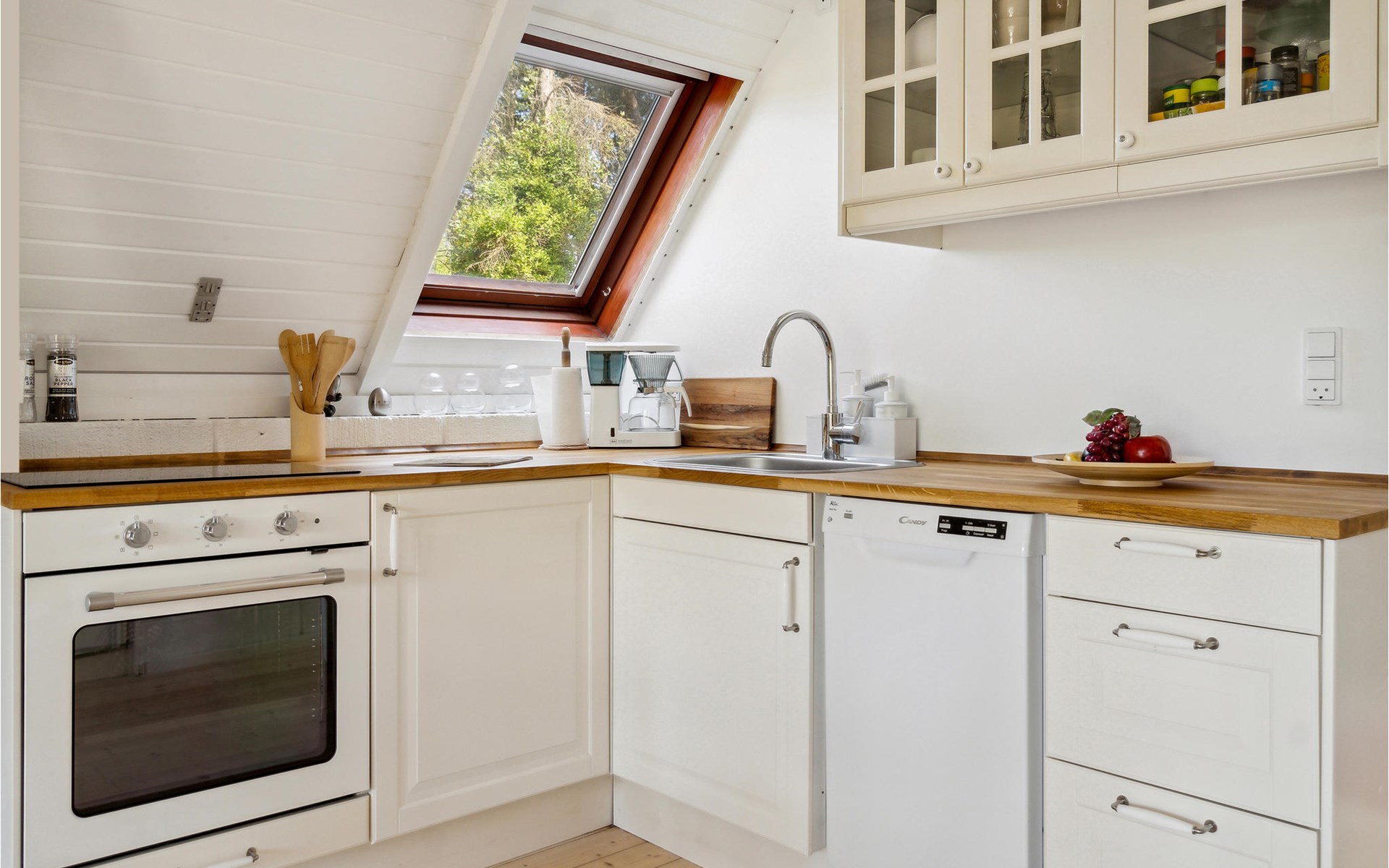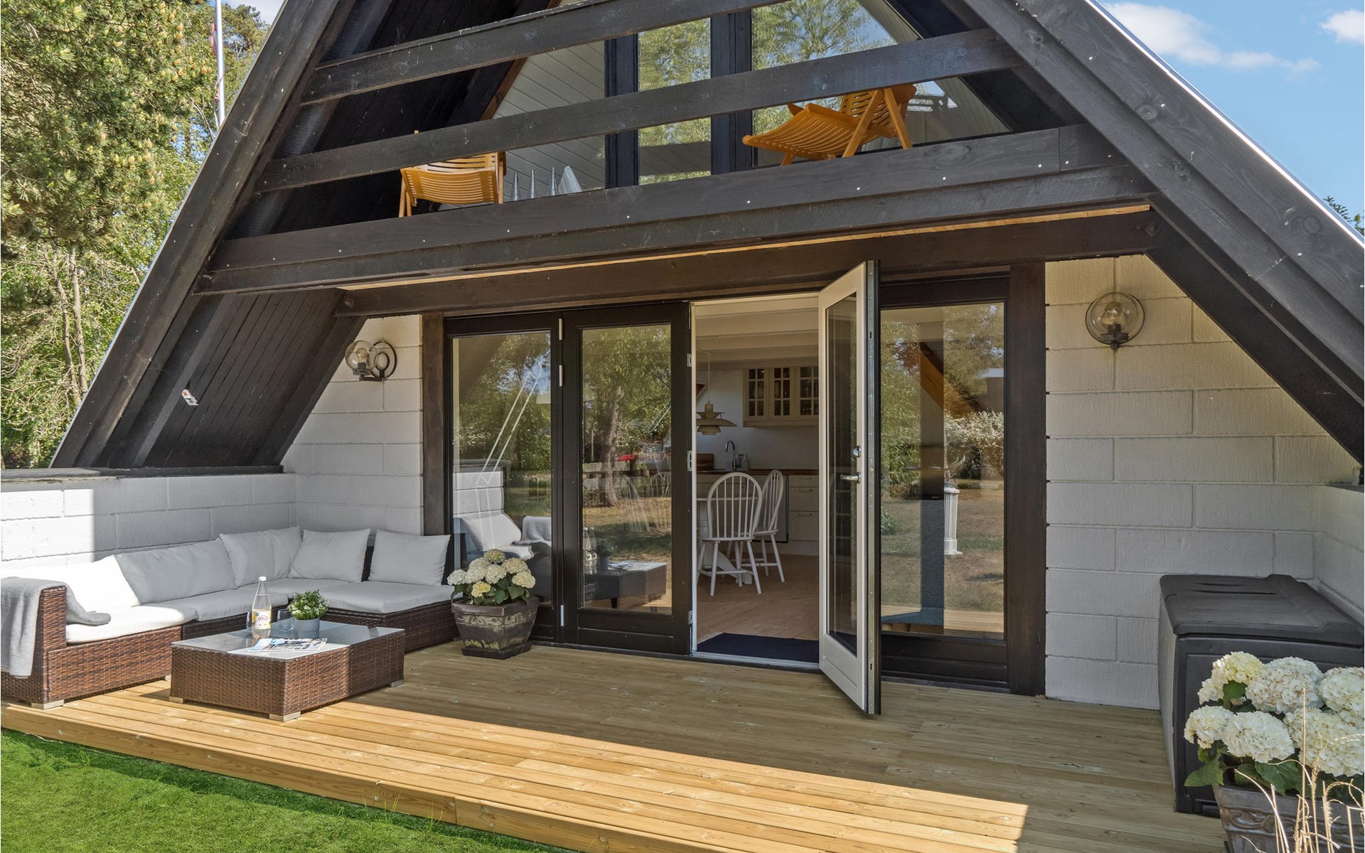 Look forward to this brightly designed wooden house. Inside you can feel the homey atmosphere from the moment you enter. Spend many hours in the well-equipped house, which promises a warming fireplace and entertaining game evenings on cool days. Also upstairs you can gather for socializing or book reading and step out onto the balcony. The beautiful terrace on the first floor will tempt you to sit in the sun with a glass of wine and make plans for the upcoming vacations.