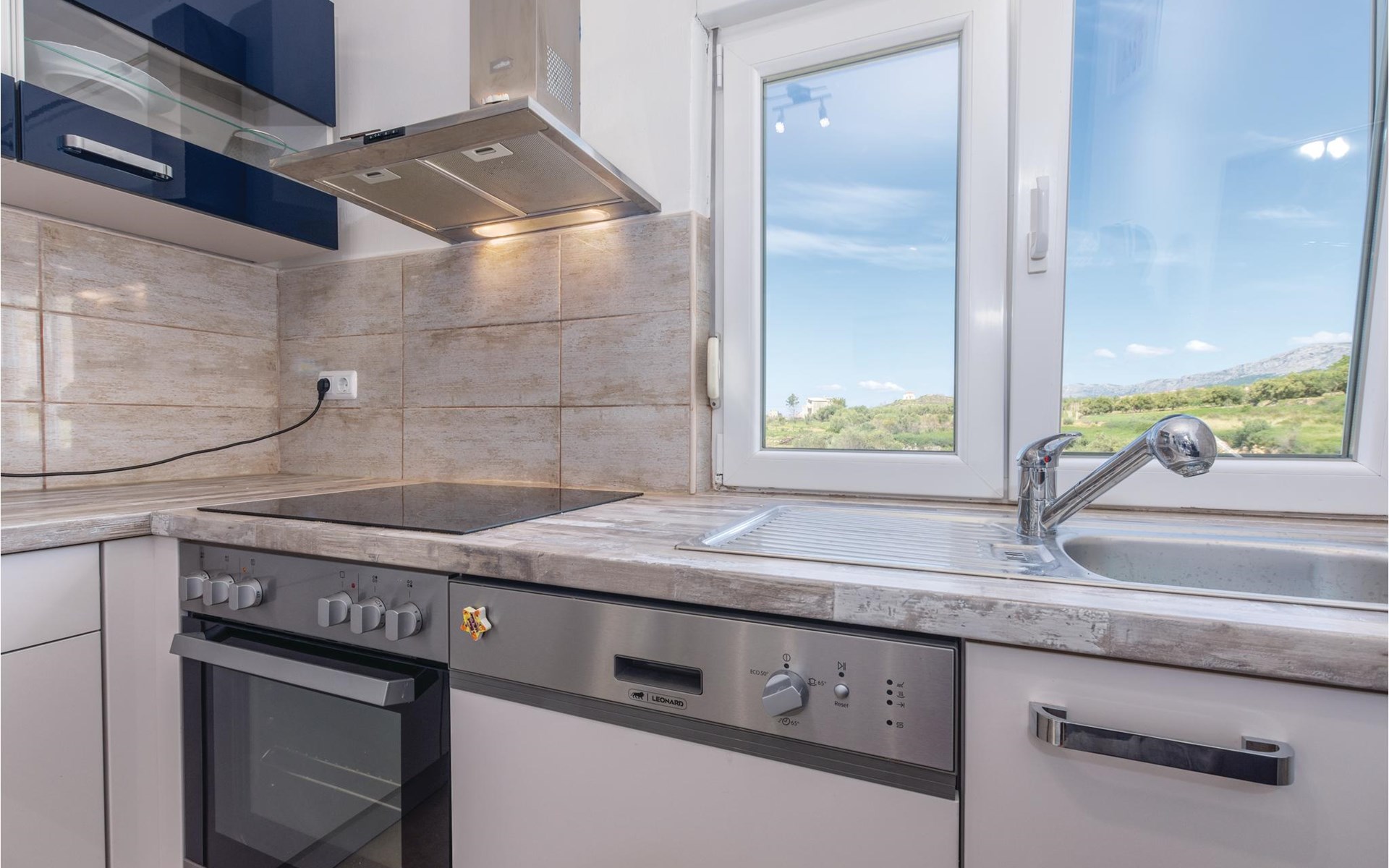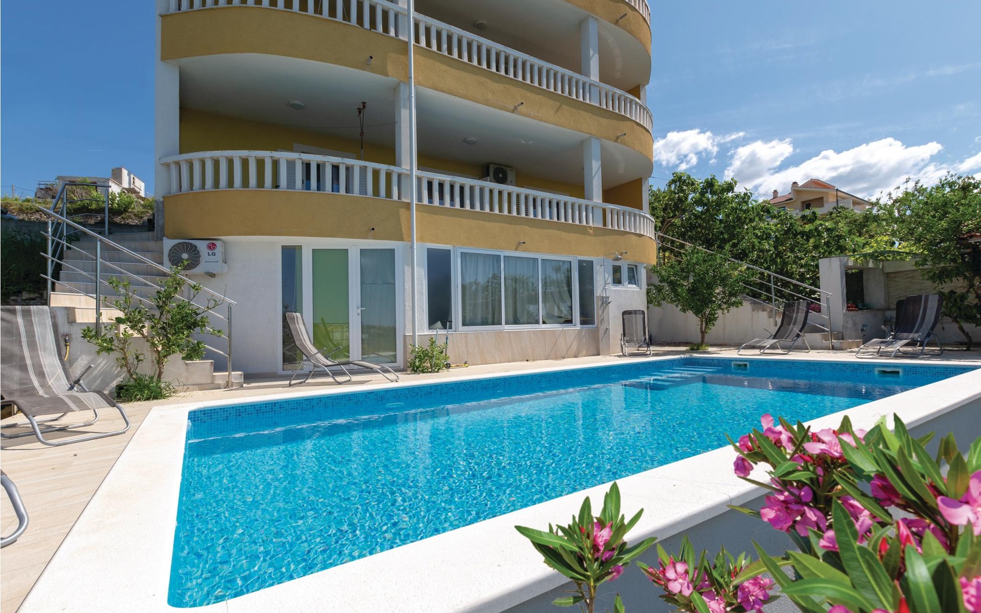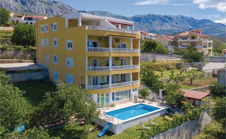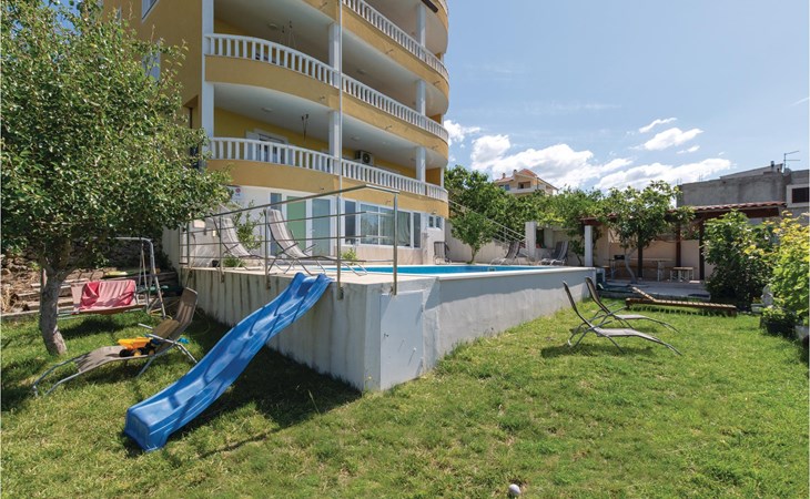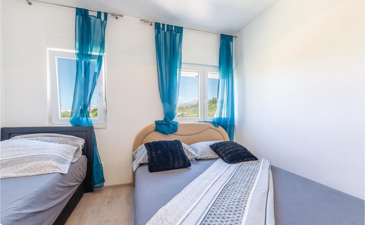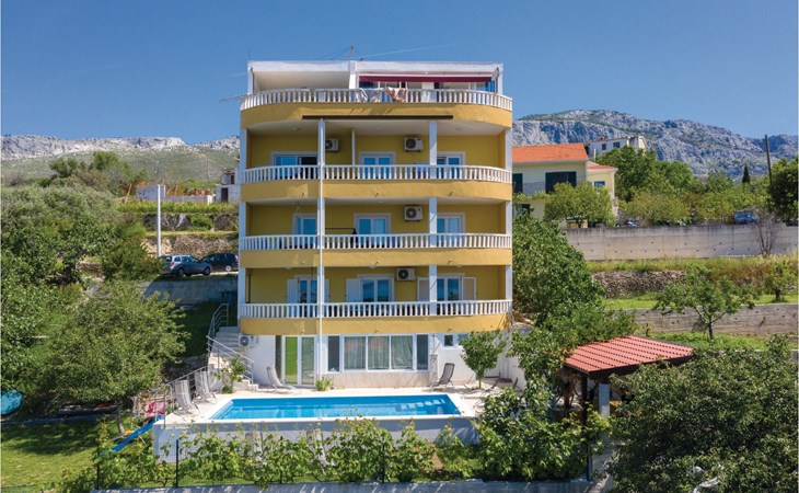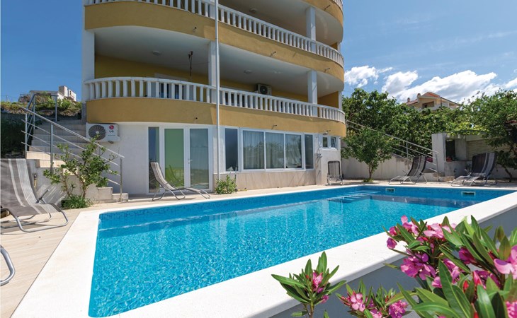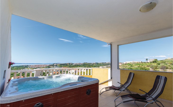 Functionally and comfortably furnished apartments CDE338 and 339 are located in Zrnovnica, near Split. Here you will live on the 2nd floor. The apartments have a beautiful view of the sea and the countryside and can be well combined for families or couples. Have a great vacation and swim in the shared pool in front of the house or relax in the shared jacuzzi. The historic old town of Split, which is under UNESCO protection, delights with numerous monuments. In the city you will find the facilities and entertainment for all ages.