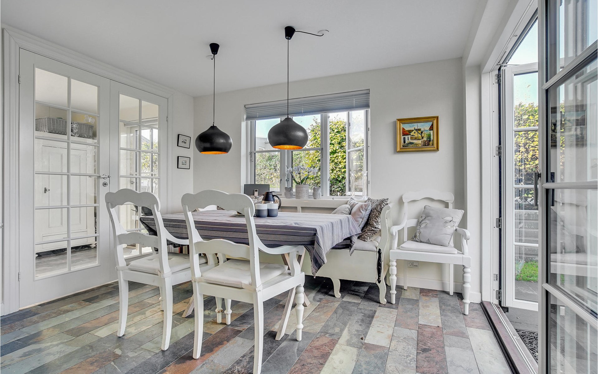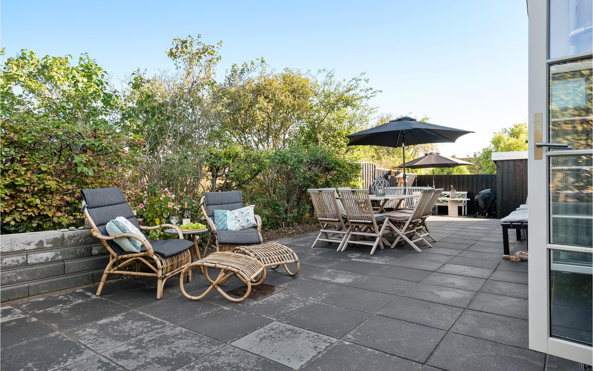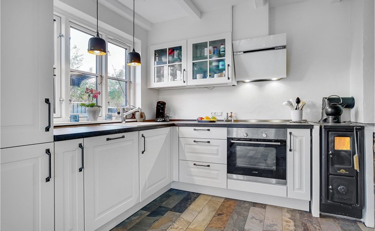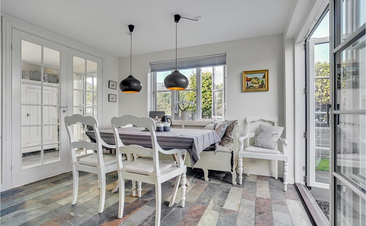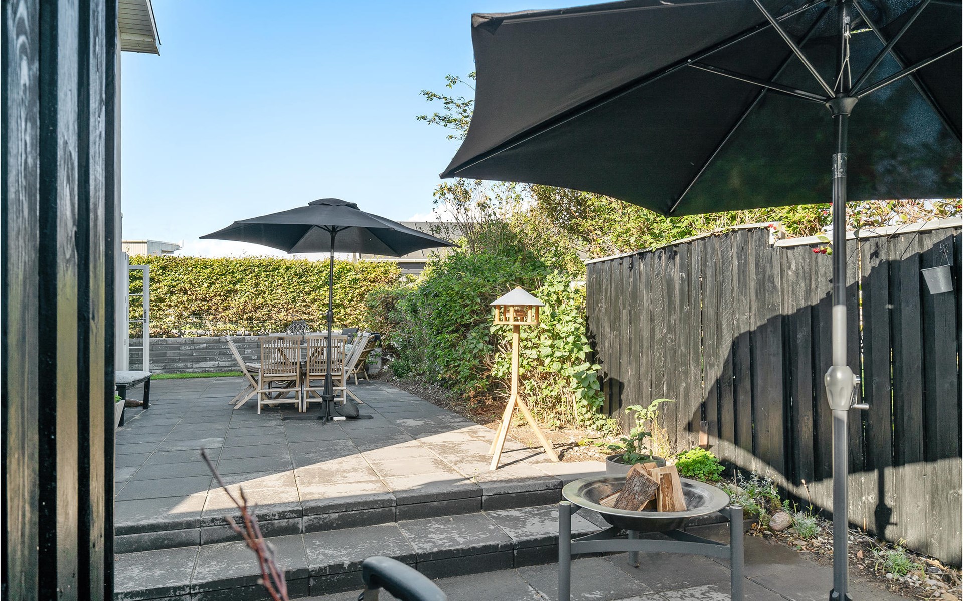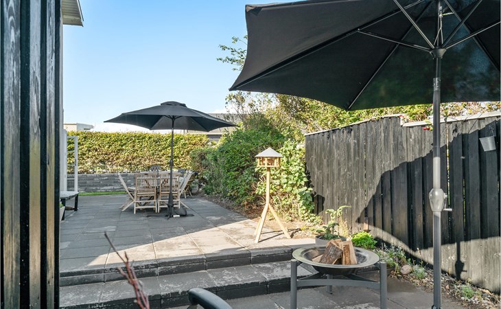 Inviting vacation apartment in the second row, only 50 m from the beautiful bathing beach. The house is in two floors, with unique view of the water from the large roof terrace. On the first floor is a hallway, 2 bedrooms, bathroom with shower and a charming French-inspired kitchen with fireplace. From here you can reach the lovely terrace with good possibilities to enjoy the sunny days and relax or barbecue after a day at the beach. On the second floor is a living room with fireplace and a sofa that can also function as a bed. In addition, a beautiful dining room overlooking the water and access to a beautiful open balcony / terrace with glass enclosure where you can enjoy the unique view over Kongsmark beach and water while the sun sets.