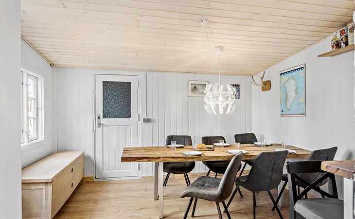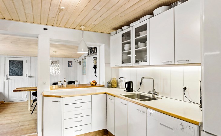 Enjoy a relaxing holiday in this cosy holiday home in Nexø, just a short walk from the sea. The bright and inviting interior creates a pleasant atmosphere, while the open-plan living and dining area with wood-burning stove is perfect for your social evenings. You can prepare your favourite dishes together in the well-equipped kitchen before ending the day on the beautiful wooden terrace with a view of the garden. Your children can let off steam in the spacious outdoor area while you enjoy the fresh sea air.