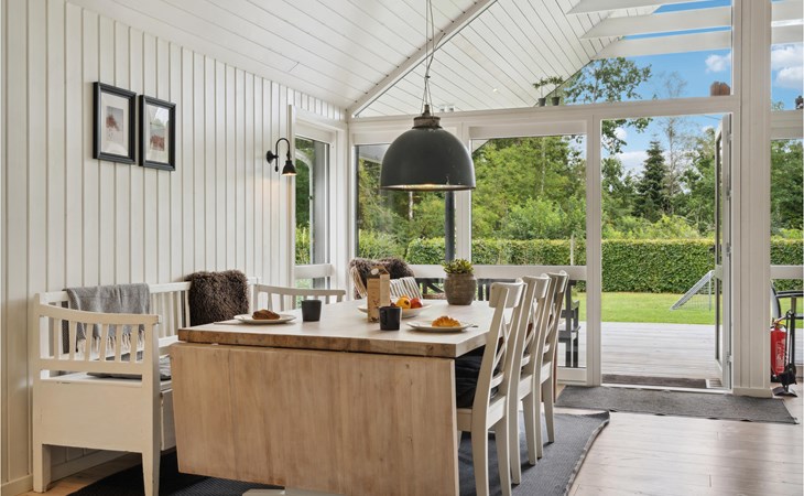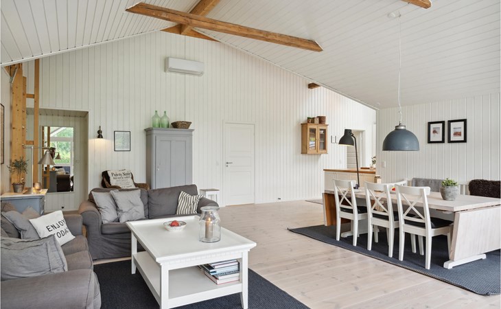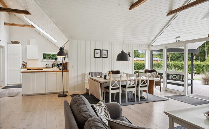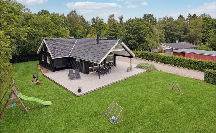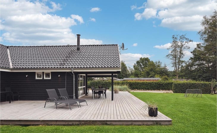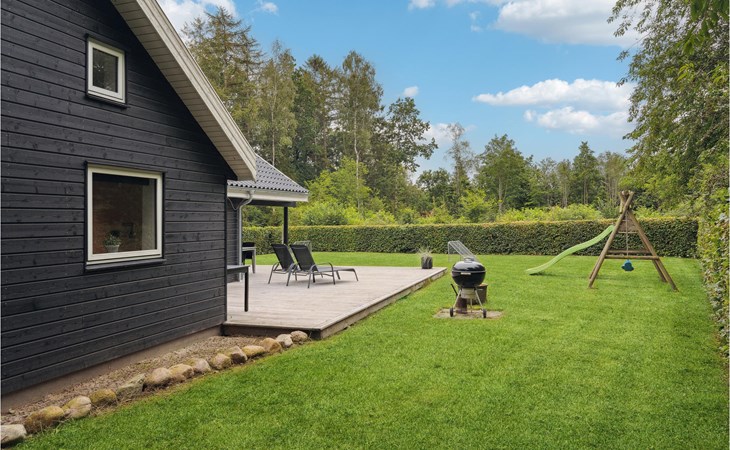 Spend a wonderful vacation in this appealing and light-flooded vacation home with inviting furnishings and bright decor. Look forward to relaxing vacation days and use the large and high living room, which also connects the dining area and the kitchen, as a central family meeting place. No matter what the weather, you can gather here to play games, watch movies or whip up delicious meals. In the evenings, you can enjoy the crackling of the fireplace while watching an entertaining movie, with your gaze also wandering into the garden. While you can enjoy your wellness program in the bathroom, in the whirlpool bath, you can also continue it with sunbathing on the terrace. Let your soul dangle, while your children take the garden as a play area and fill it with laughter. You can end the evenings with a barbecue and socializing.