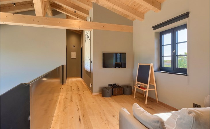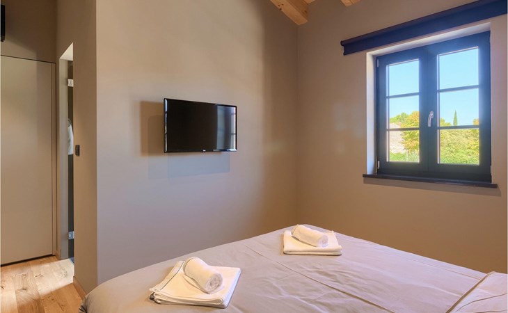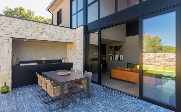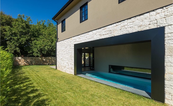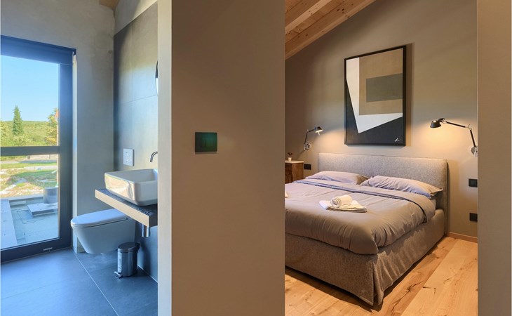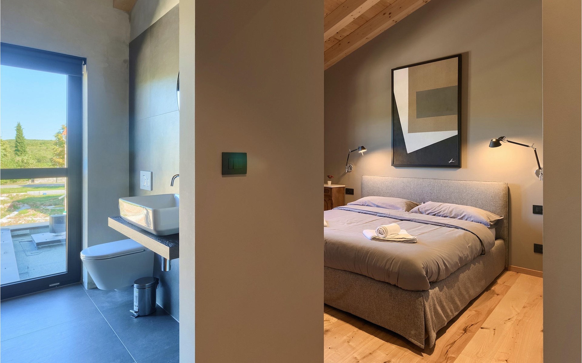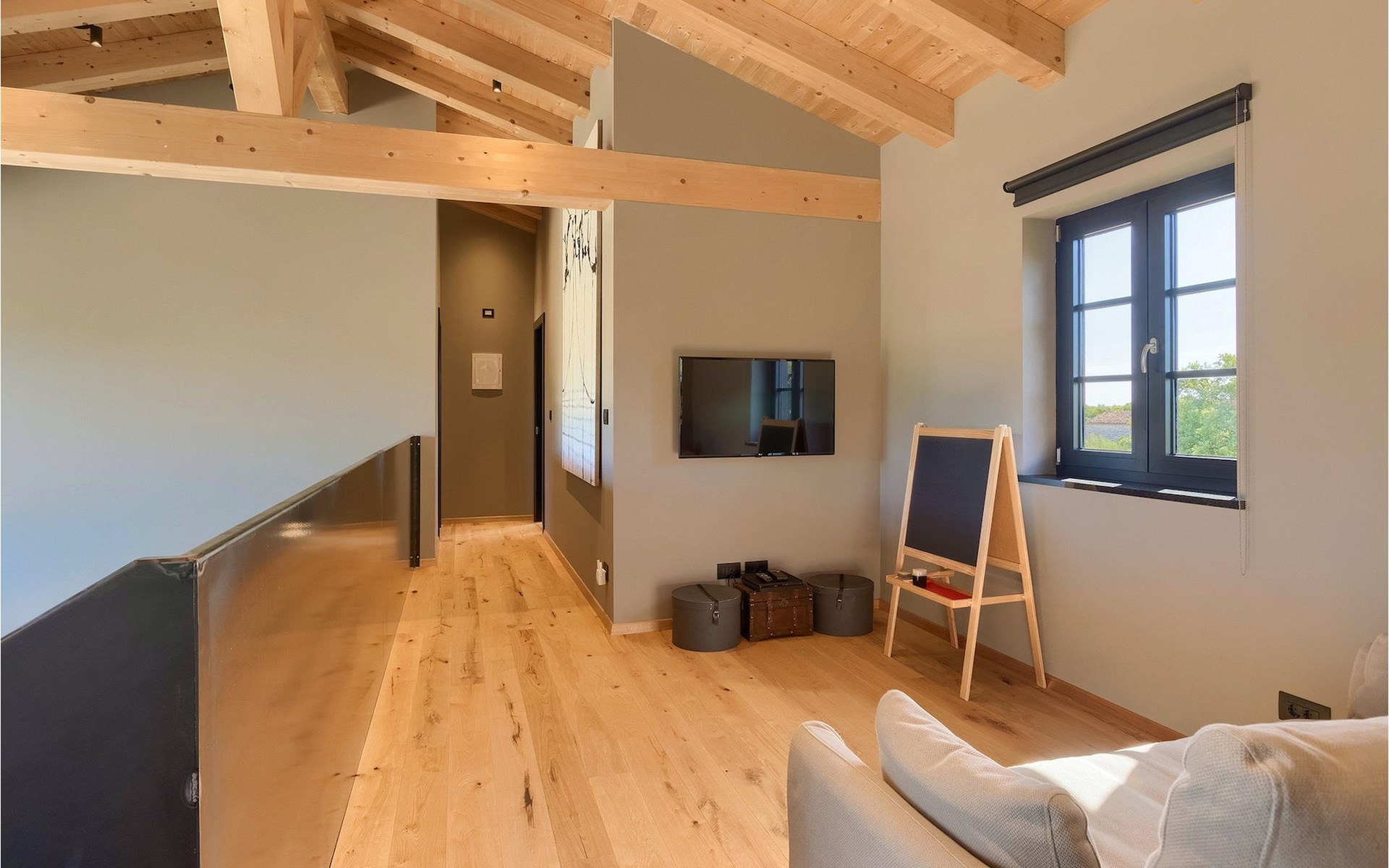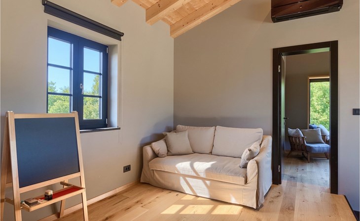 This fascinating and unusual designer villa with a covered private pool is located in the picturesque village of Bale in Istria. Well-equipped and furnished with great attention to detail, Villa Giuseppe will certainly not disappoint. It consists of 3 stylish bedrooms and modern bathrooms, making this villa perfect for 6 people. All bedrooms are located on the upper floor and offer the highest level of comfort for guests, as each bedroom has a TV, air conditioning and an en-suite bathroom with shower. A cozy lounge with a large sofa is also located on the upper floor and has a TV with games console.