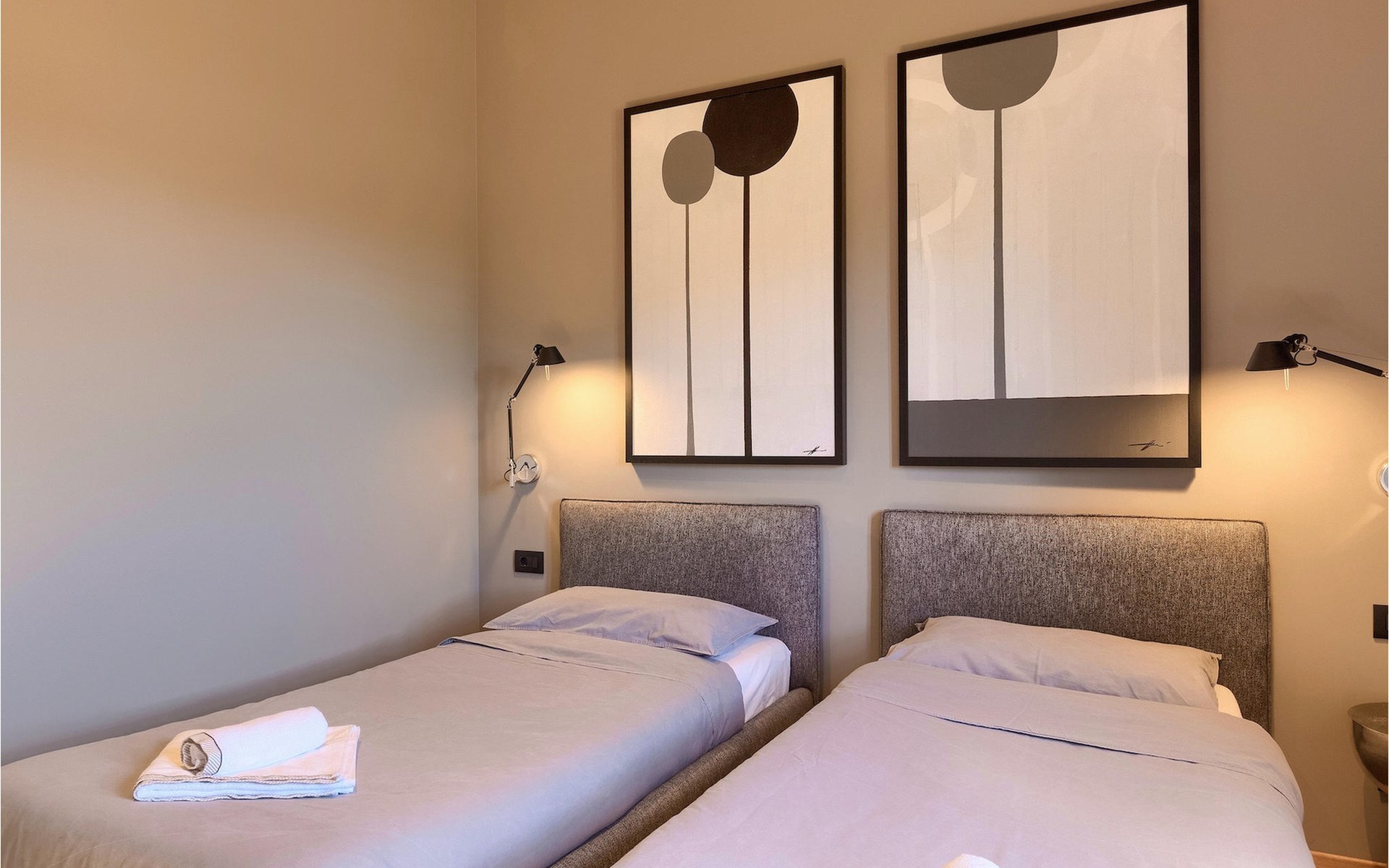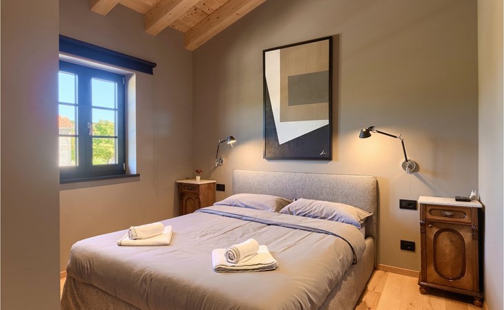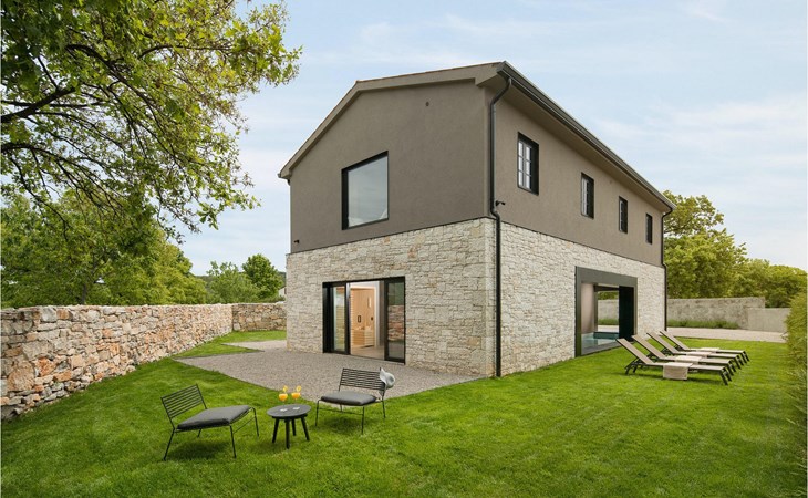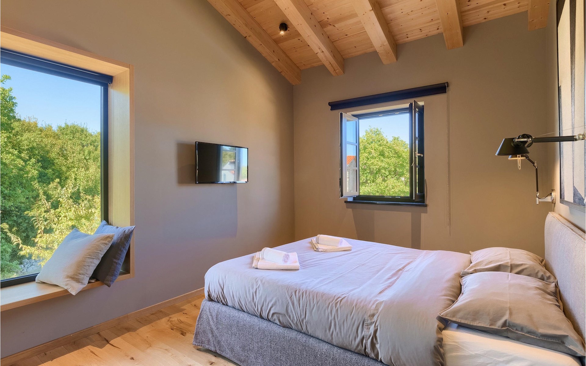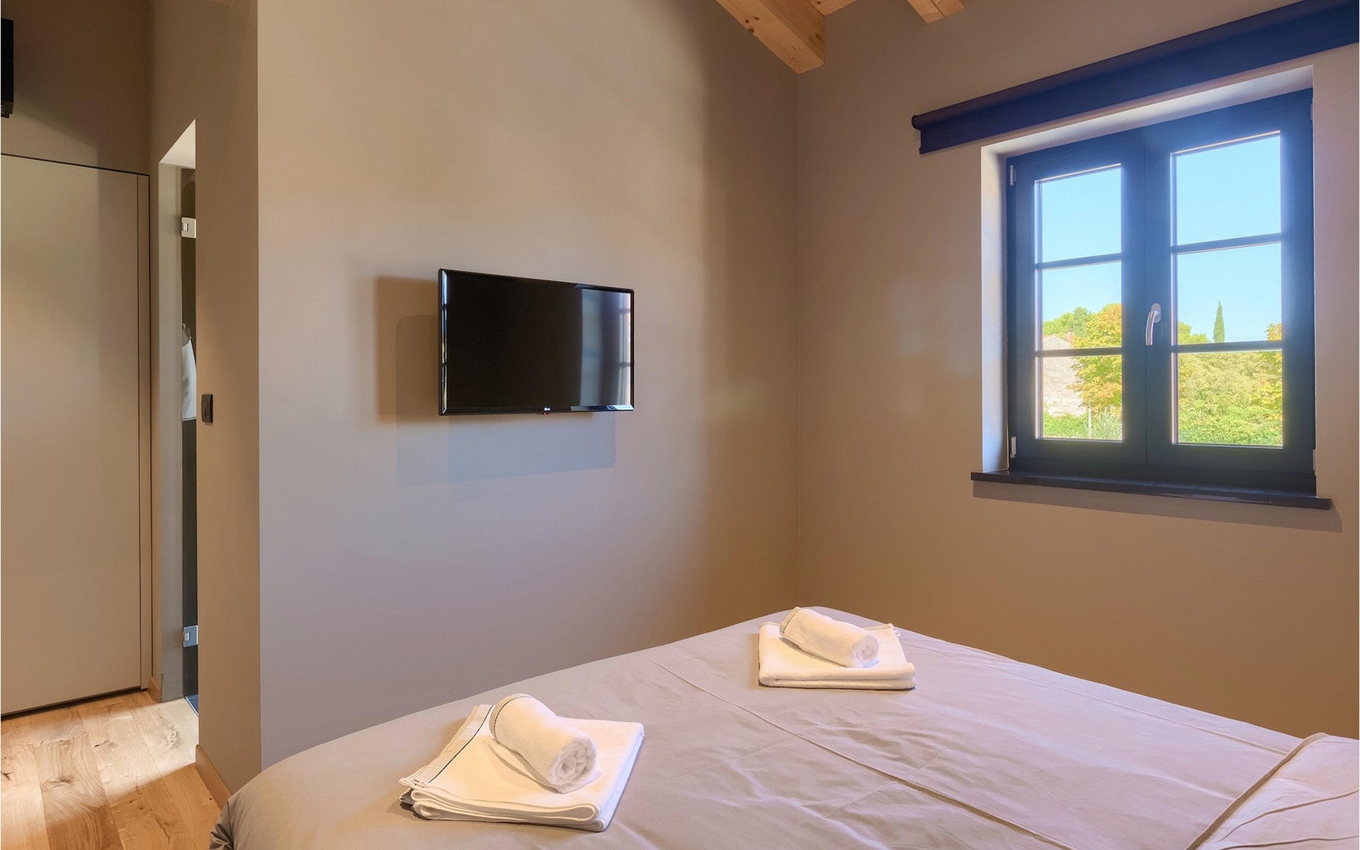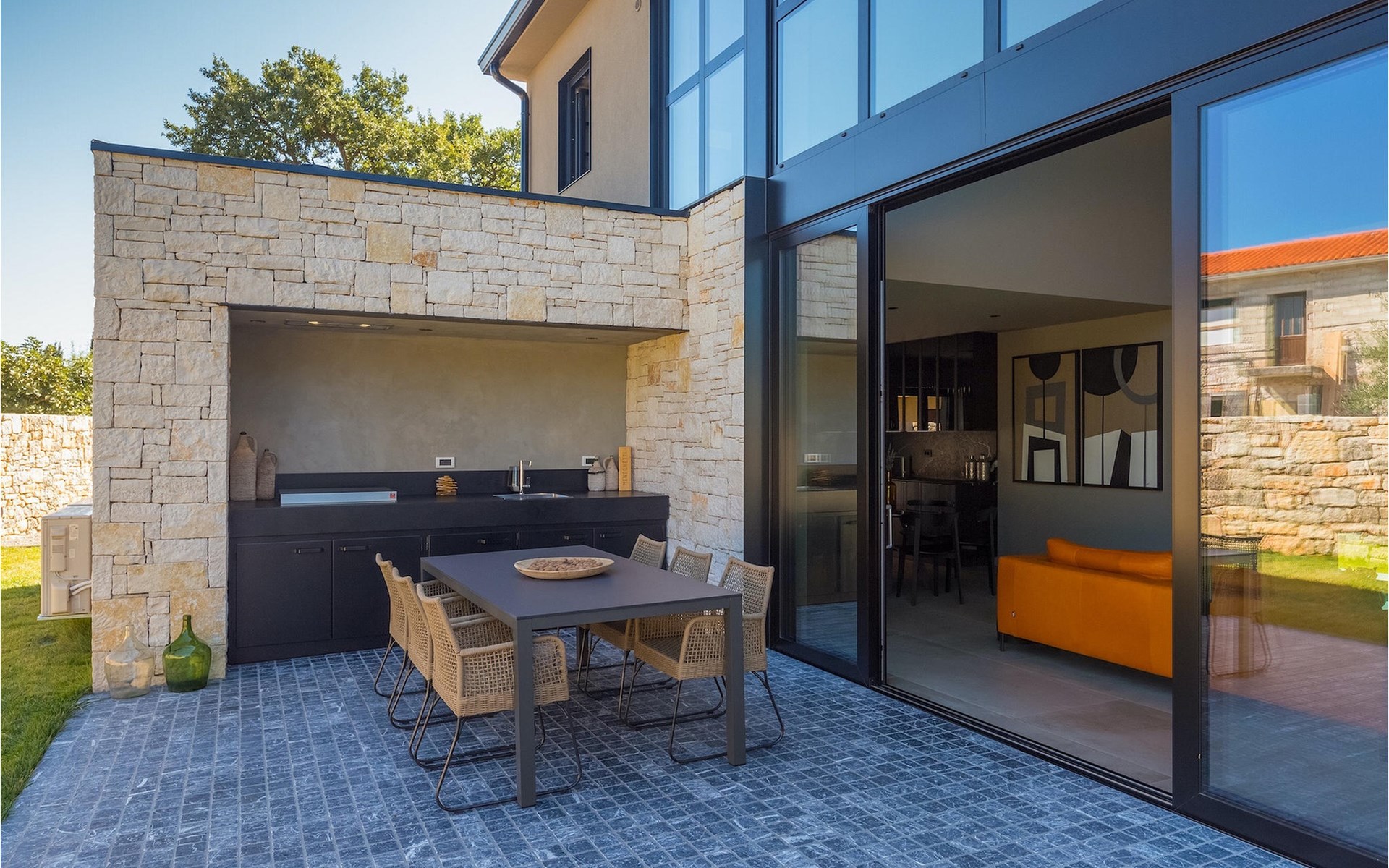 This fascinating and unusual designer villa with a covered private pool is located in the picturesque village of Bale in Istria. Well-equipped and furnished with great attention to detail, Villa Giuseppe will certainly not disappoint. It consists of 3 stylish bedrooms and modern bathrooms, making this villa perfect for 6 people. All bedrooms are located on the upper floor and offer the highest level of comfort for guests, as each bedroom has a TV, air conditioning and an en-suite bathroom with shower. A cozy lounge with a large sofa is also located on the upper floor and has a TV with games console.