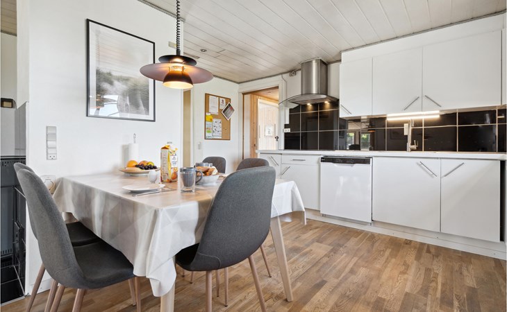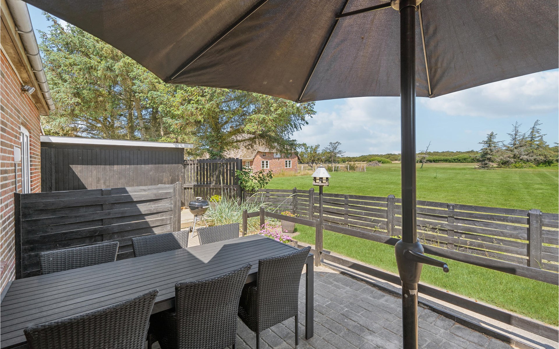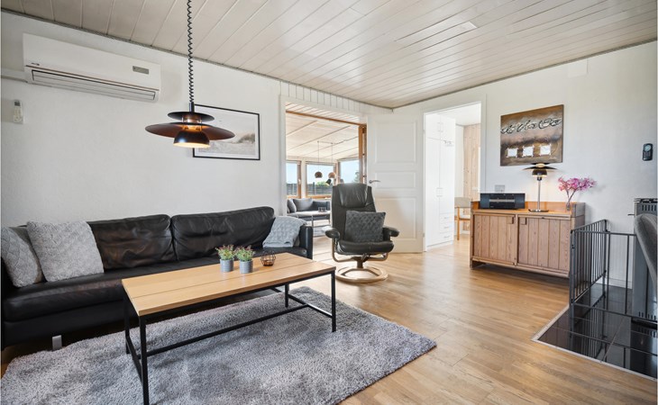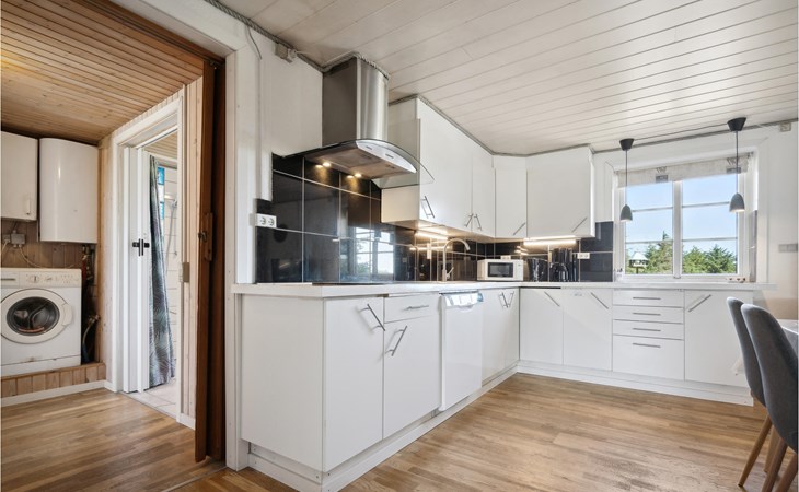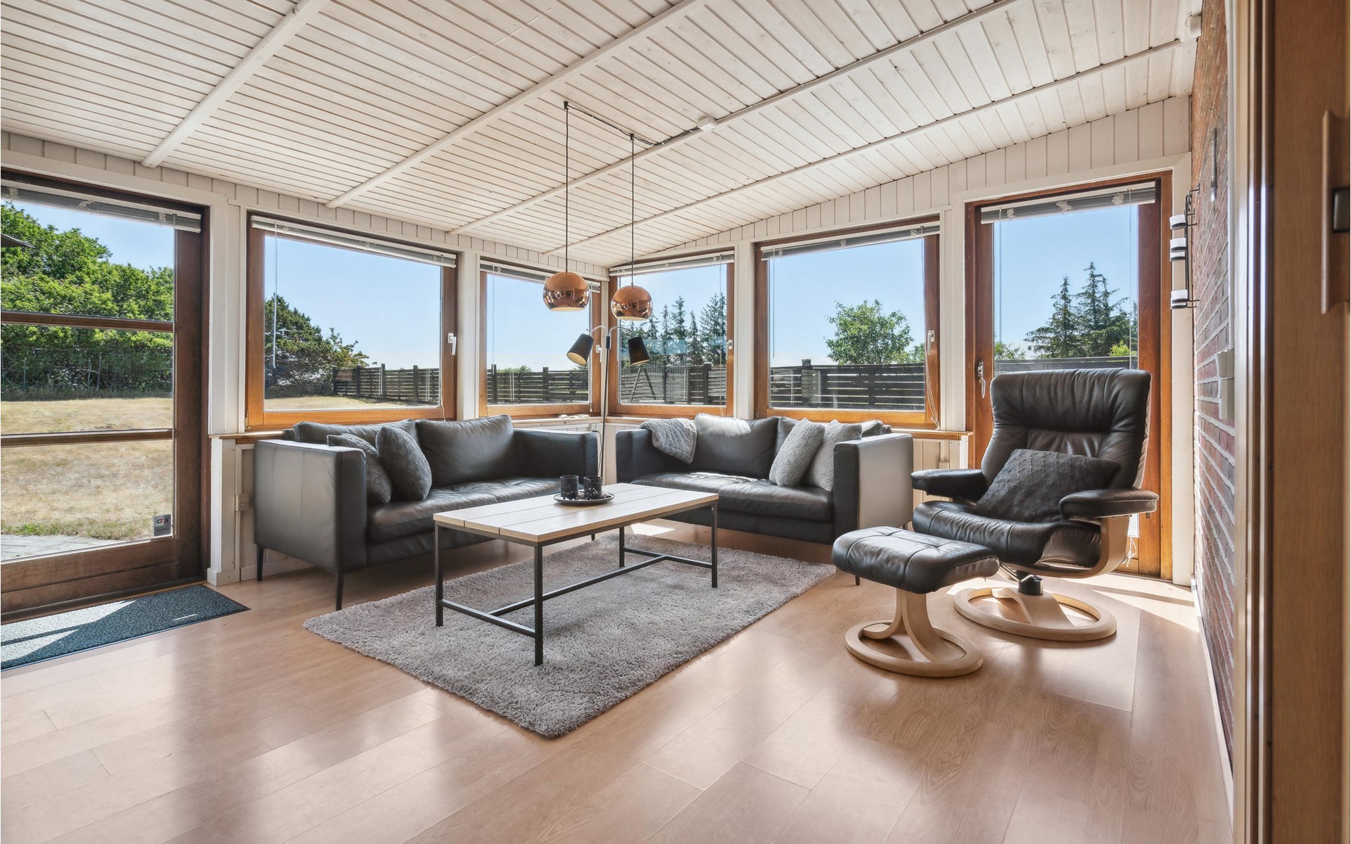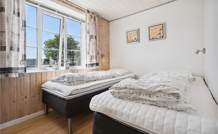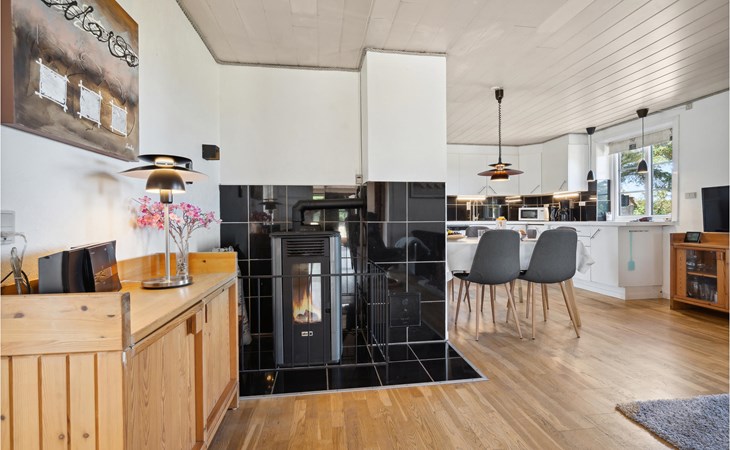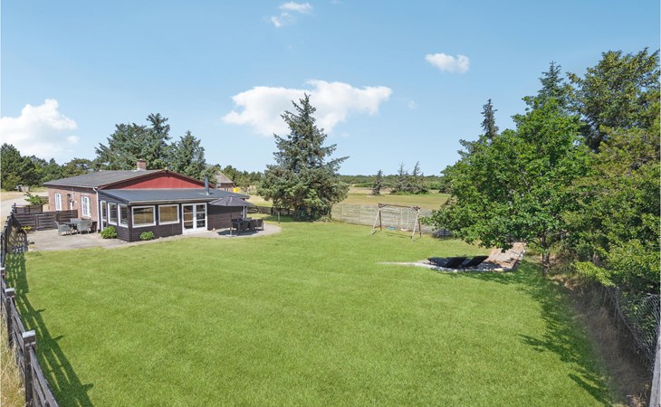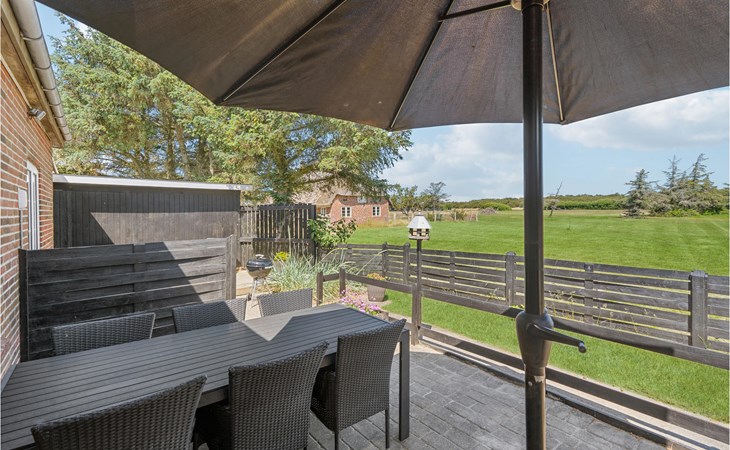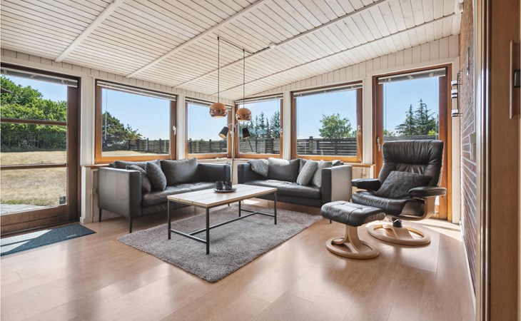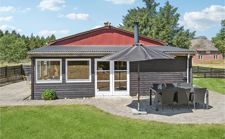 Welcome to this holiday home, where you can enjoy a magnificent view of the surrounding countryside, which is optimally accentuated by numerous windows. Make yourself comfortable in the bright, wood-panelled rooms with your loved ones, the holiday home is the ideal base for a holiday in which exploring the island is not neglected. After your excursions, you can cook together and relax in the seating area, and it's especially cosy when you light up the wood-burning stove and listen to the crackling flames.
