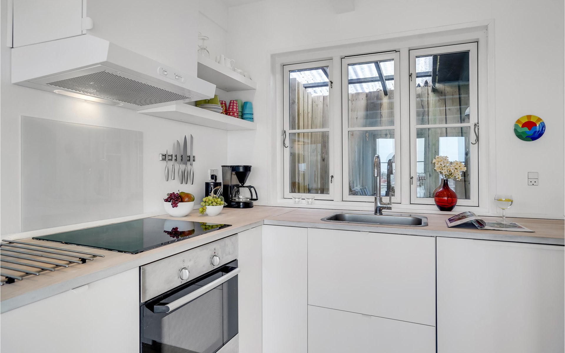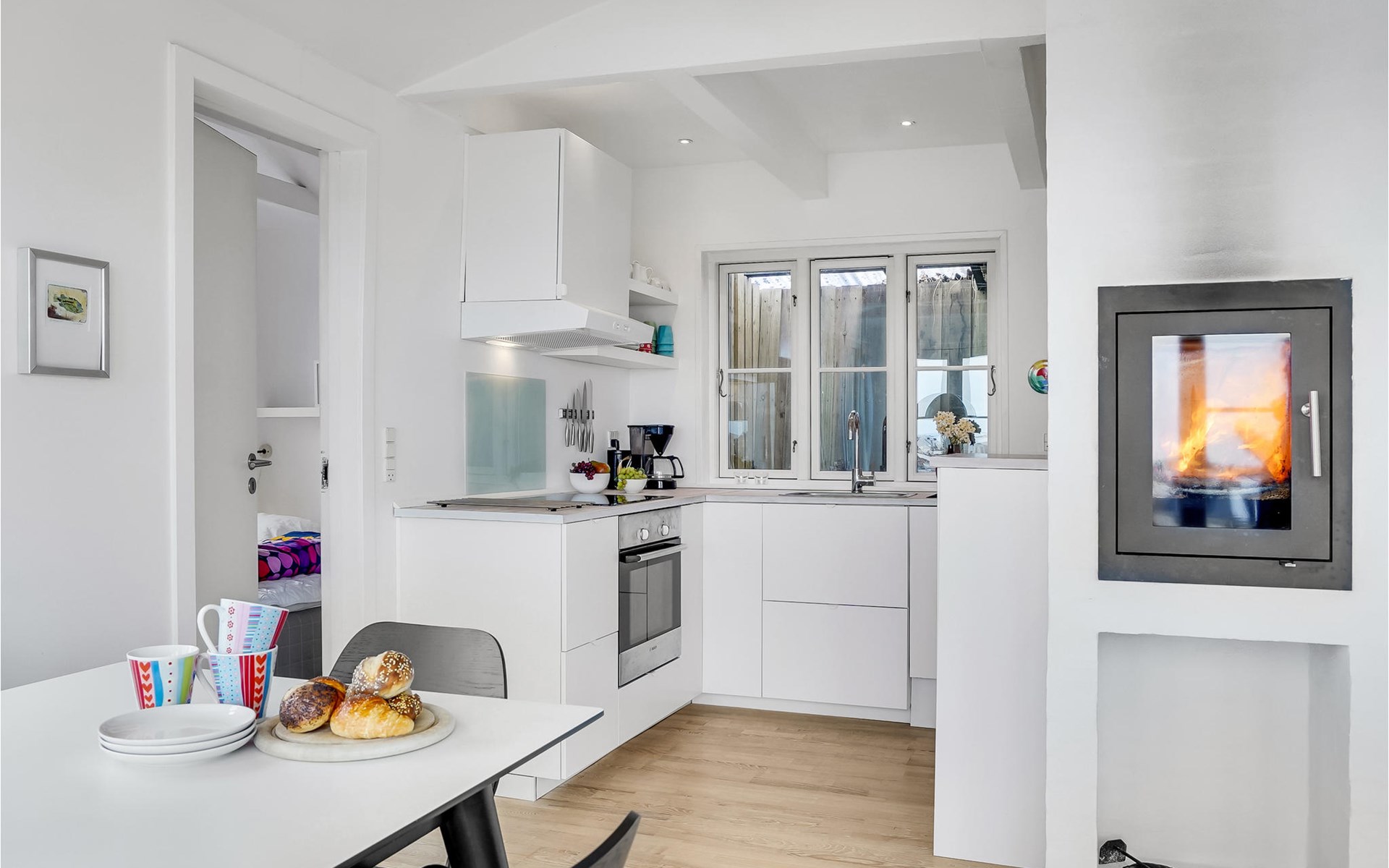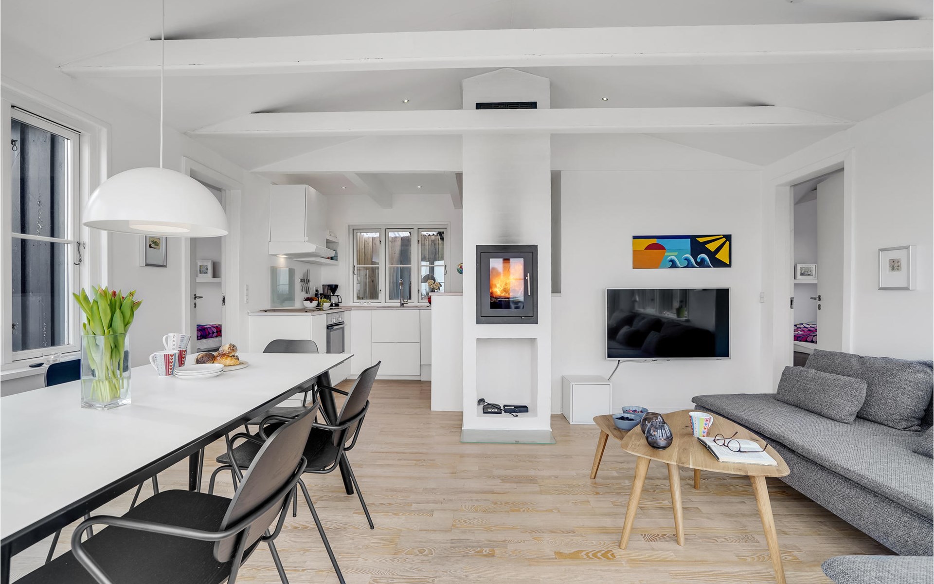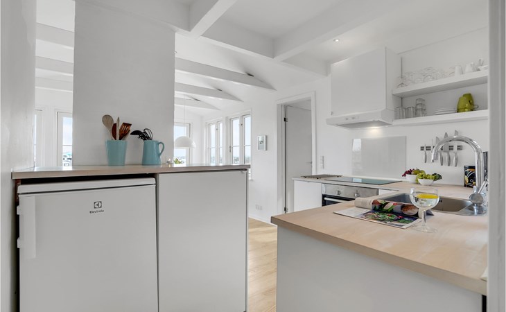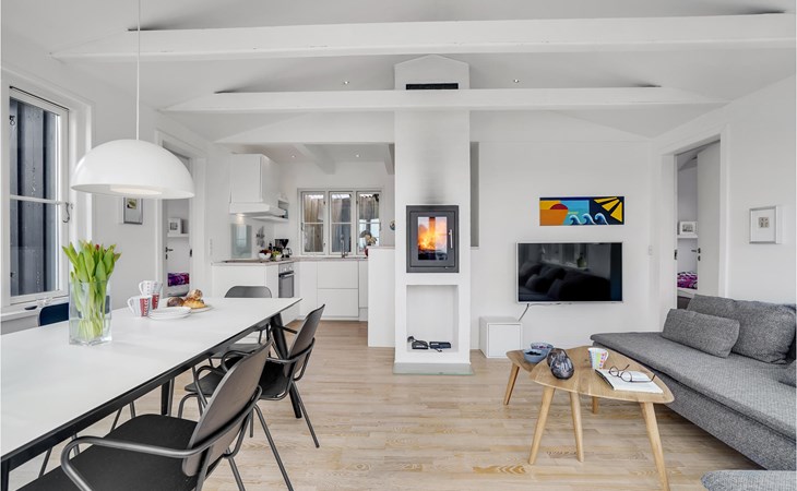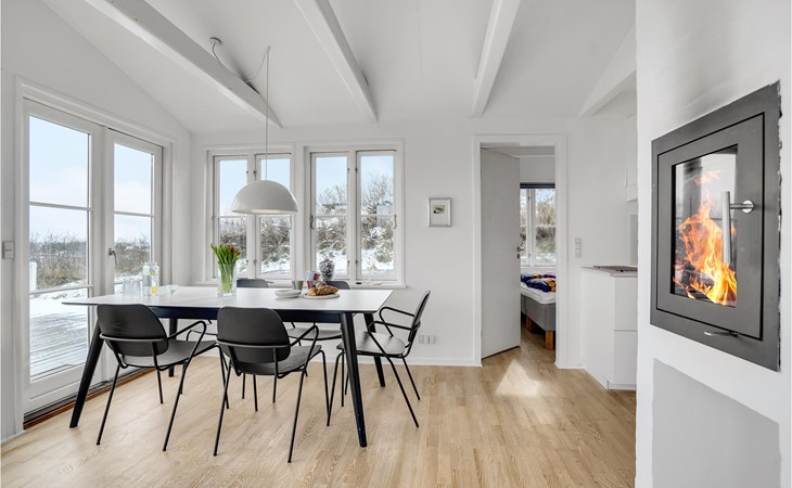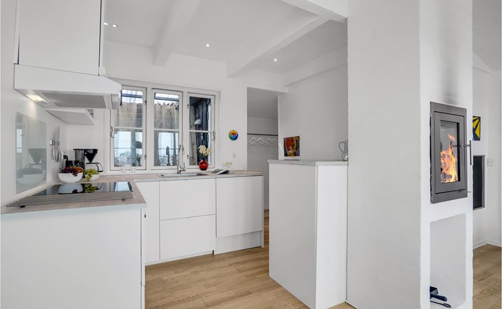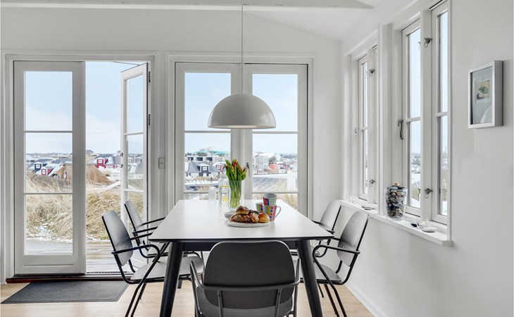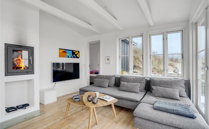 The house is bright and inviting and offers space for the whole family. The heart of the house is the cozy kitchen with open fireplace and a fantastic view over the dunes and Søndervig. Enjoy cooking, playing or just relaxing with a good book and a crackling fire in the fireplace. In the morning, you can walk right out onto the beautiful terrace and enjoy your morning coffee while you plan the day's activities and excursions. From the terrace and the property you can also admire the beautiful panoramic view of Søndervig. Let your gaze wander and feel the tranquility.
