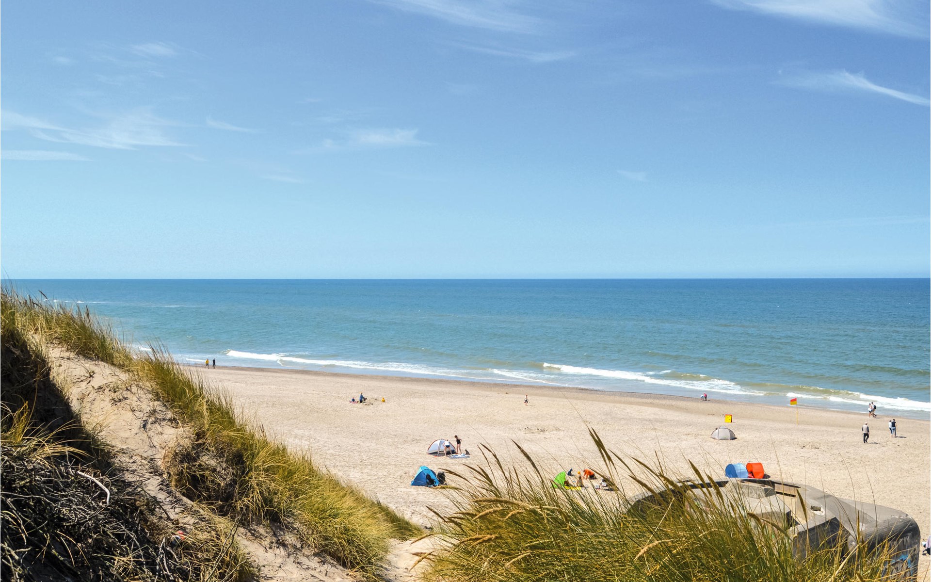 Explore the dunes or the wide sandy beach and find beautiful stones and shells while enjoying the fresh air of the Versterhavet. In summer Søndervig is very lively, while in winter it is rather quiet. If the weather does not cooperate, go to Lalandia, where you can spend many entertaining hours swimming, bowling, padel tennis and much more. In Søndervig there is also a bicycle rental, many specialty stores, a large grocery store and restaurants. In the surrounding area there are many kilometers of well-maintained cycling and hiking trails, good surfing on Ringkøbing Fjord, several fishing lakes, a large golf course, varied nature with a rich animal and bird life and last but not least the North Sea, which is always worth an experience regardless of the season.