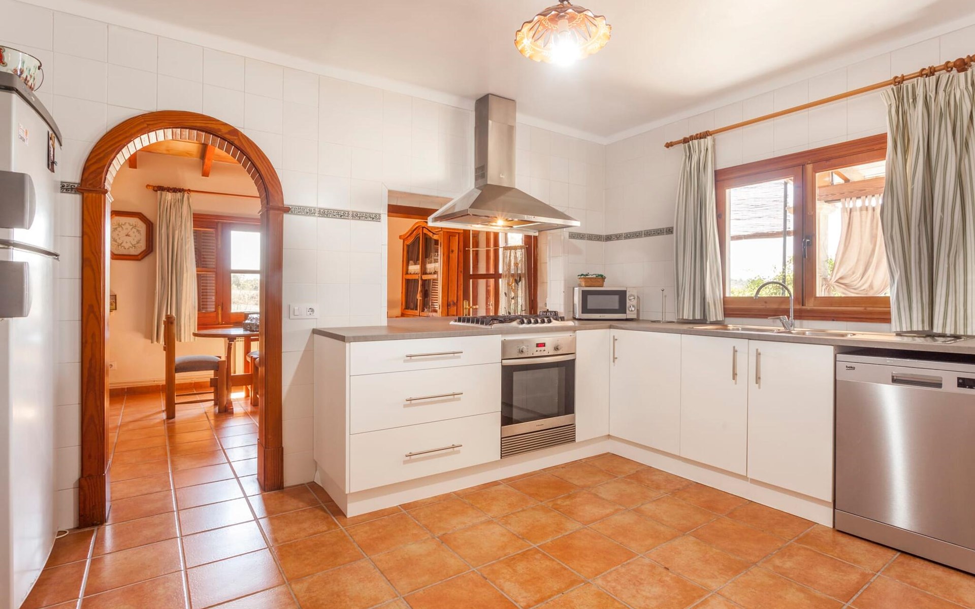 This part of the island is characterised by olive and almond trees. You can go on wonderful excursions into nature on foot or by bike. In Ariany, just one and a half kilometres away, an unspoilt village idyll awaits you. Here you will also find a supermarket, a bank and a pharmacy, so you don't have to do without the convenience of an urban infrastructure. The historic town of Sineu is approx. 10 km away via a country road, which can be heard from the property depending on the wind direction. Winding alleyways invite you to take a stroll through the impressive manor houses and then soak up the impressions over a coffee in the Plaza des Fossar. In Can Picafort, 16 kilometres away, you can plunge into the surf and enjoy a relaxing day on the beach.