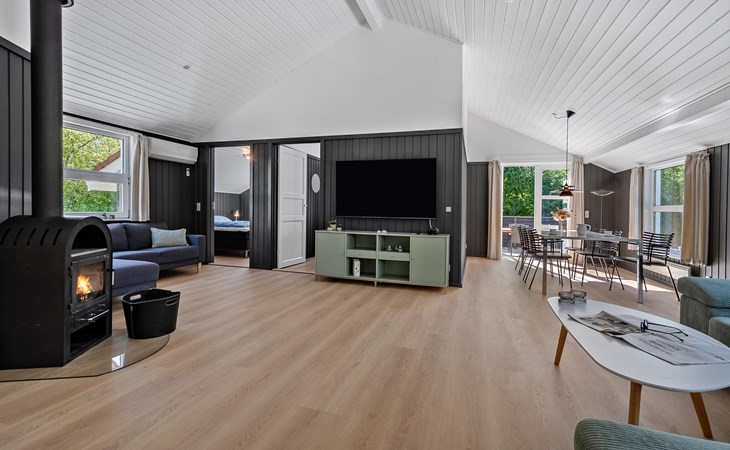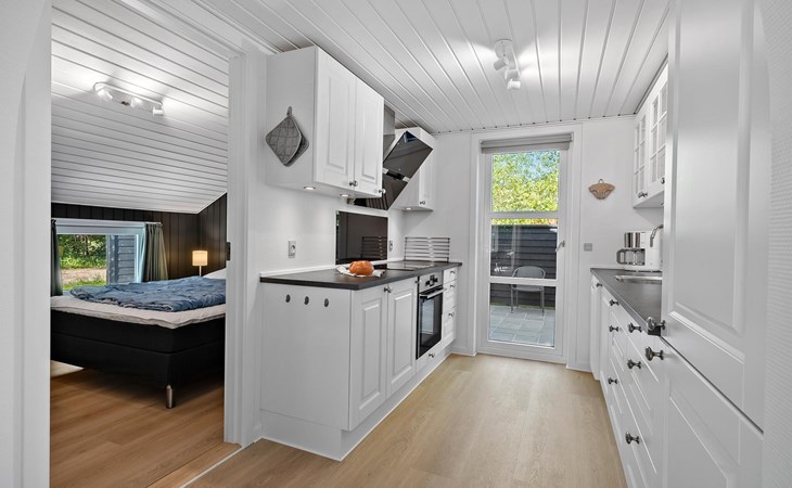 Comfortable and tastefully furnished cottage on a lovely enclosed plot in Bork Havn. Nice eat-in kitchen. Ringkøbing Fjord is within walking distance. The house is located in an older but good vacation home development. In the house there is a functional kitchen connected to the living room with fireplace. The bathroom offers access to a sauna. There is an open and a covered terrace. Buy fresh fish at the harbor in Bork, eat an ice cream and visit the Viking harbor with attractions for the whole family. The beach offers ideal conditions for windsurfing and kitesurfing.