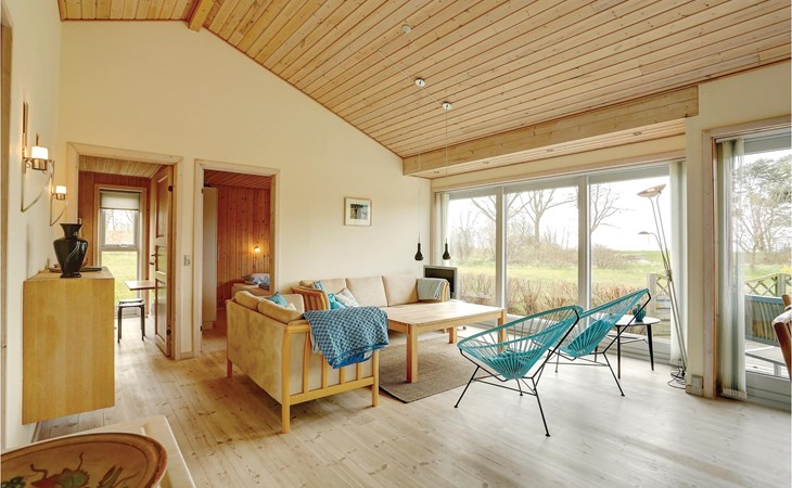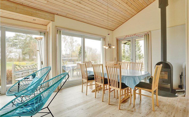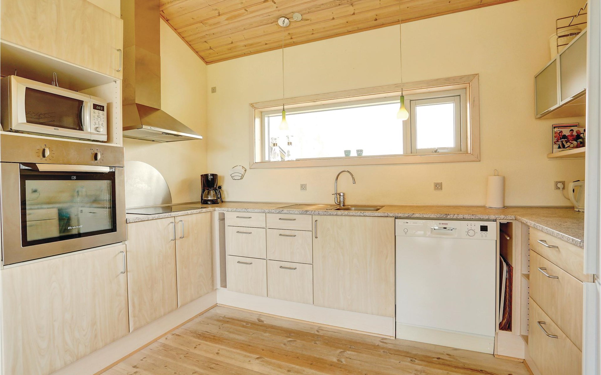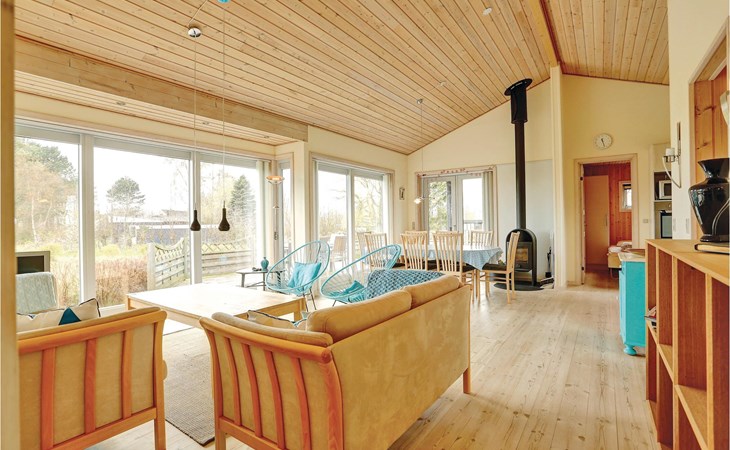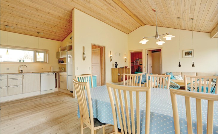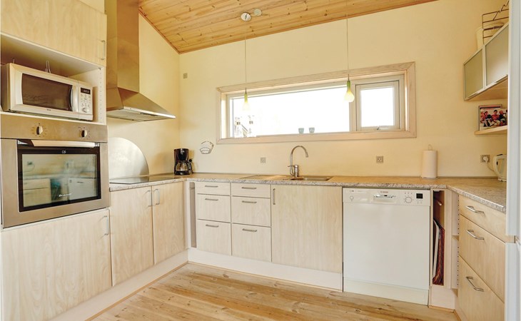Very nicely furnished vacation home with sea view and a large wooden terrace. It is located in the first row to the bathing beach in an attractive cottage area and close to a cozy little fishing village and a smokehouse. The house, made of first-class materials, is furnished with an open kitchen and a cozy dining and living room with open beams and a wood-burning stove. Through the large window sections in the living room you have a view of the Baltic Sea. The house is partially handicapped accessible with its wide entrance parts to two of the three bedrooms as well as the bathroom with underfloor heating. A magnificent vacation home with high comfort and an attractive location.