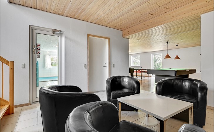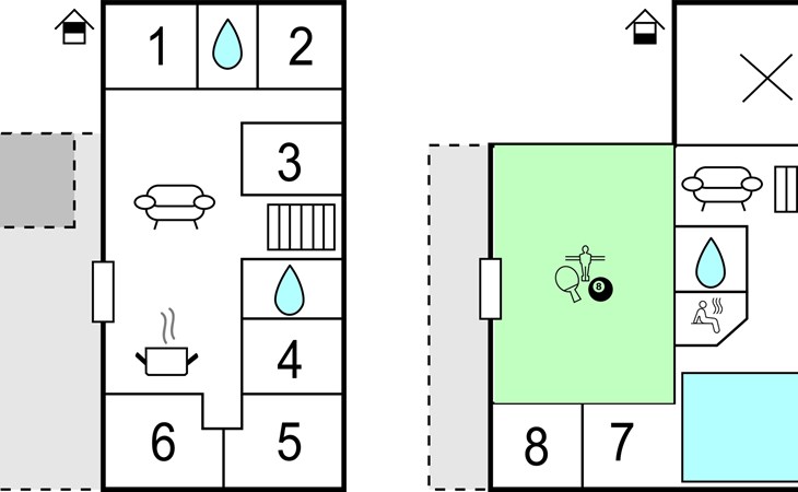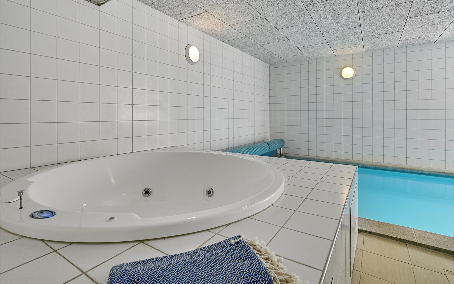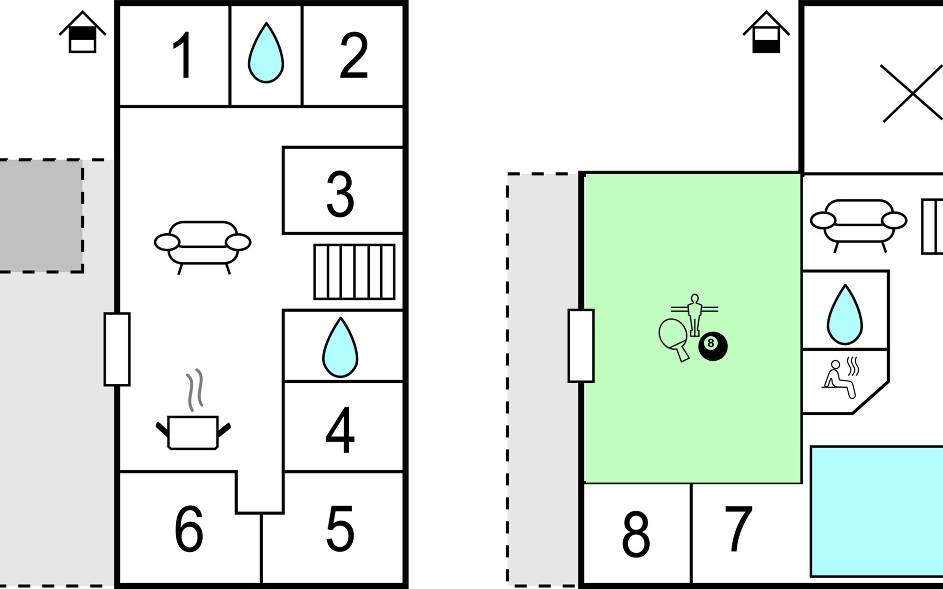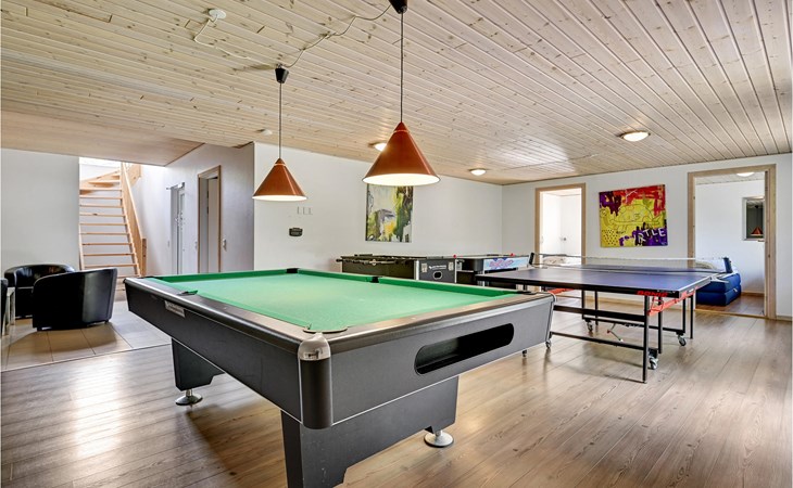 The house has two floors, downstairs exclusive wellness and an activity room await you. In the wellness area you can swim in the pool and play on the water slide, while the elegant whirlpool tub can accommodate 4-6 people and is a nice prelude to a sauna session.