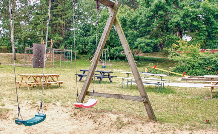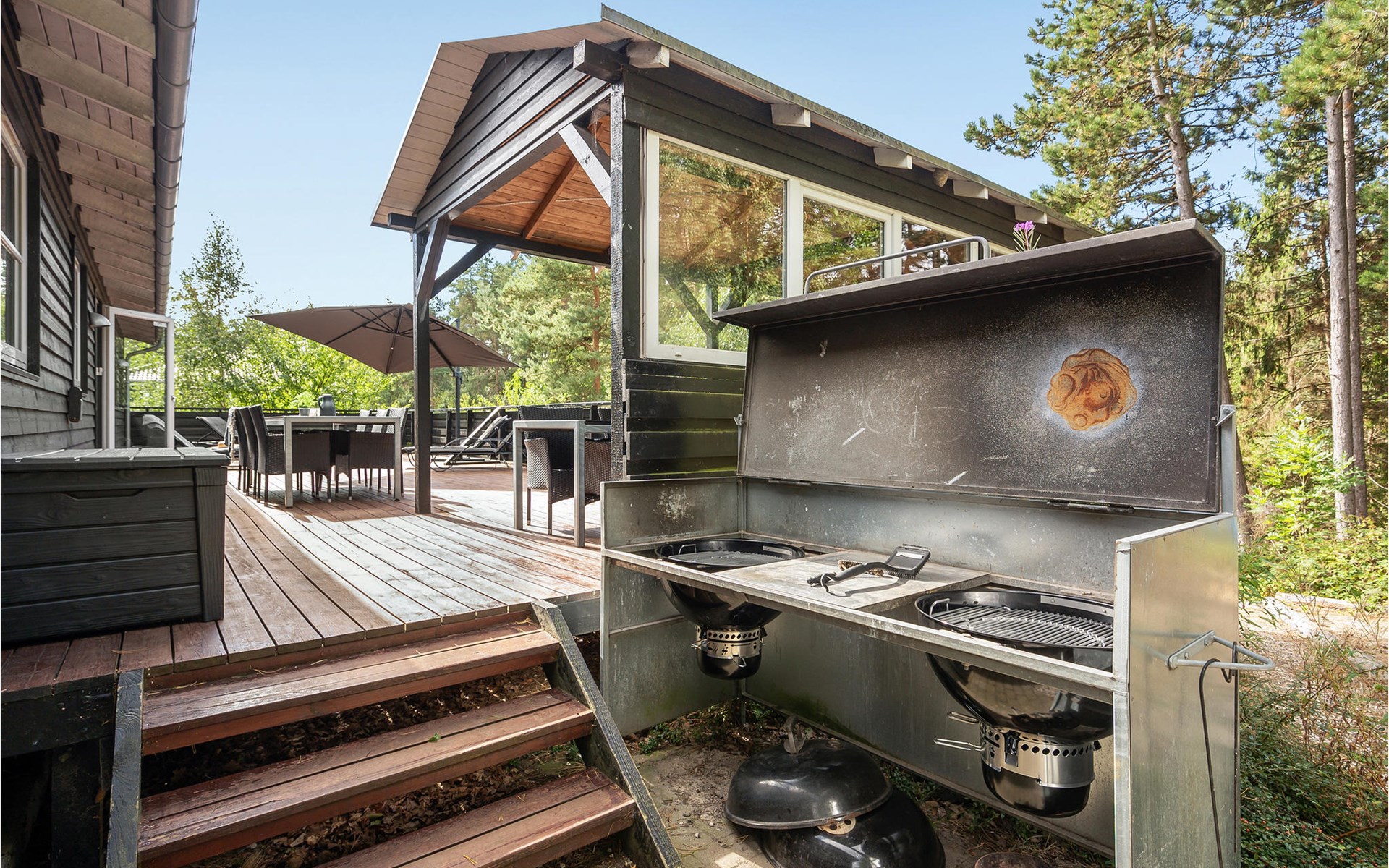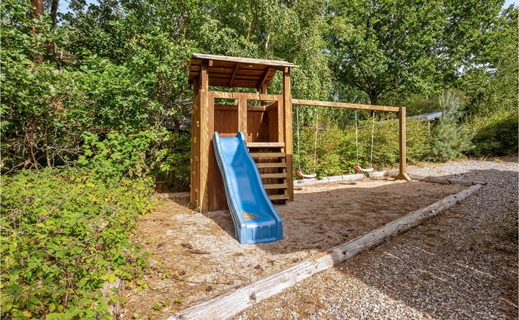 From the large living room, a door leads to the spacious terrace, which is furnished with high-quality garden furniture and offers a beautiful view of the forest and the surrounding nature. The covered area of the terrace can be heated by a patio heater. On the large natural ground is a play area for children with climbing wall and play tower, slide swing and sandbox.