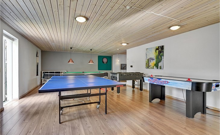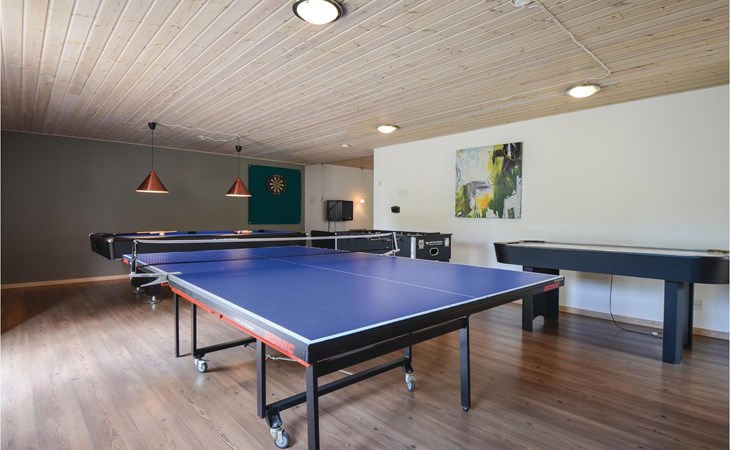The activity room is furnished with billiards, table tennis, air field hockey, darts, and foosball, In addition, a comfortable sofa group, flat-screen TV, and Wii and PlayStation4 consoles provide action-packed entertainment.