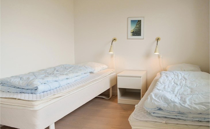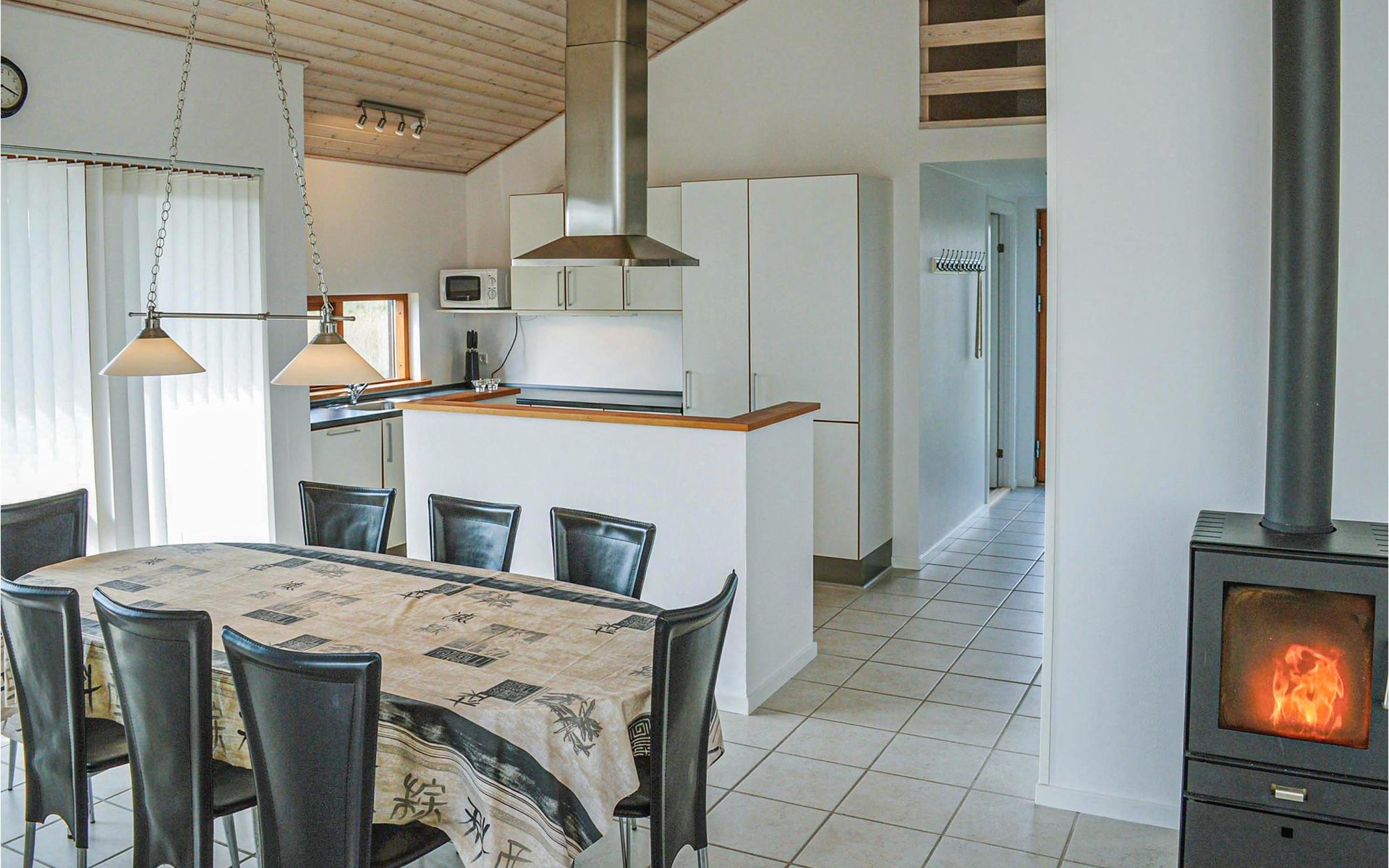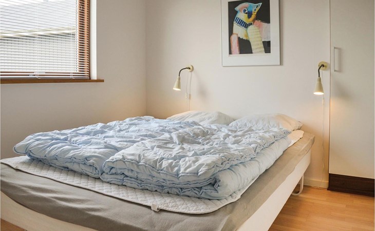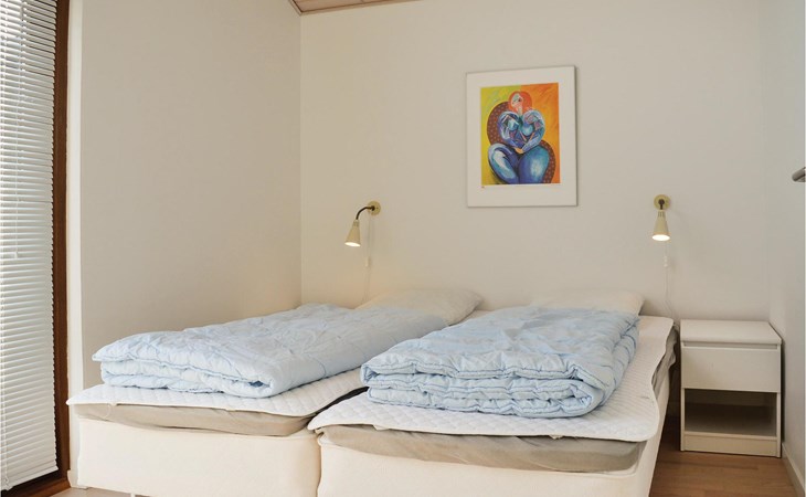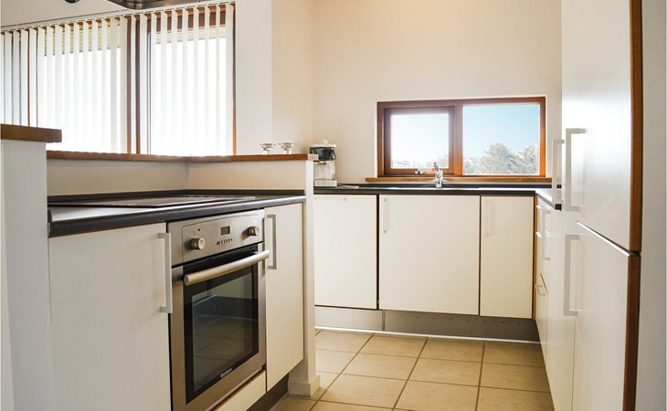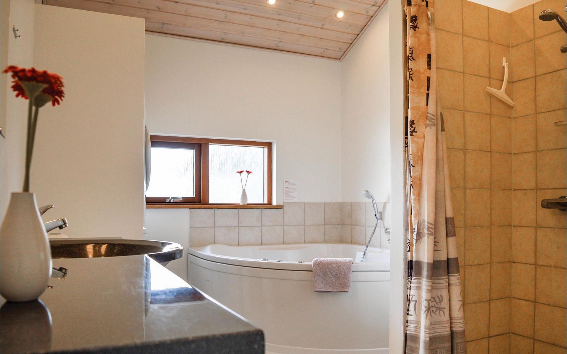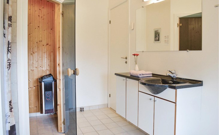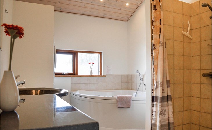 On the outskirts of the cozy harbor town of Thorsminde lies this vacation home in the company of other vacation homes in the same style. They form a small vacation home settlement. In the house there are three bedrooms, a mezzanine and a bright kitchen, which is in open connection with the living room with fireplace. One of the total two bathrooms is equipped with whirlpool and sauna, so you have your own private wellness area.