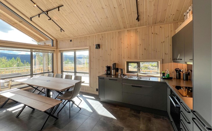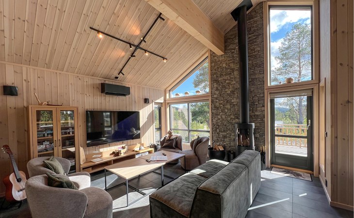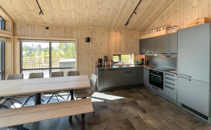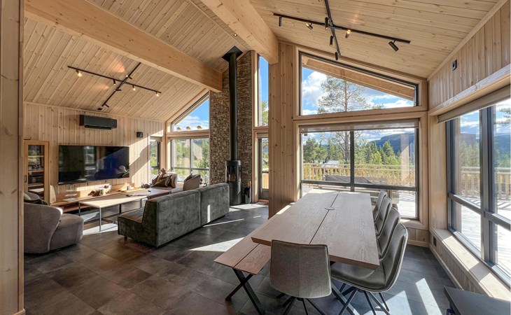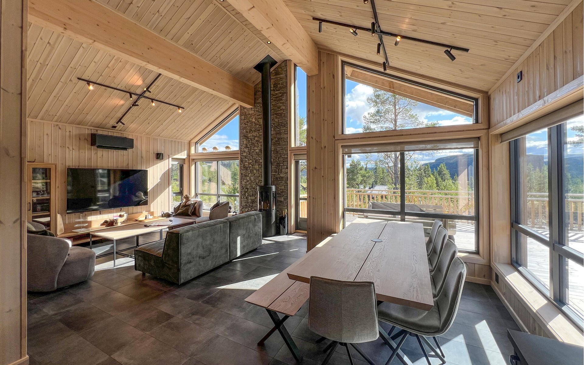 Nestled in the enchanting natural landscape, this comfortable holiday home with high-quality furnishings welcomes you. Tasteful furniture, lots of wood and large window fronts create a real feel-good atmosphere. Enjoy harmonious meals with a panoramic view, relax in the sauna after a long hike and stream a good film while you make yourself comfortable on the spacious sofa area.
