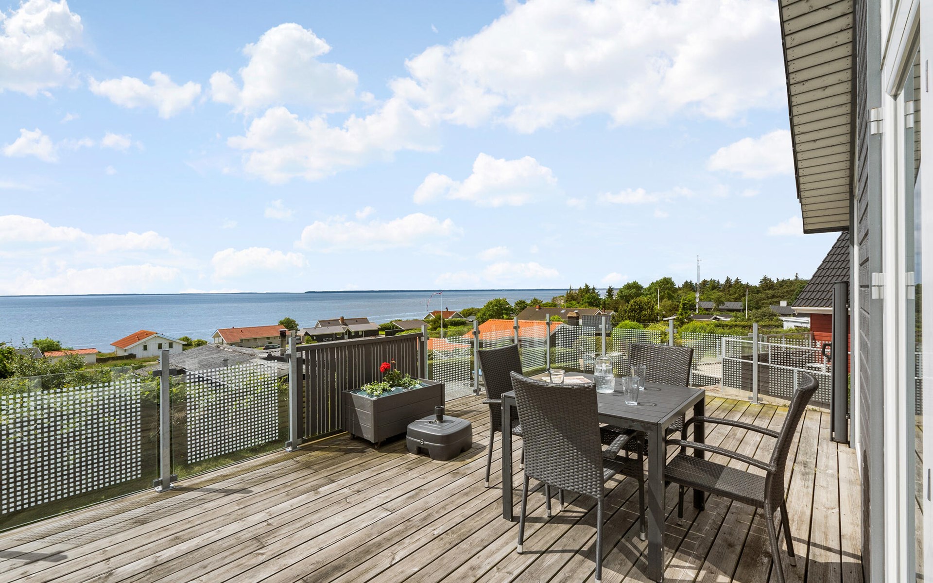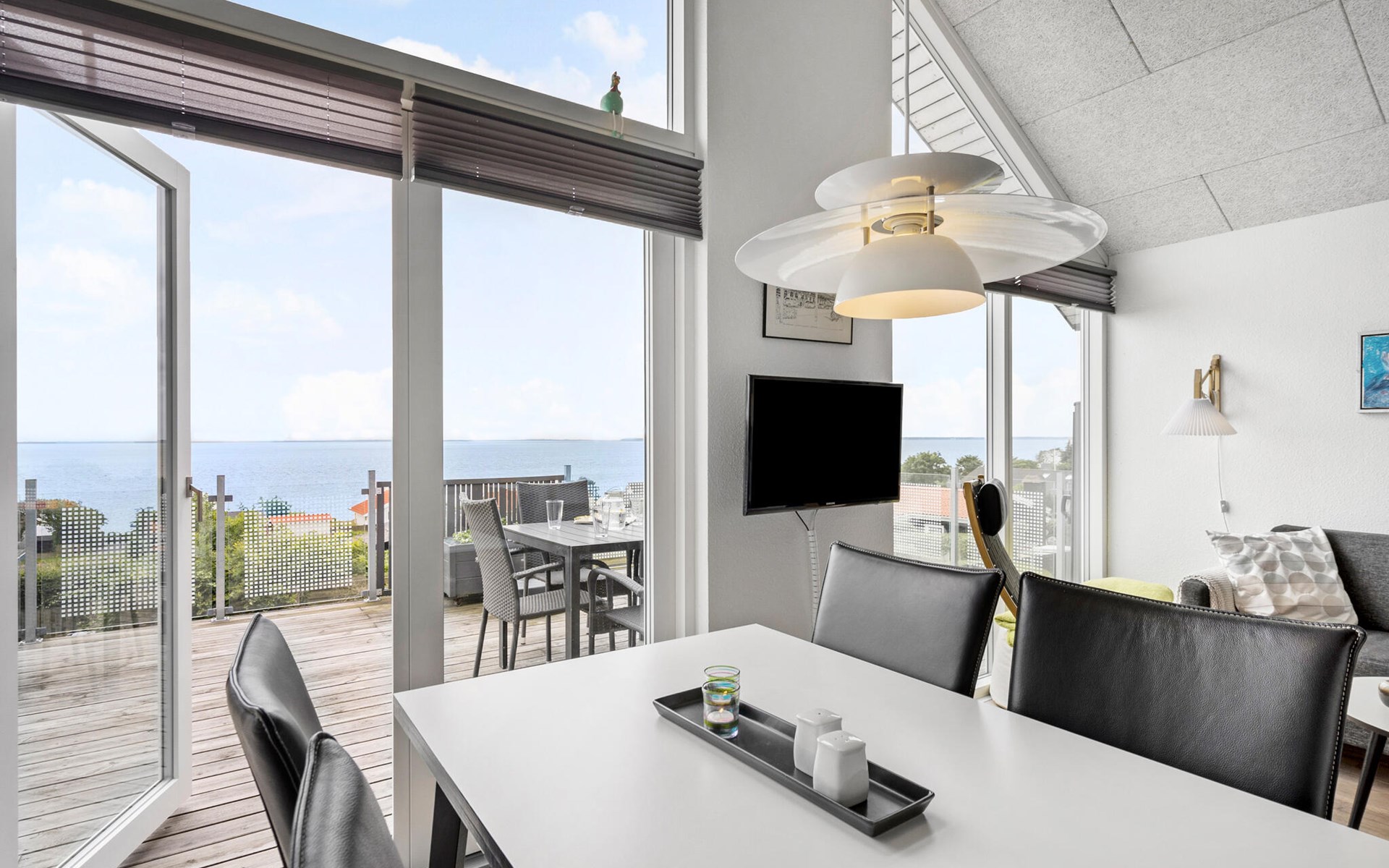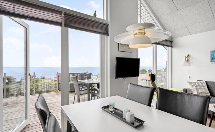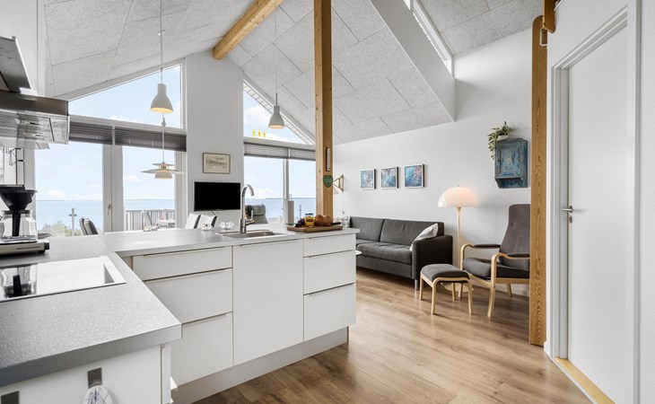 Look forward to relaxing and romantic days in this beautiful holiday home. The cosy furnishings create an inviting atmosphere, which is enhanced by bright colours, lovely decoration and large windows that let in plenty of natural light. The open-plan living area invites you to relax, and the well-equipped kitchen offers you everything you need for cooking evenings together. The seafront location offers you a breathtaking view, which you can enjoy from the large terrace with a glass of wine in the evening.