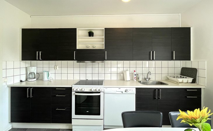 Experience accommodation that provides the ideal starting point for a variety of activities. Step inside and make yourself comfortable on the large corner sofa in the bright living room. Watch TV together, read a book or relax while chatting in a cosy atmosphere. Use the modern kitchen with dining table to prepare your meals and enjoy them with friends.