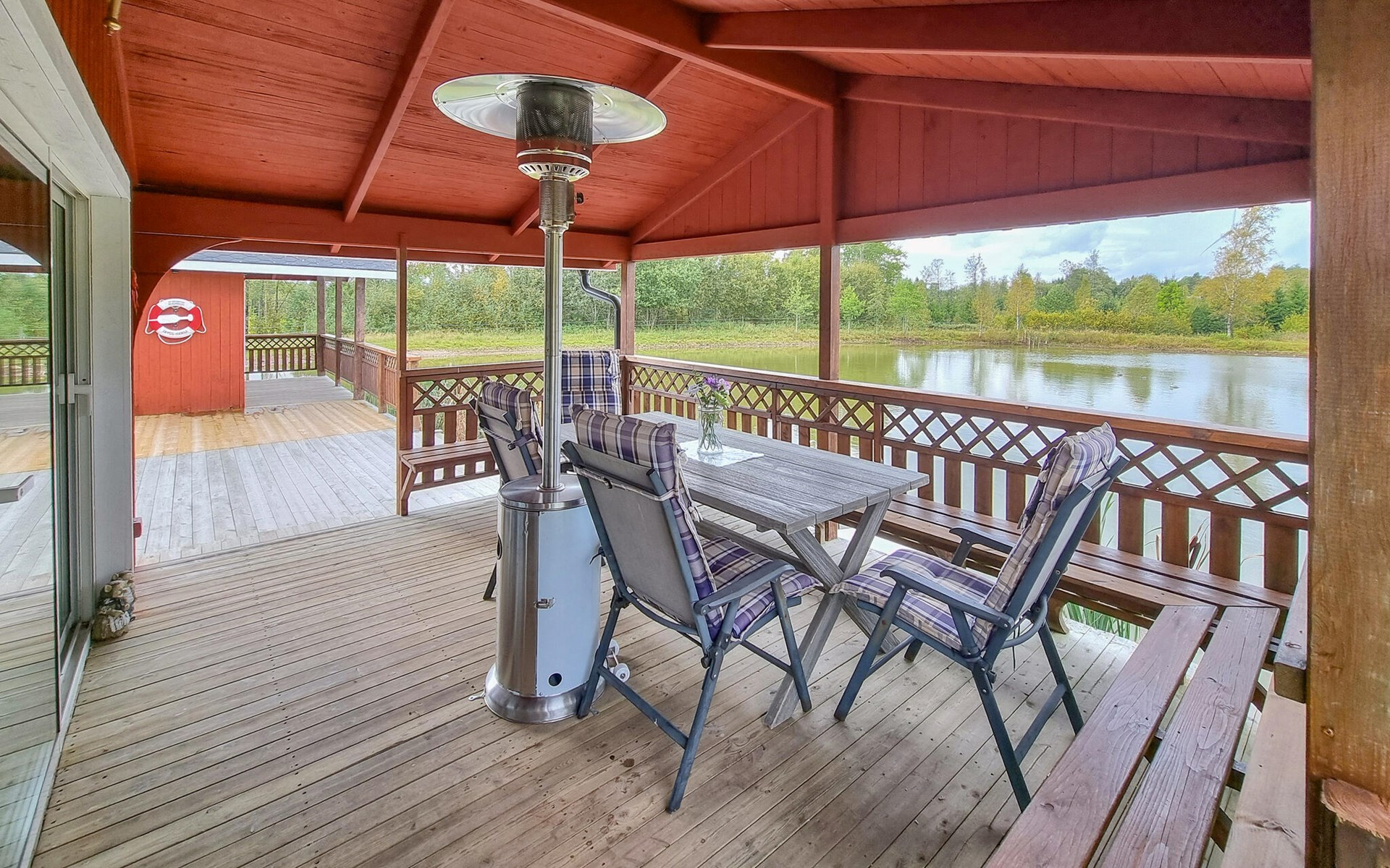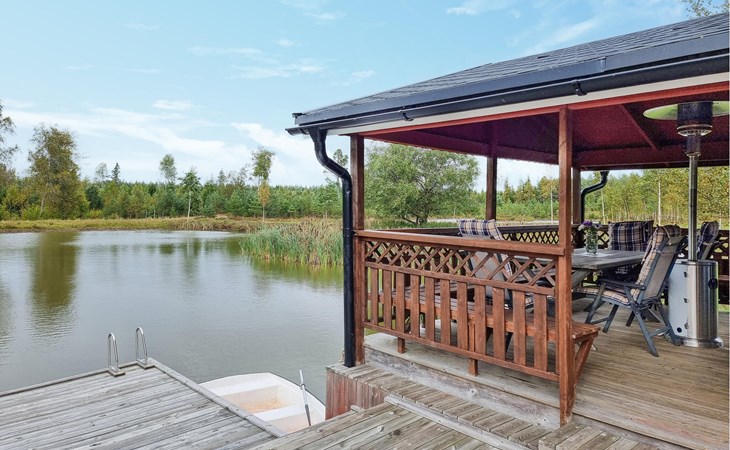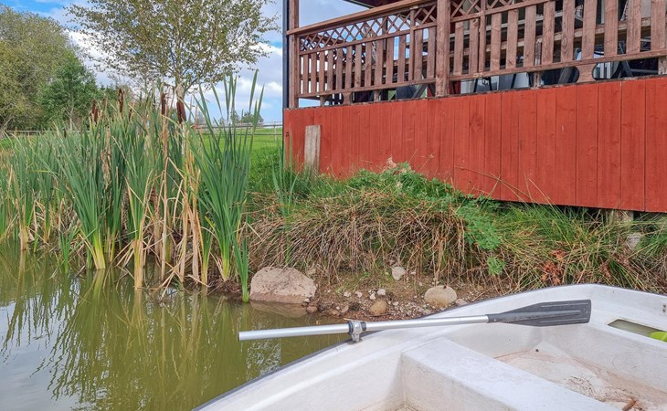 Step out onto the spacious, covered terrace, relax in the comfortable garden furniture and enjoy the view over the pond. You can also use the barbecue facilities for cosy hours outdoors or hop into the rowing boat and explore the water.