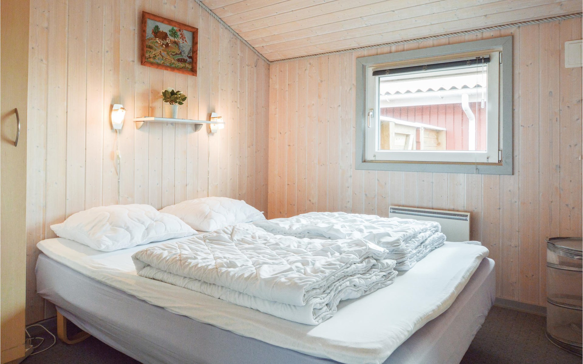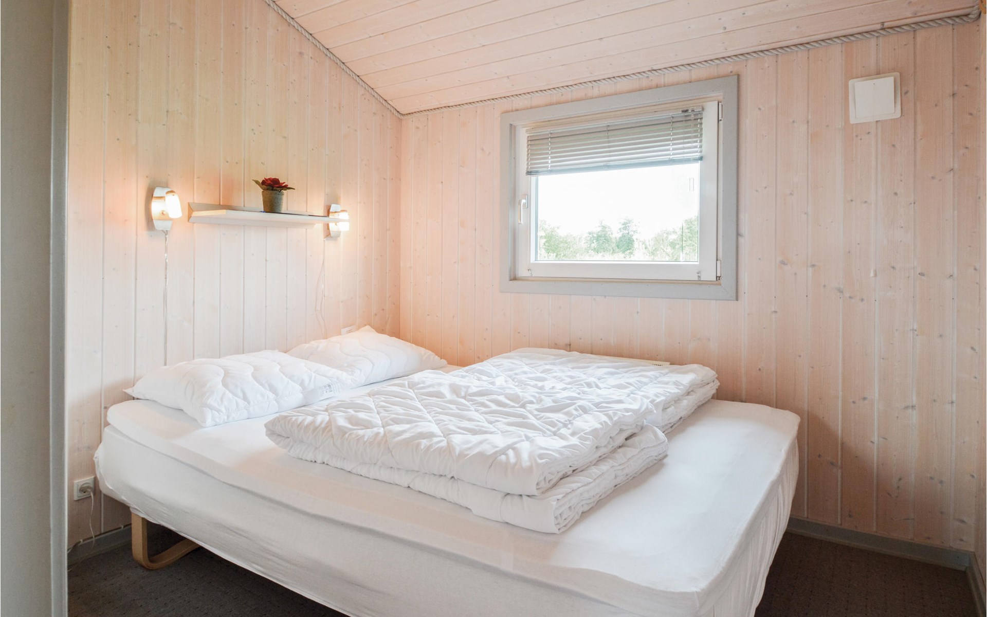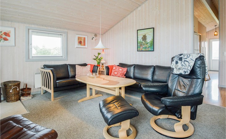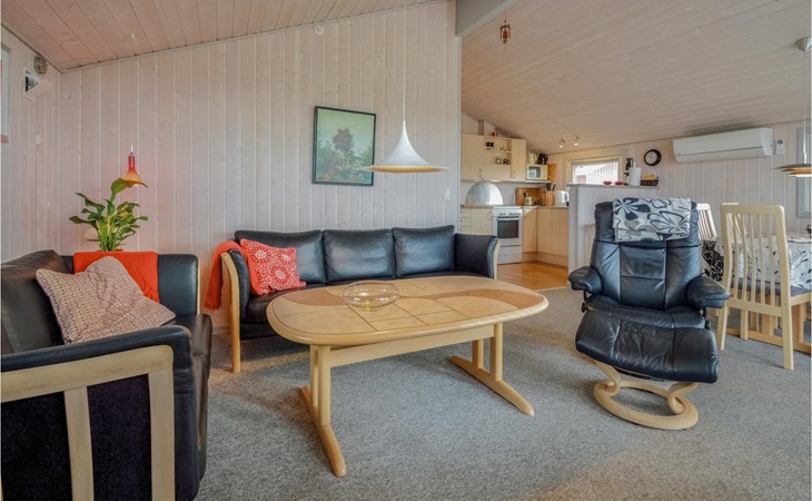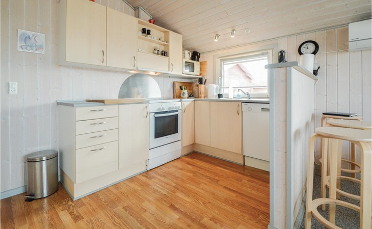 This bright, cozy cottage is located on a large plot in the newer part of Bork. In the house is a large kitchen-living room with wood stove and heat pump, 3 bedrooms with double beds and a bathroom with shower and sauna. There is also a washing machine.