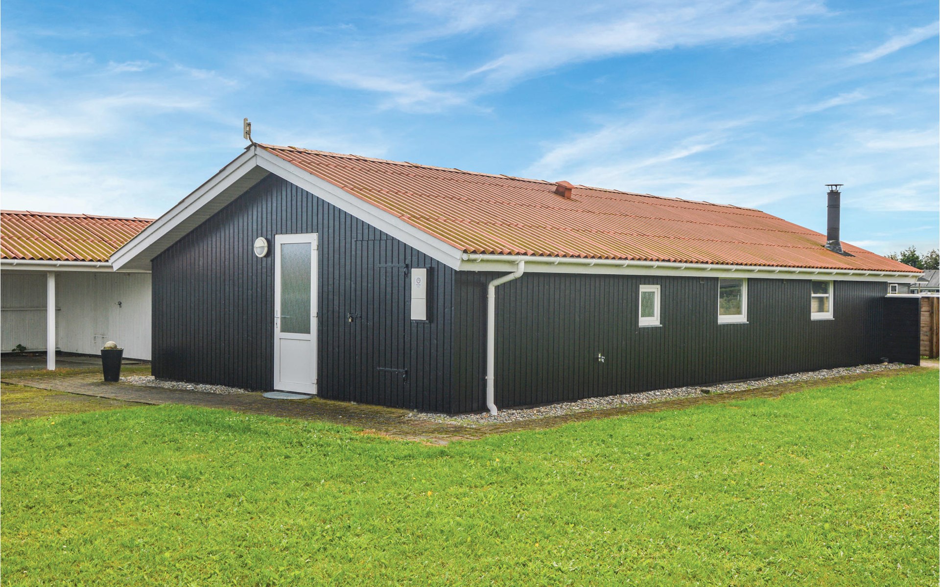 Outside you can expect a really large terrace, which is partly covered and equipped with garden furniture and barbecue. There is also a carport.