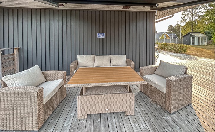 Linger on the spacious terrace, which offers various seating options. Enjoy the fresh air, take a seat at the large table or relax in the covered lounge corner.