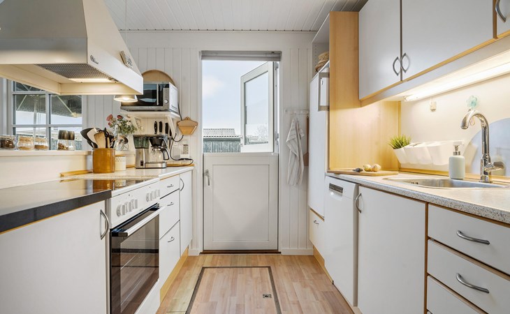 Your tastefully furnished holiday home invites you to switch off and relax. The open-plan kitchen is the ideal place for cooking together and enjoying culinary moments. Enjoy your meals at the adjoining dining table and then relax in the sofa area in front of the wood-burning stove, which creates a cosy atmosphere. Enjoy a game of cards or an exciting book and soak up the relaxed holiday atmosphere. The spacious terrace invites you to round off the day with a barbecue dinner, while the sauna promises relaxation for body and soul.