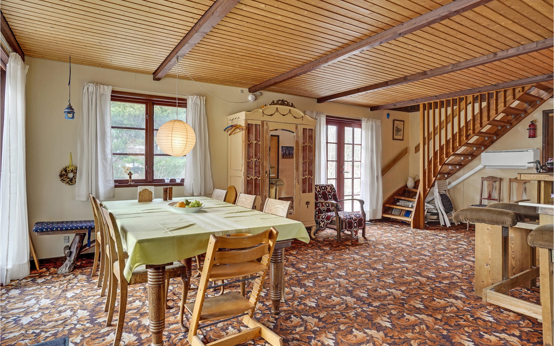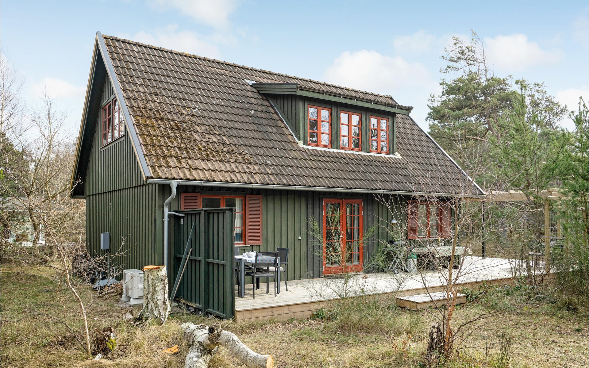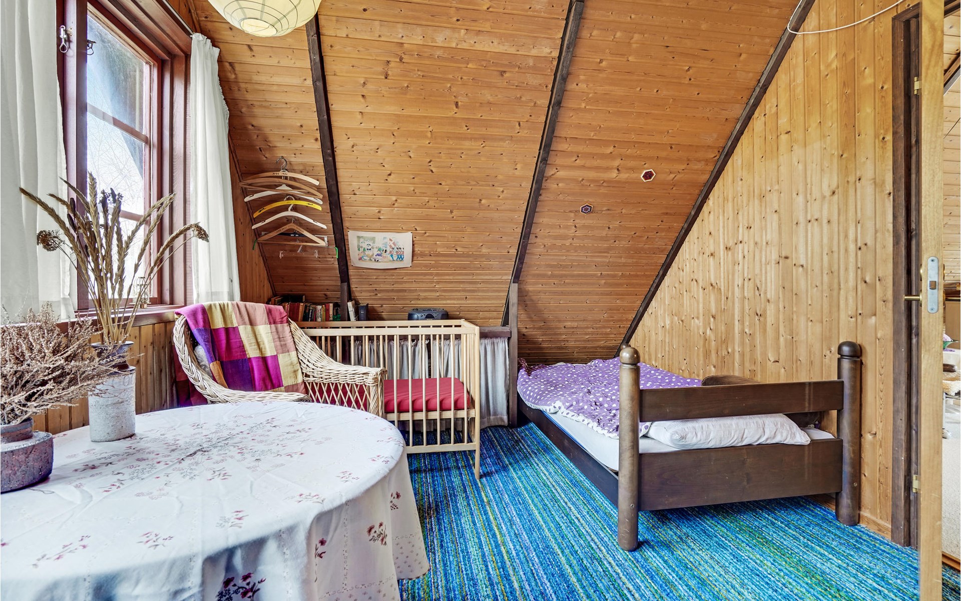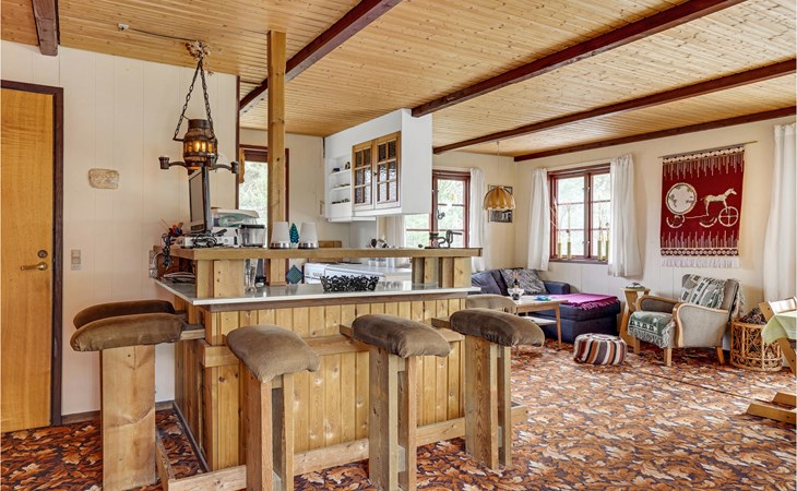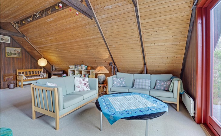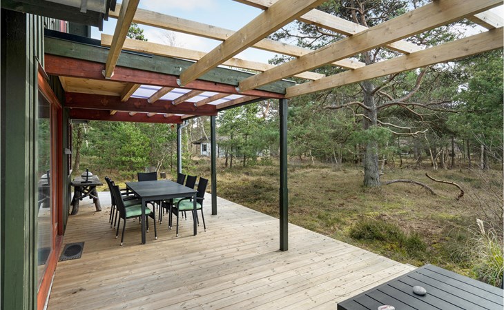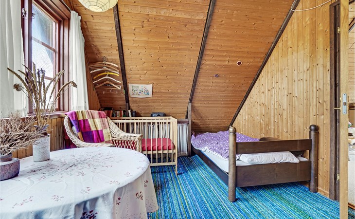 This wonderful wooden house offers you a special atmosphere with rustic design and lively decorations. A colorful interior and the harmonious wooden inventory will provide you with cozy corners to relax, as well as spend time together with your family or friends. In this house you will find several retreats where you can settle down and find yourself with your novel in daylit rooms. Outside, a partially covered terrace with garden furniture and barbecue awaits you, where you can enjoy relaxing hours outdoors, have breakfast together and barbecue towards the evening.