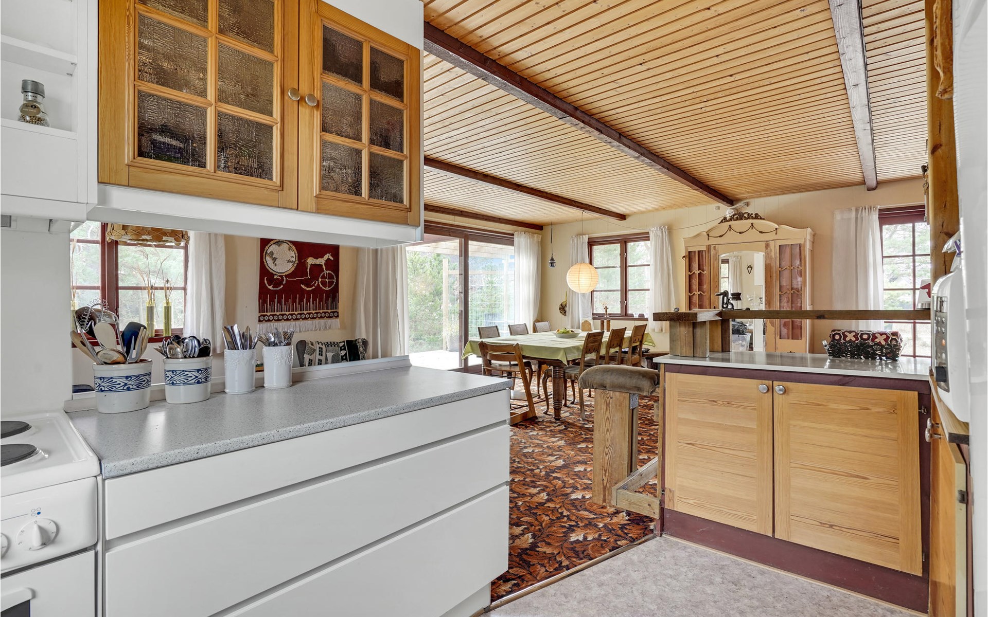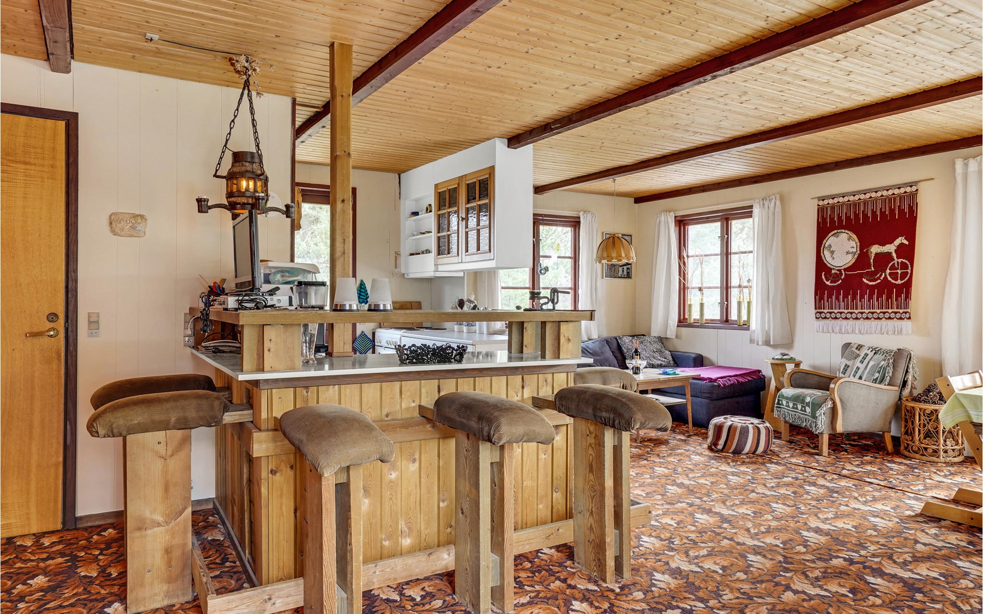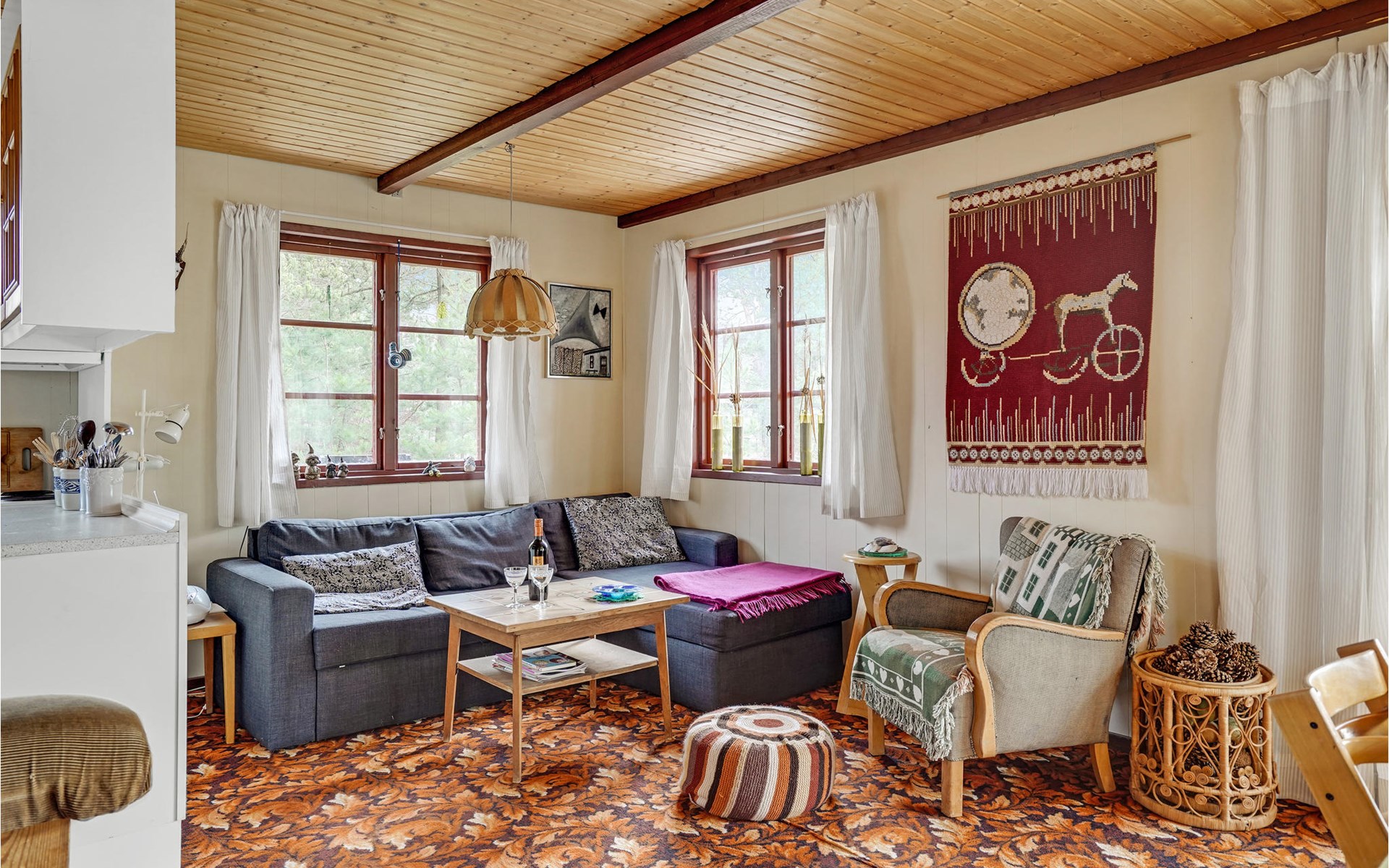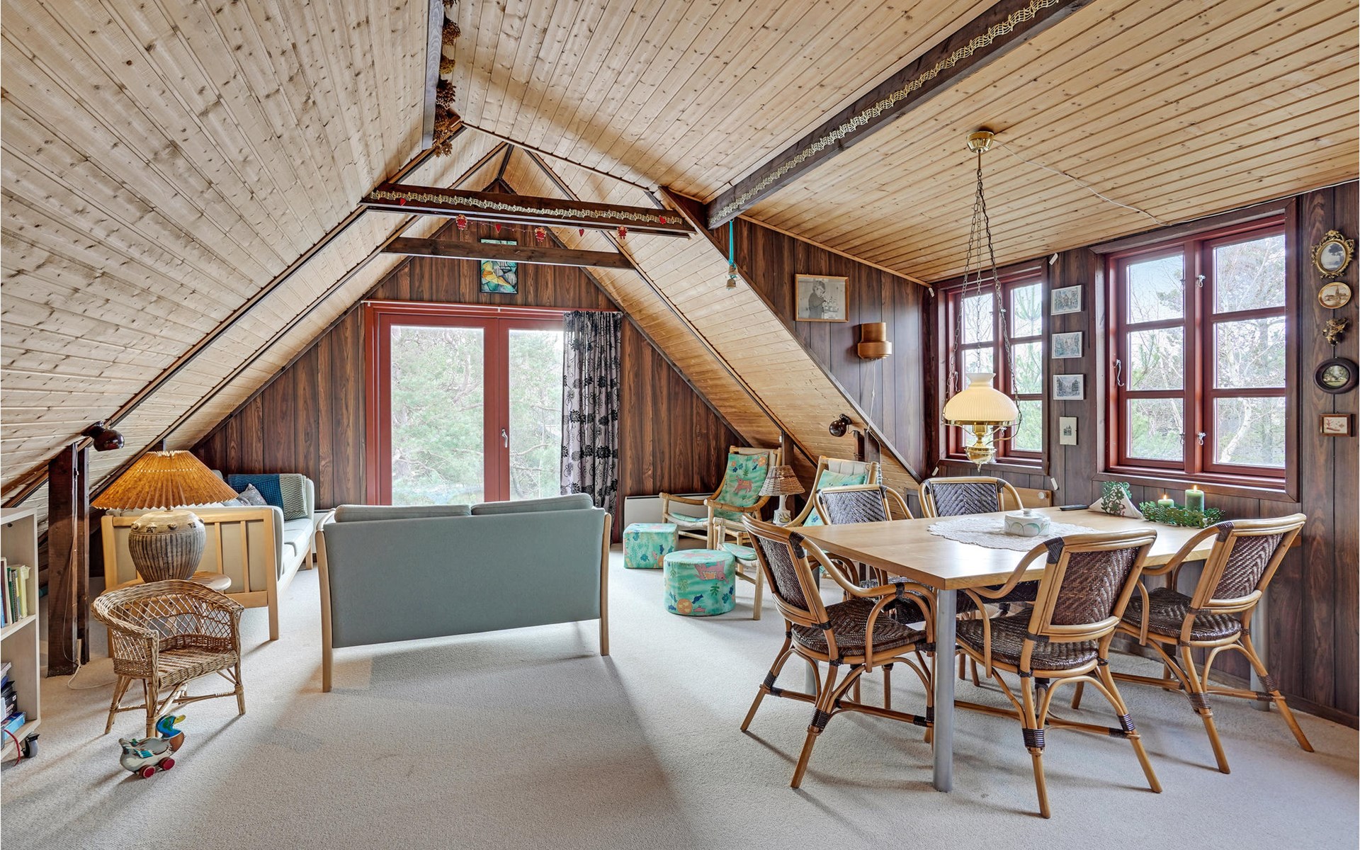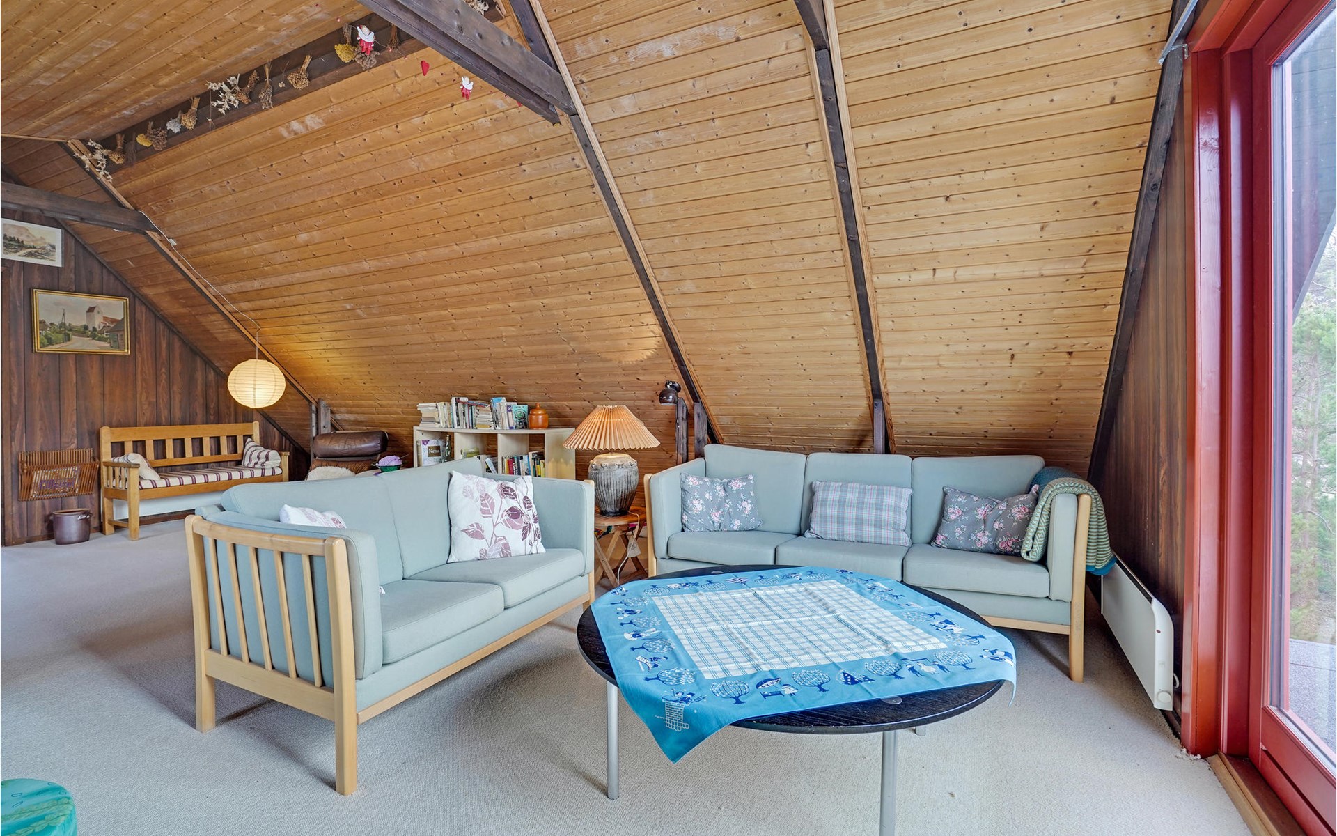 This wonderful wooden house offers you a special atmosphere with rustic design and lively decorations. A colorful interior and the harmonious wooden inventory will provide you with cozy corners to relax, as well as spend time together with your family or friends. In this house you will find several retreats where you can settle down and find yourself with your novel in daylit rooms. Outside, a partially covered terrace with garden furniture and barbecue awaits you, where you can enjoy relaxing hours outdoors, have breakfast together and barbecue towards the evening.
