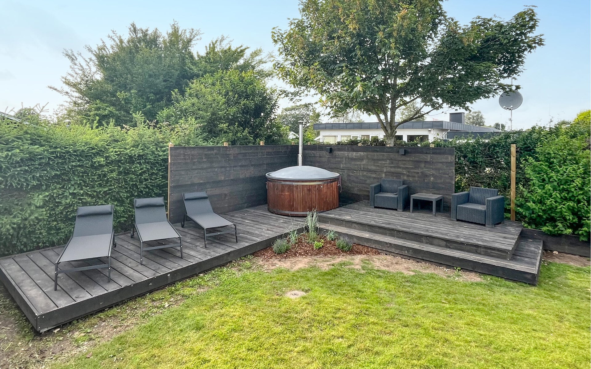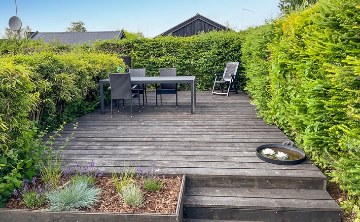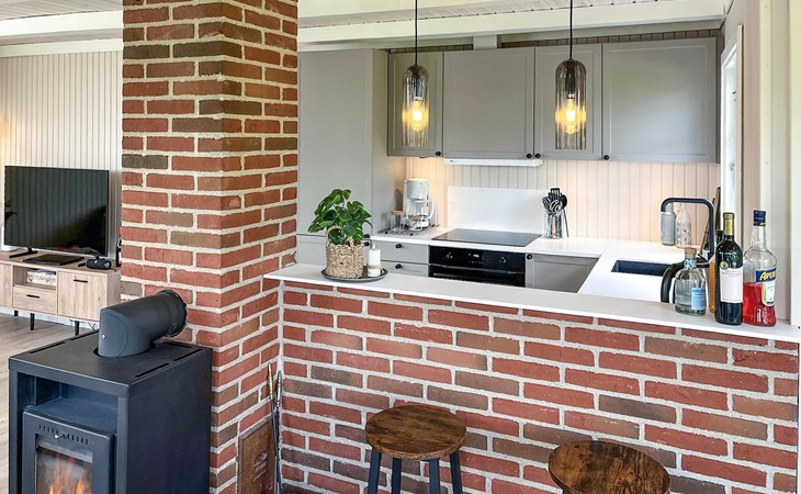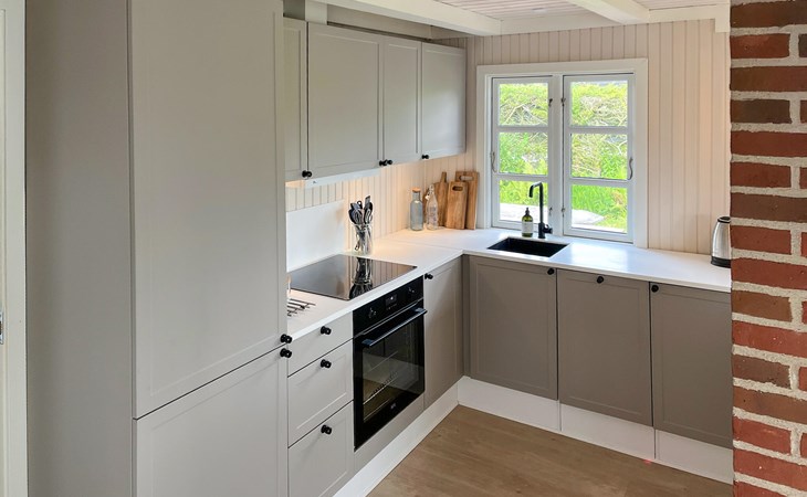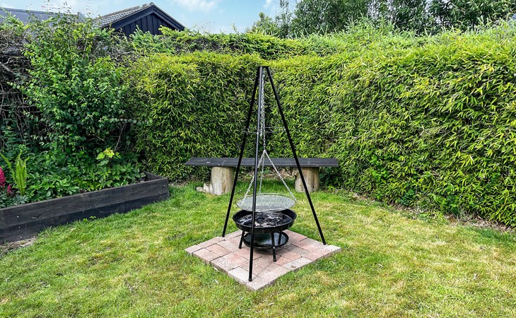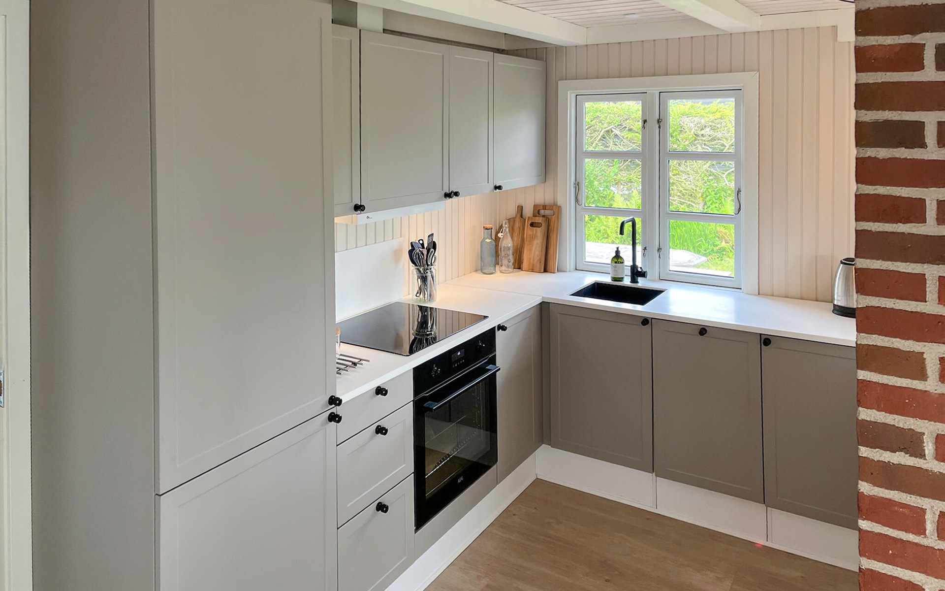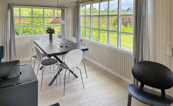 Nestled in a secluded garden and just a short walk from the sea, this bright and friendly holiday home welcomes you with a tastefully furnished interior. Cook and dine with a view of the greenery, light the wood-burning stove and cosy up on the sofa with a film after a long day in the fresh sea air.