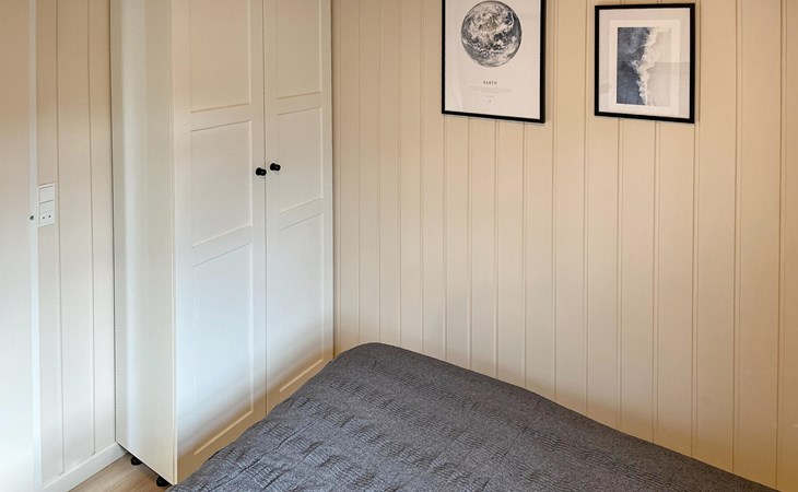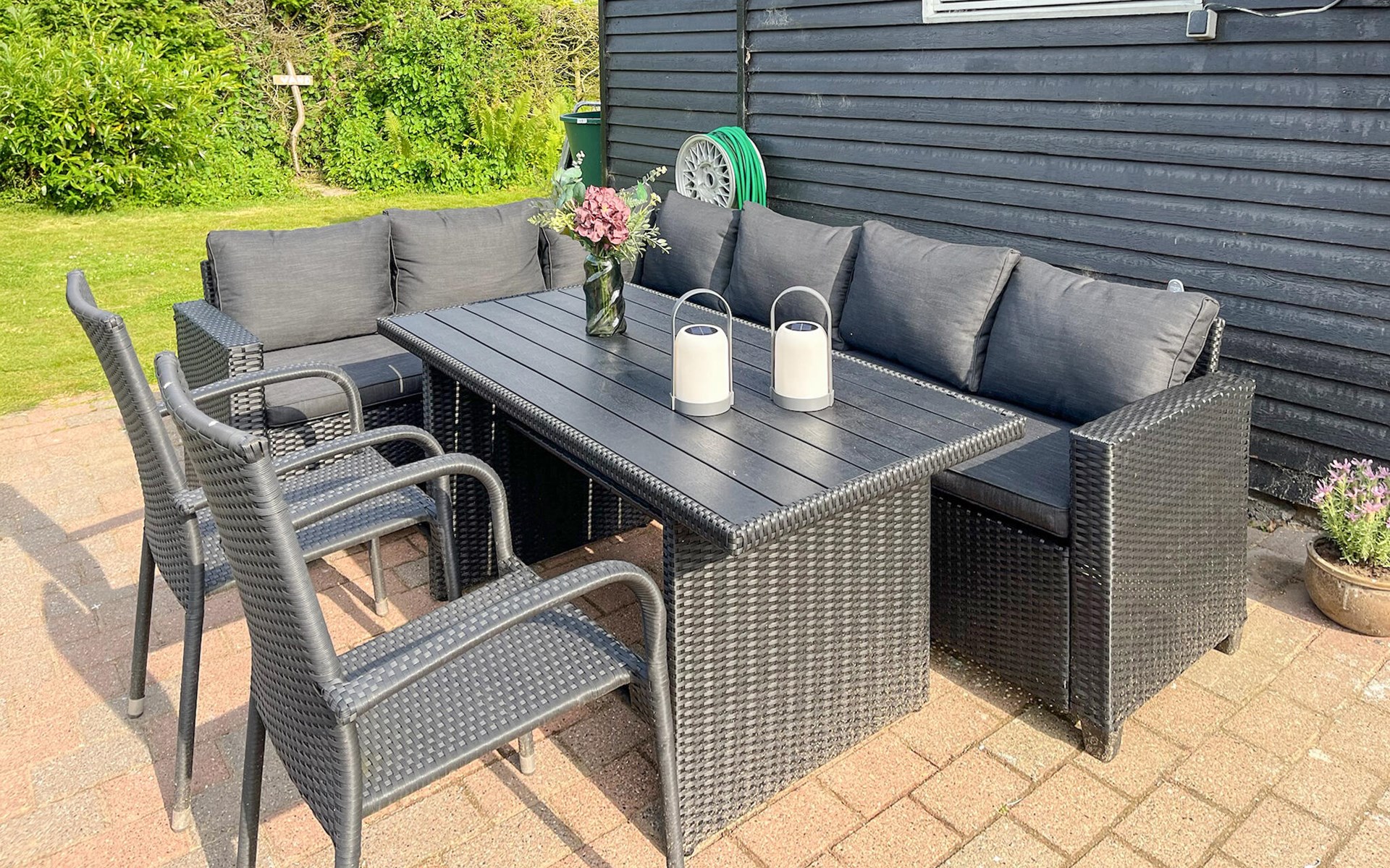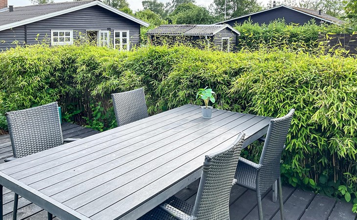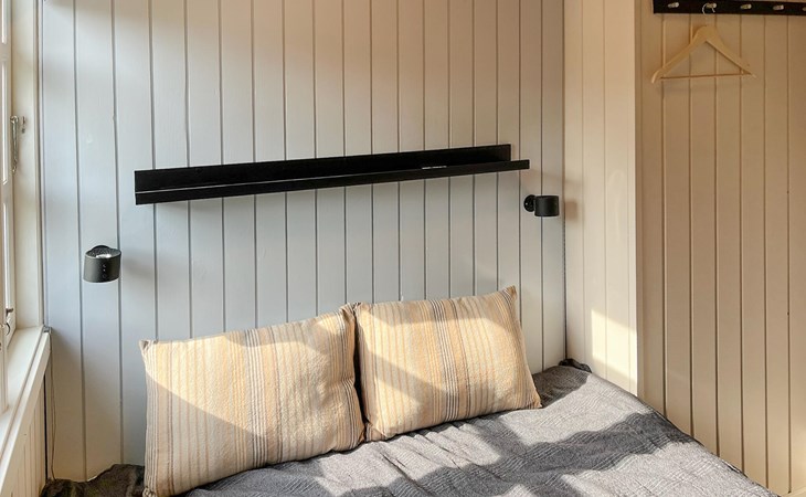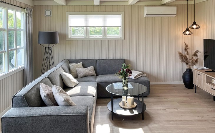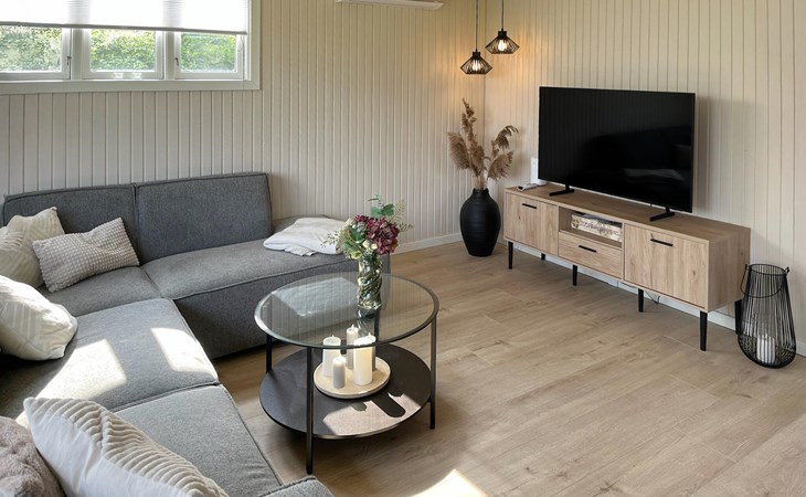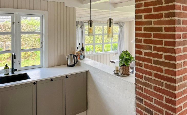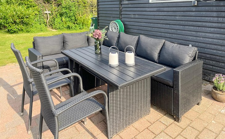 Nestled in a secluded garden and just a short walk from the sea, this bright and friendly holiday home welcomes you with a tastefully furnished interior. Cook and dine with a view of the greenery, light the wood-burning stove and cosy up on the sofa with a film after a long day in the fresh sea air.