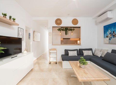 ๐บ Bright living-dining room with TV and access to the furnished terrace.