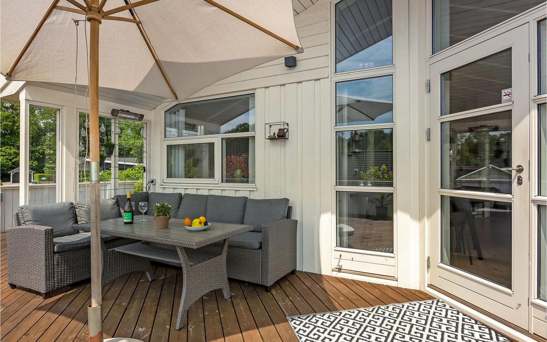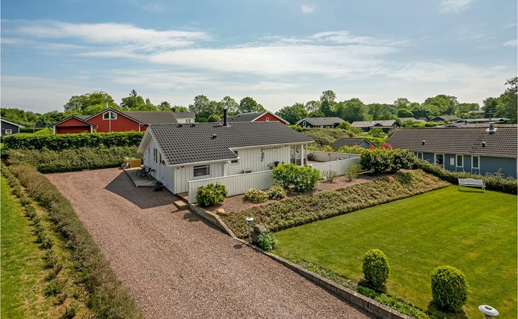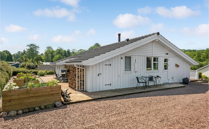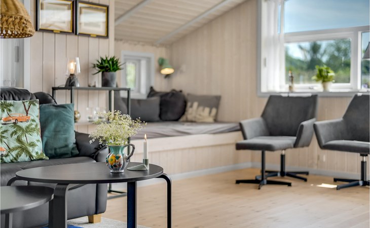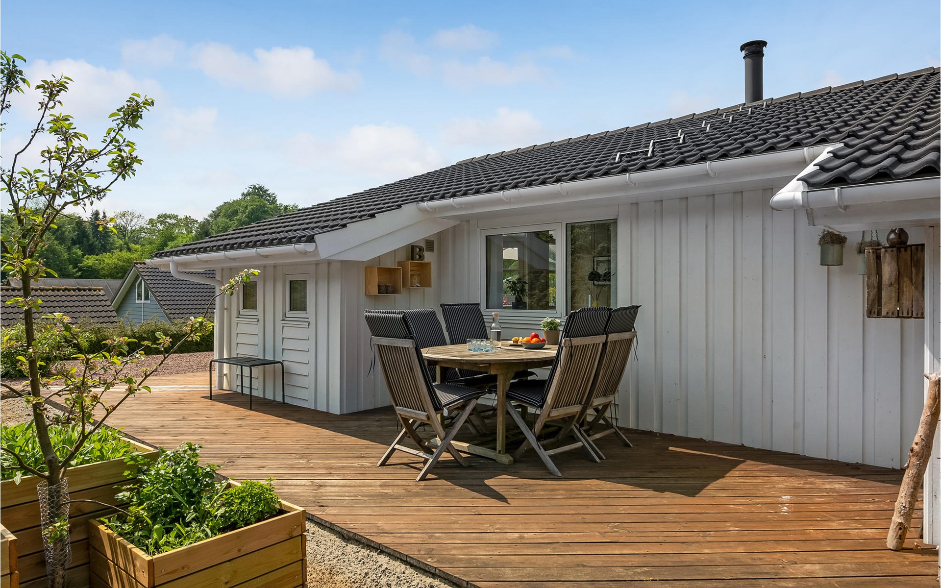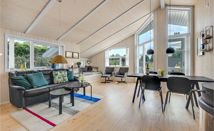 Highly situated vacation home with a spacious, view-protected terrace area, only 200 m from the gentle, Danish Baltic Sea coast.