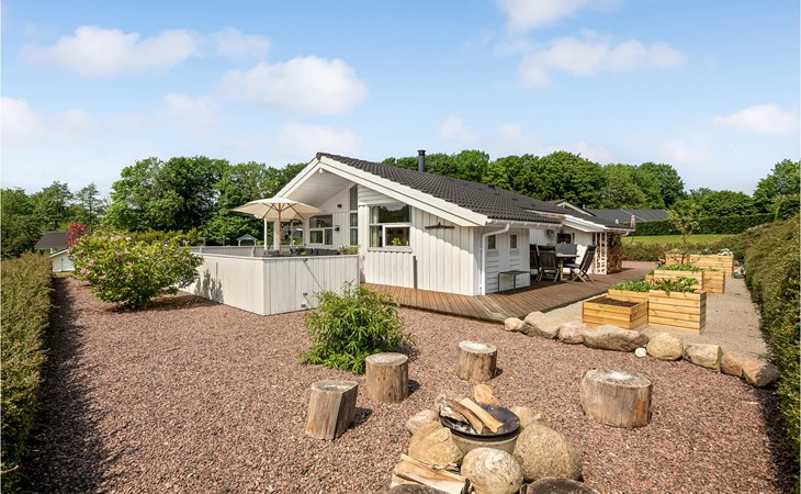 In the quiet village of Loddenhøj, this beautiful vacation home welcomes you. It is bright and has a large kitchen-living room. Three bedrooms accommodate good beds and plenty of space. In large bathroom is the washing machine. On the partly covered terraces, it goes around the whole house, you can be undisturbed.