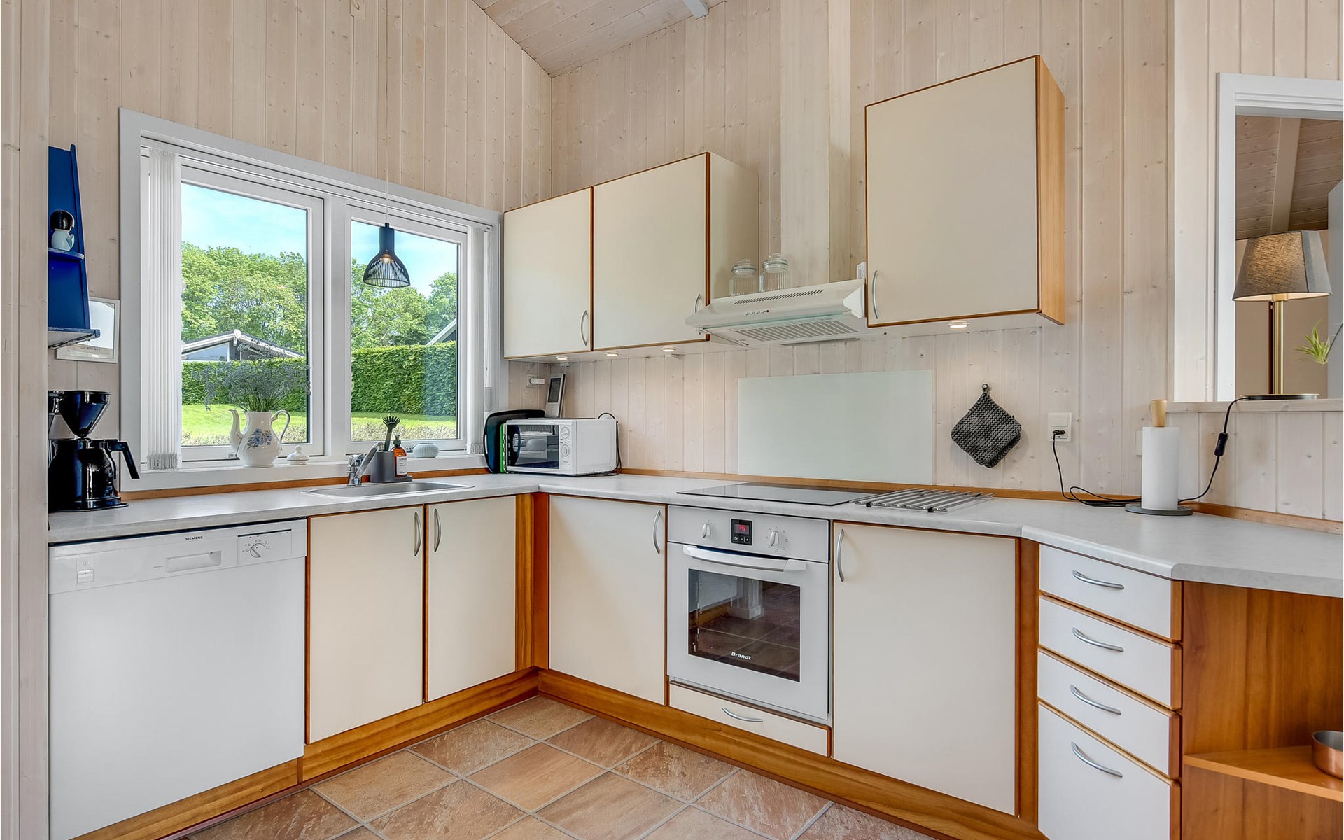 The neighborhood is quiet and 200 m from the house is a beautiful sandy beach, where you can incidentally also fish well. Family-friendly Loddenhøj enjoys a natural, wooded, coastal location. Here you will find idyllic hollow paths and old houses with reed roofs. Aabenraa is perfect for a stroll, Haderslev has an old town center, Gråsten Castle is the summer meeting place of the royal family. Sønderborg has much to offer with a castle, just outside is the history center Dybbøl Banke. From there it is also not far to the Universe on Als.