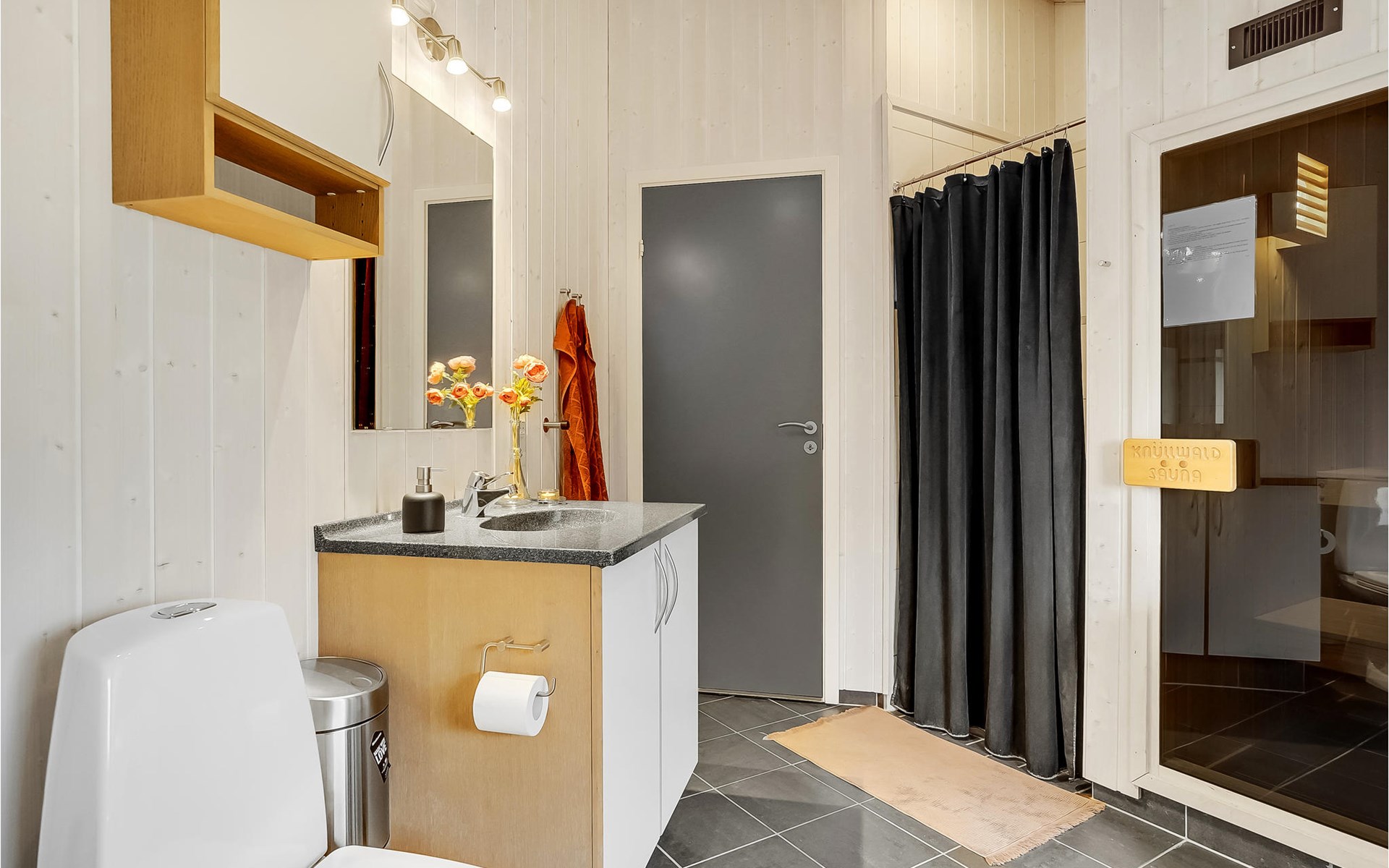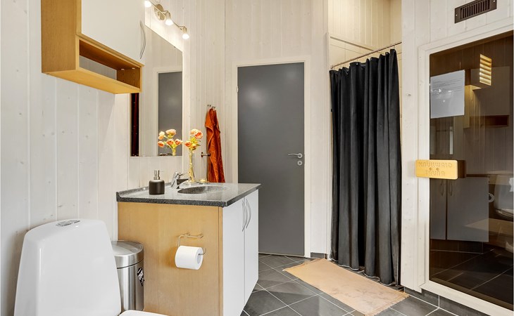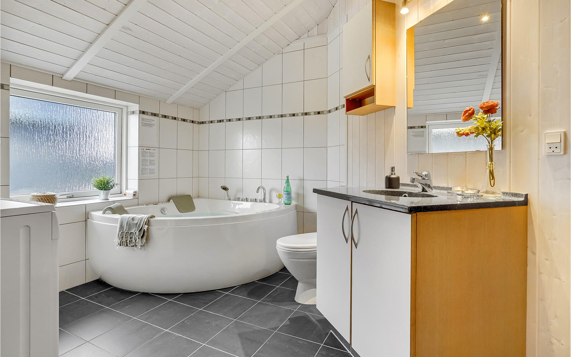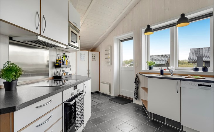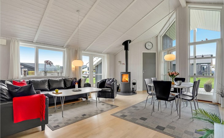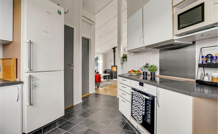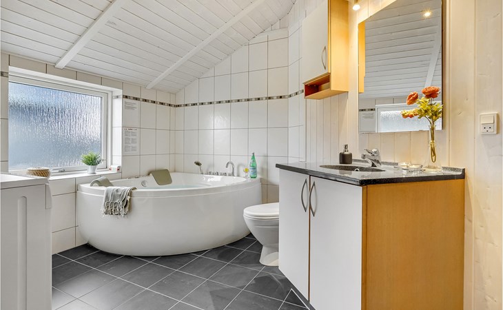 Great vacation home with many beautiful details. You see this immediately when you enter the white kitchen with the black clinker floor. From here you come into the open living room with a cozy interior and the fireplace. In front of it is then the large terrace to the east and south. In the large bathroom is a corner jacuzzi. In the garden there is a pétanque field. Here on the east coast you can especially enjoy the varied nature. From everywhere you can easily reach the fjord, the dam, the forests as well as the beaches. A few kilometers away is the beautiful old Haderslev. Flovt beach is simply fantastic, a child-friendly sandy beach and good fishing water.