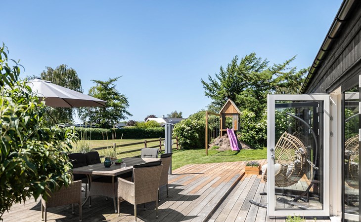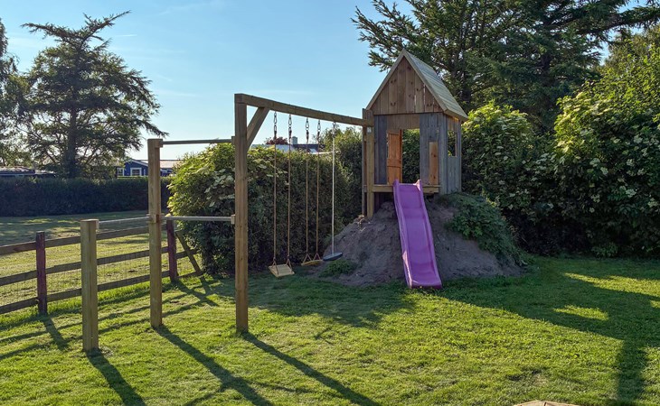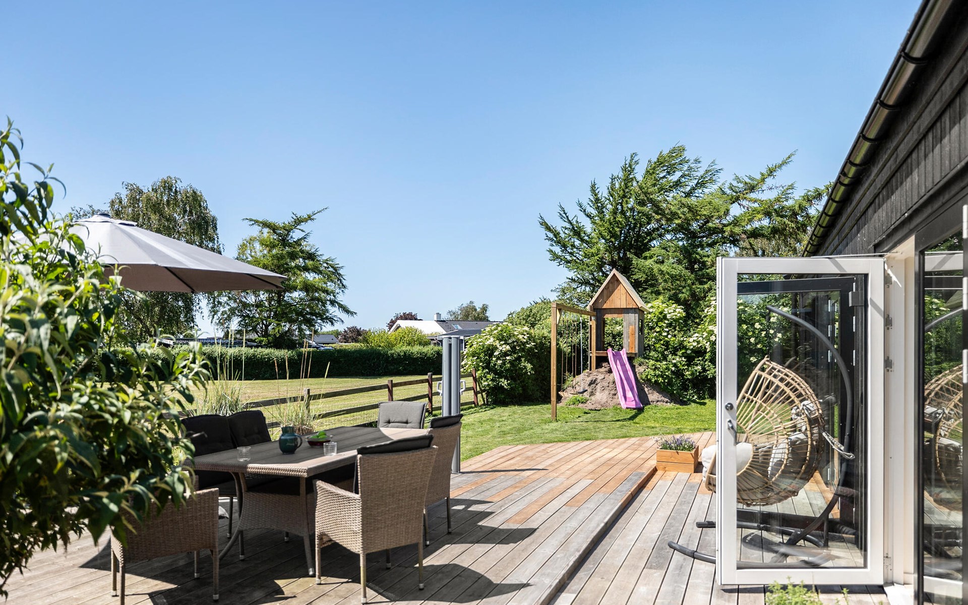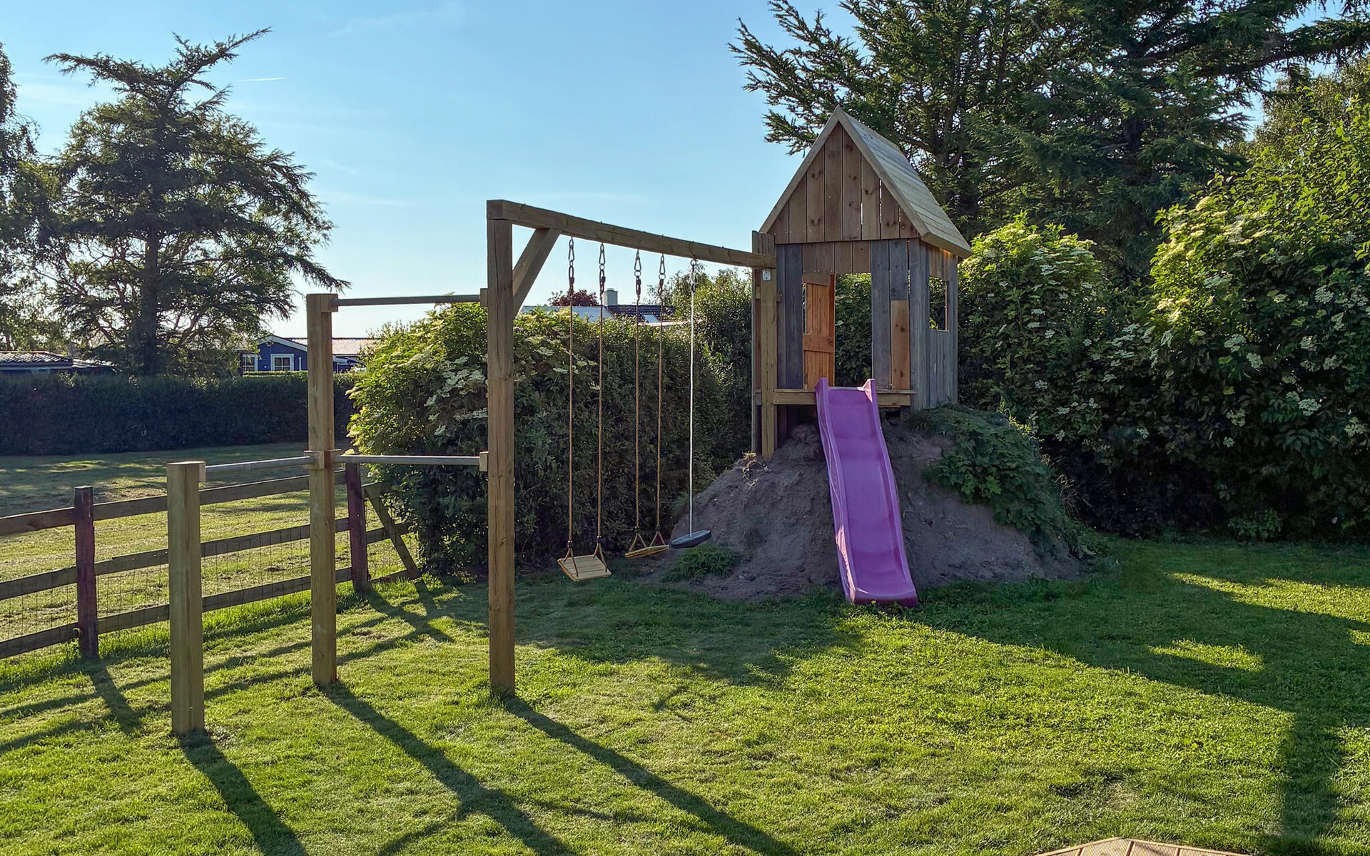 Step out onto the large wooden terrace. Relax in the outdoor hot tub or make yourself comfortable in the hanging chair. There is a swing, slide and sandpit for children. The extensive lawn offers space to play and run around. In the evening, the whole family gathers around the fire pit, ideal for stick bread and stimulating conversations under the evening sky.
