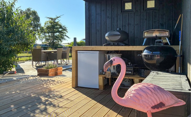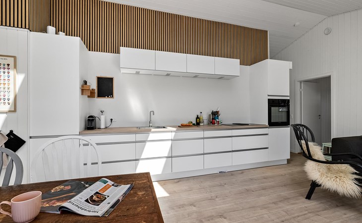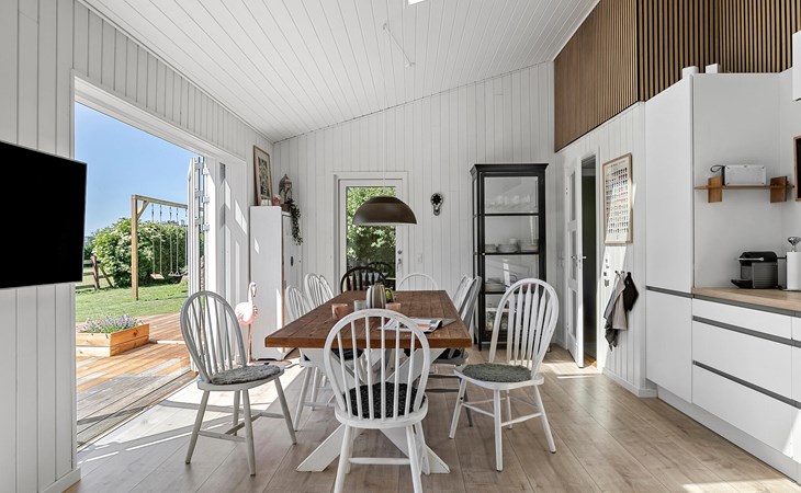 Spend your next holiday in a stylish and family-friendly island holiday home. The well thought-out furnishings and the beautiful grounds ensure relaxing days full of variety. Enter the bright living area with cosy sofa corner and be welcomed by the harmonious furnishings. The open-plan space combines living, dining and cooking in a natural way. Sit down at the large wooden table and enjoy meals together with a view of the garden. The modern kitchen is ideal for relaxed cooking evenings with the family.
