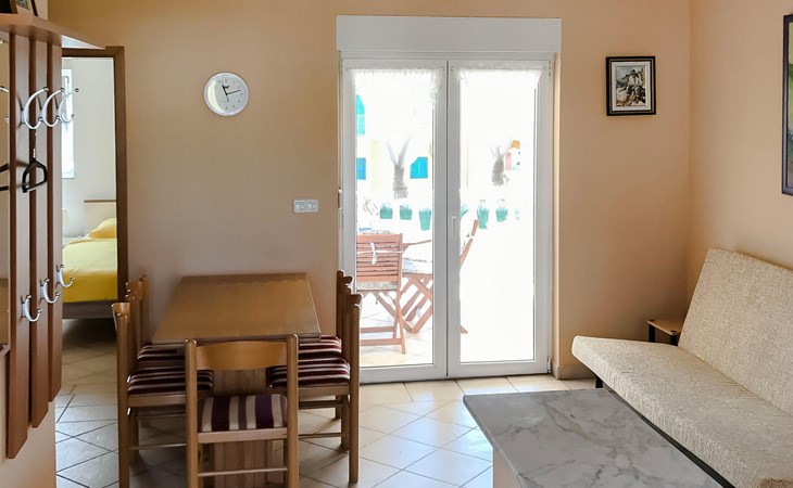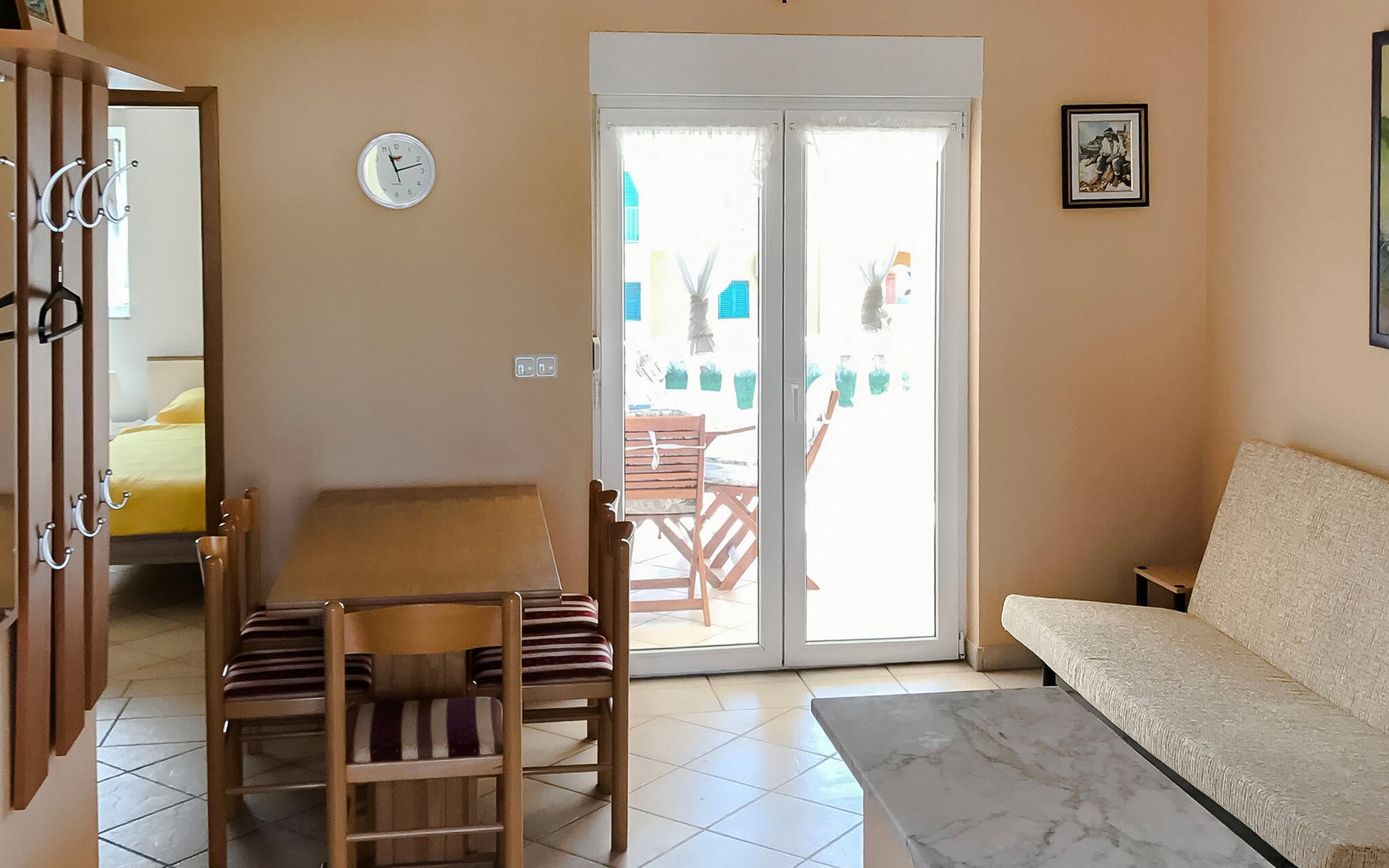 Located on the island of Vir, this apartment is perfect for a relaxing holiday. A bright living room with sofa and direct access to the terrace and a practical kitchen will make you feel right at home. Relax here while listening to music, spend an afternoon playing cards or try out new recipes while cooking together.