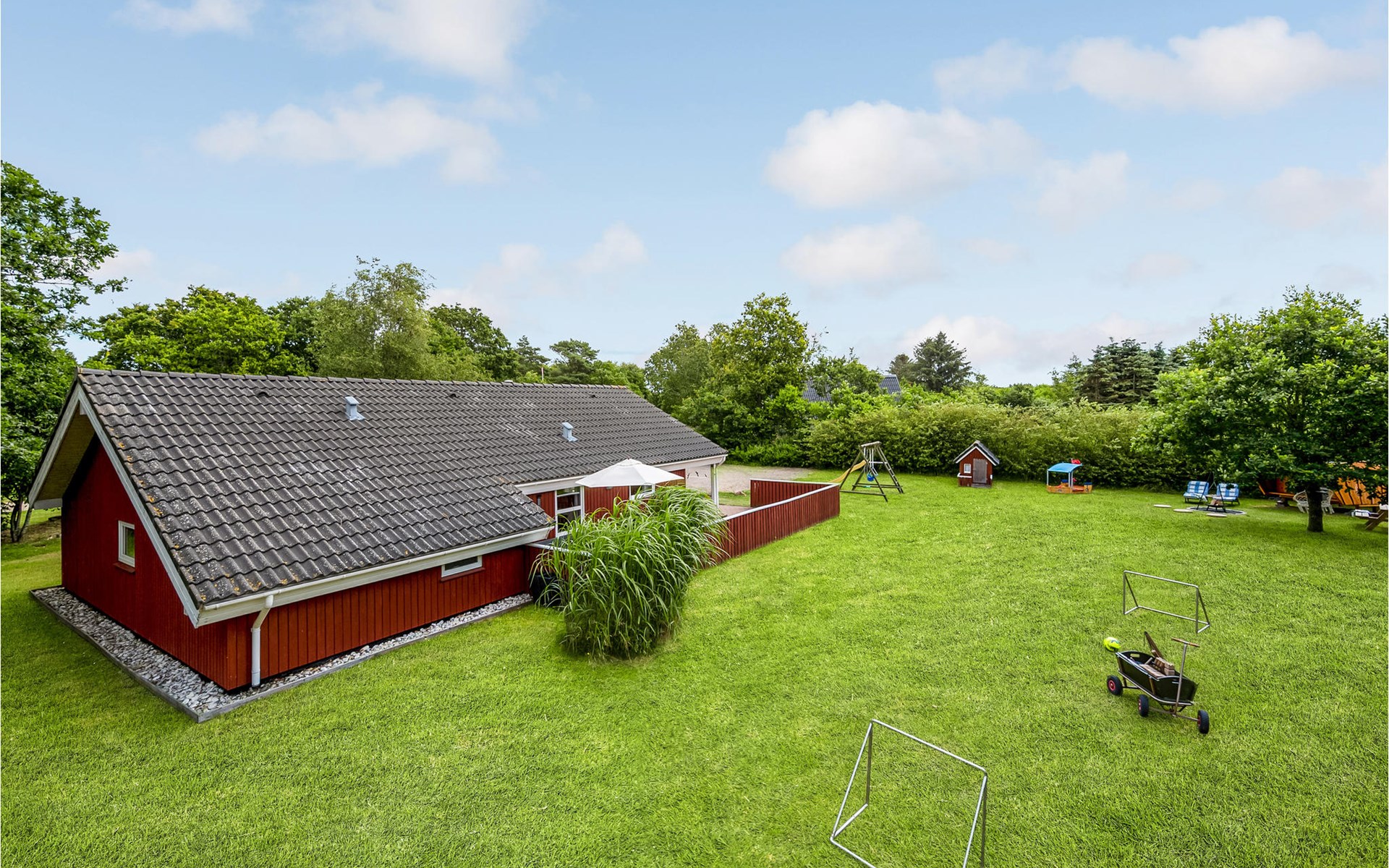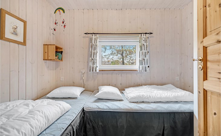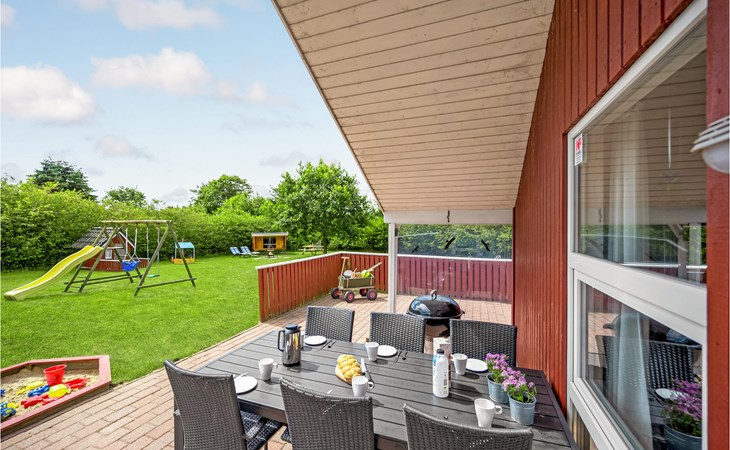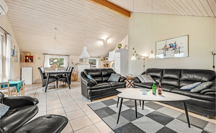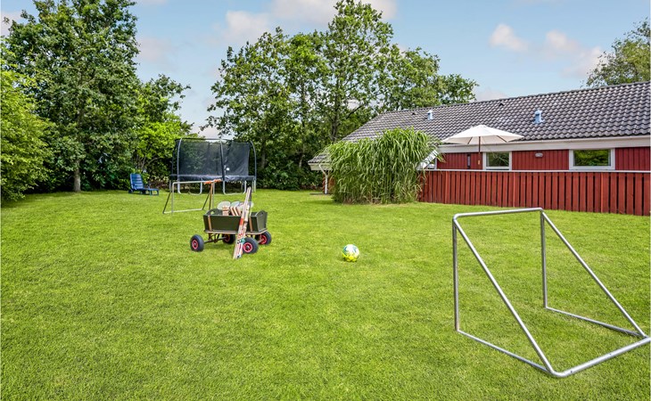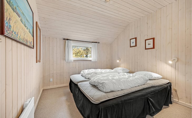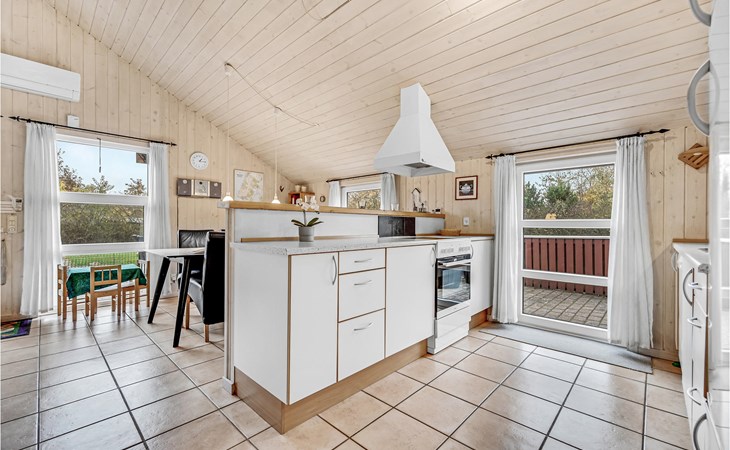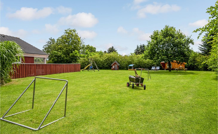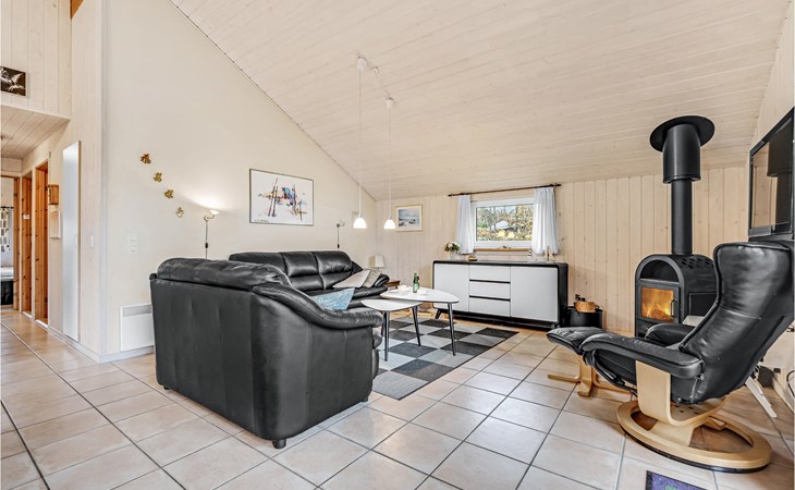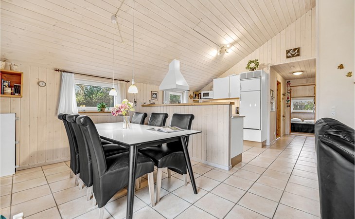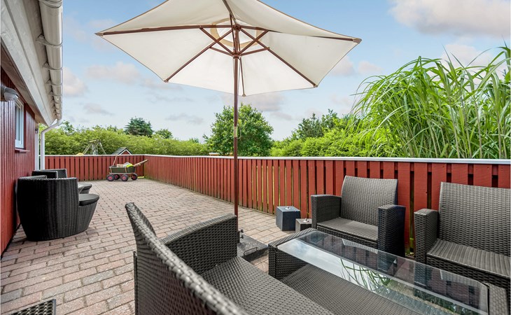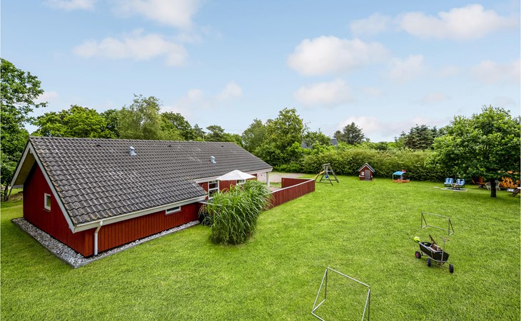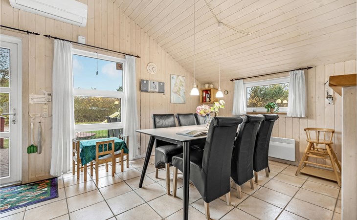 This vacation home offers the optimal vacation for the whole family. It is comfortably furnished and located in Jegum Ferieland with tennis courts, mini golf, playground, cafeteria, grocery store and more nearby. Henne golf course and fishing opportunities nearby. The facilities in this tastefully and comfortably furnished house make it ideal for a stay in any season. The facilities include three bedrooms, a bathroom with sauna and a guest toilet. For families with small children there is a playpen. There is a playhouse on the property and the terrace is partially fenced. The house is situated on a very large natural plot with a typical Danish shelter for sleeping outside. A network of footpaths covers the area, nearby is also the Tirpitz Museum.
