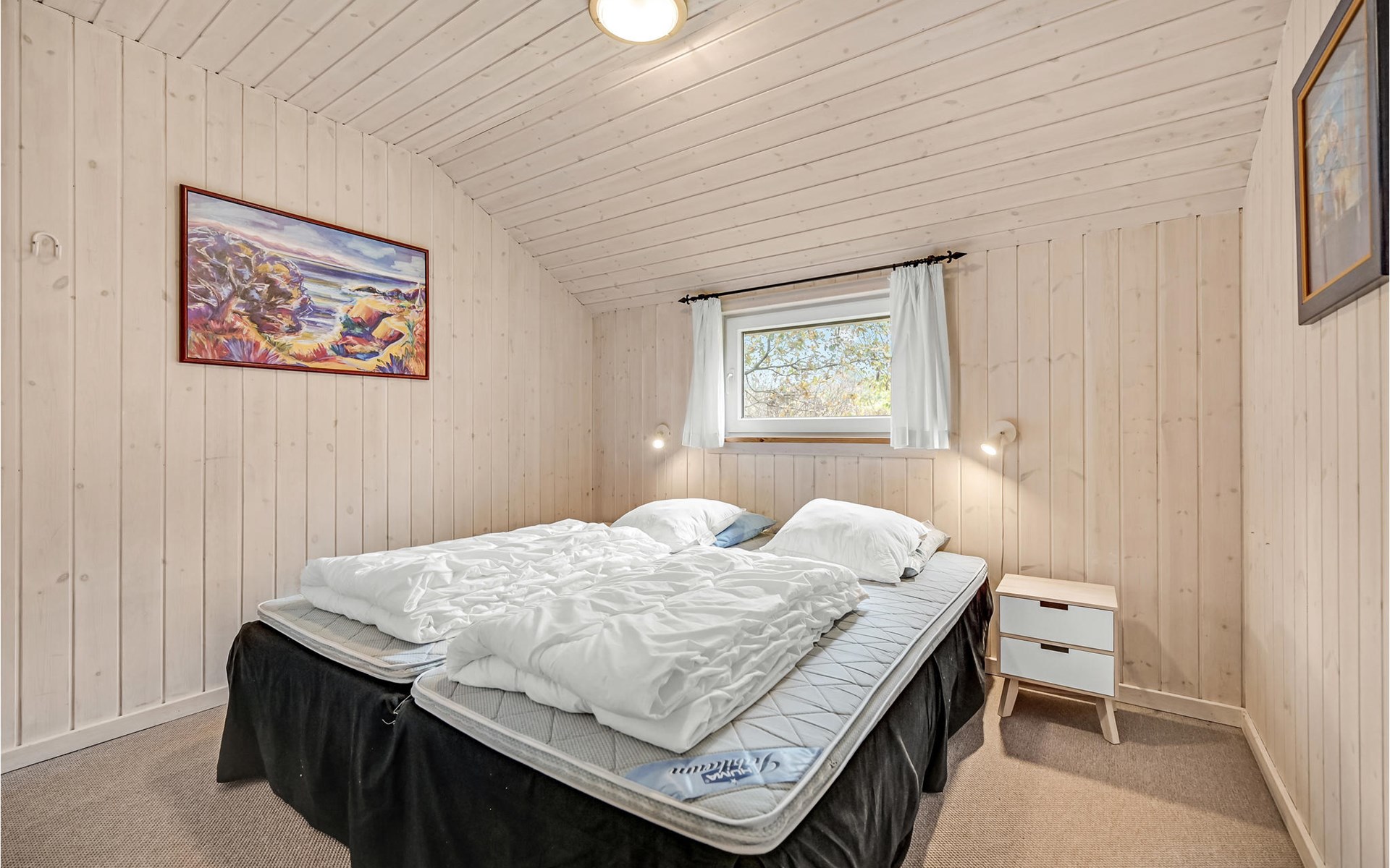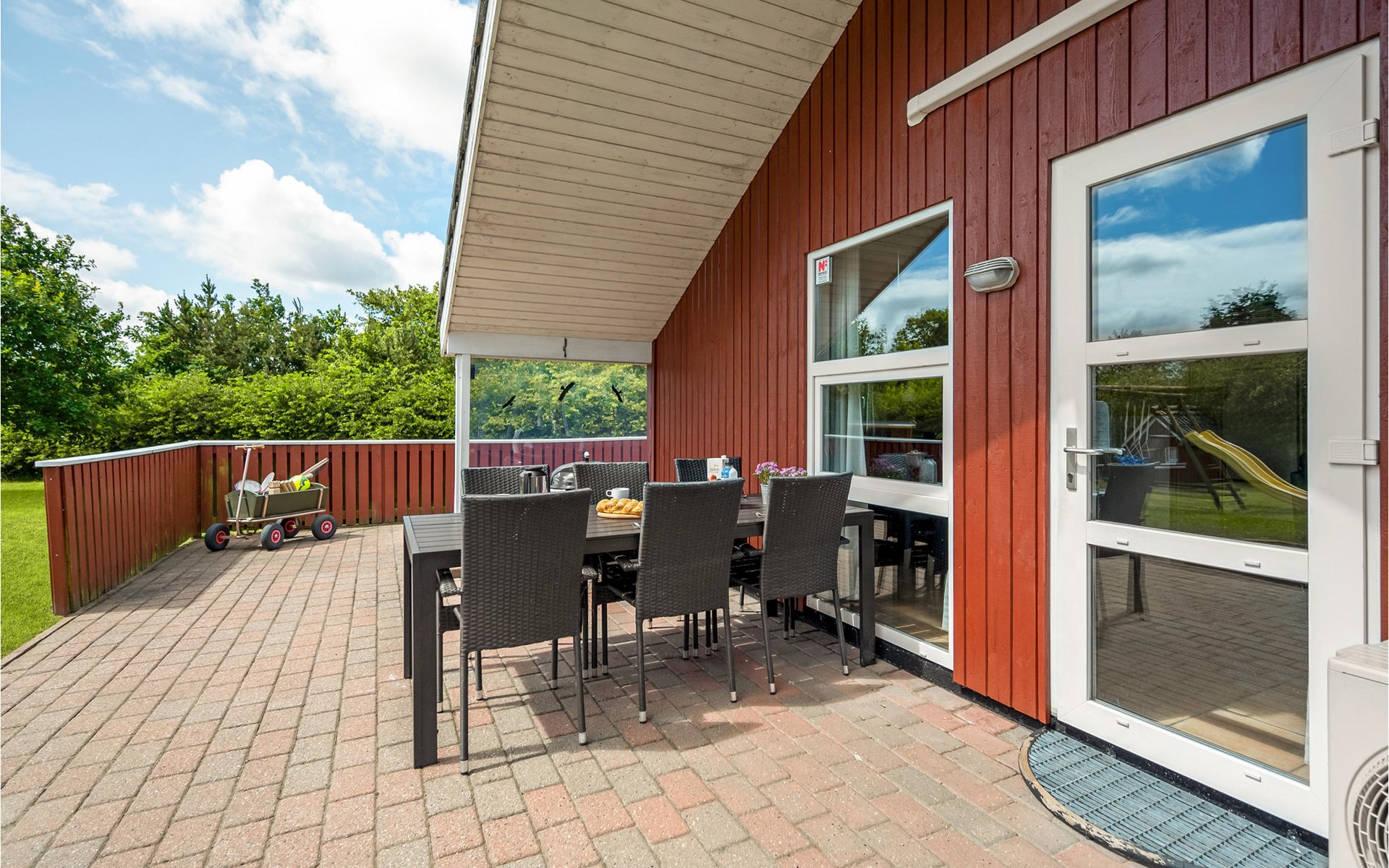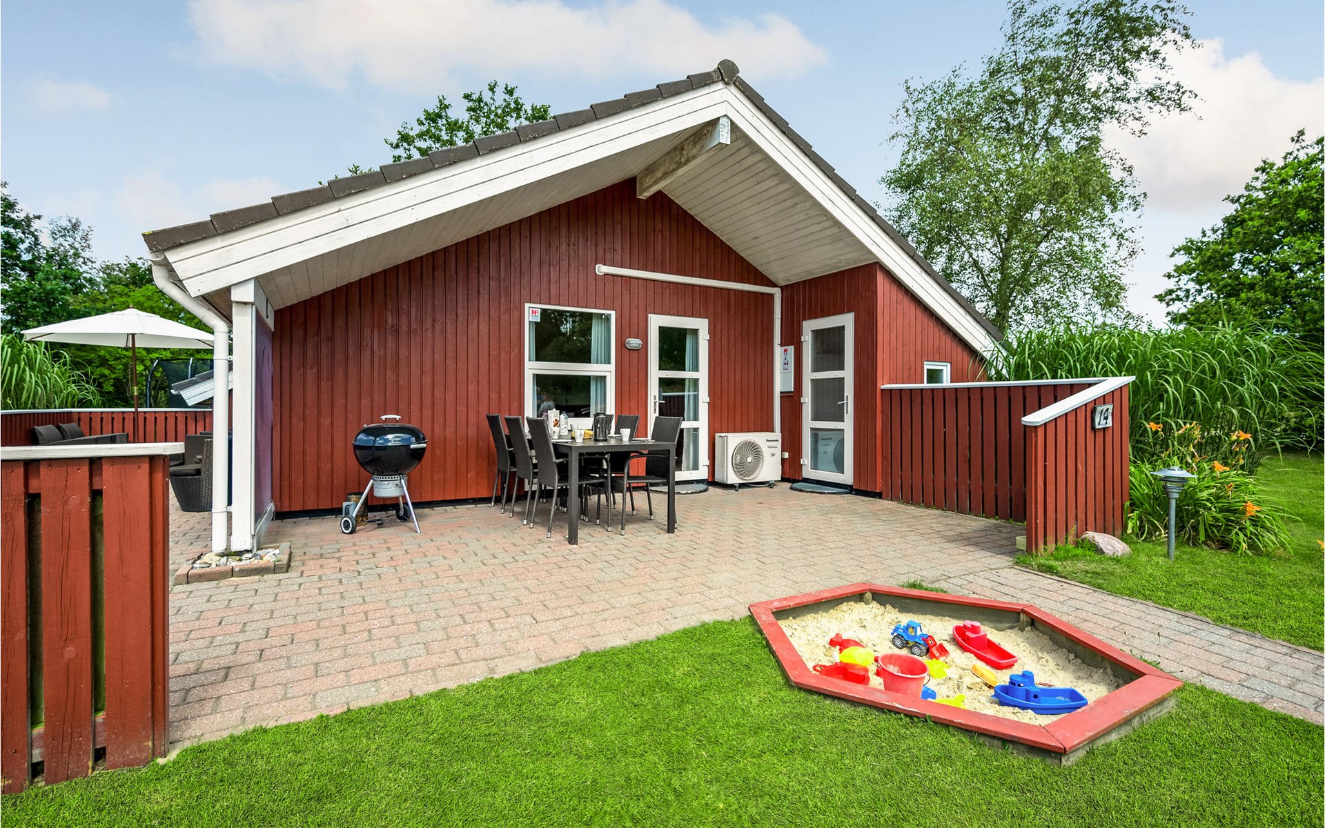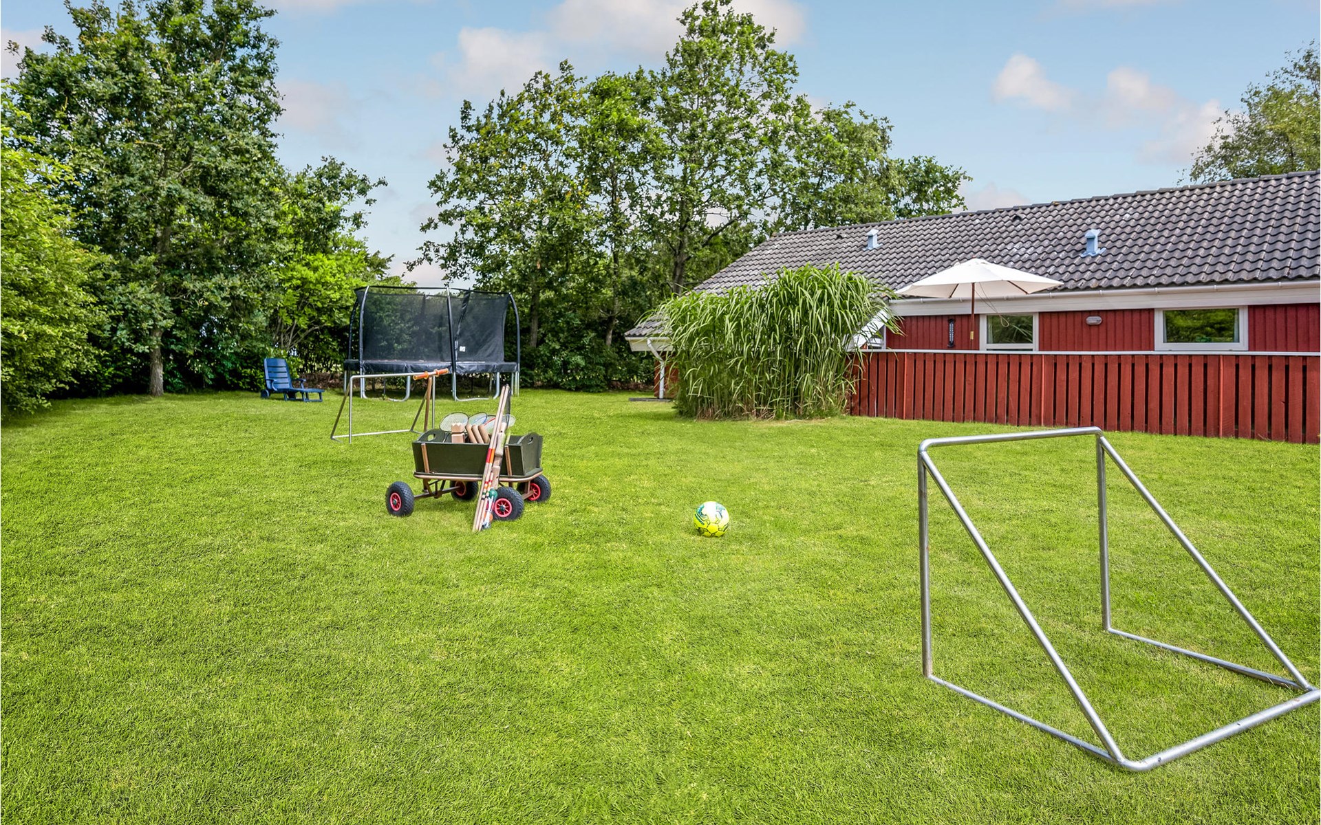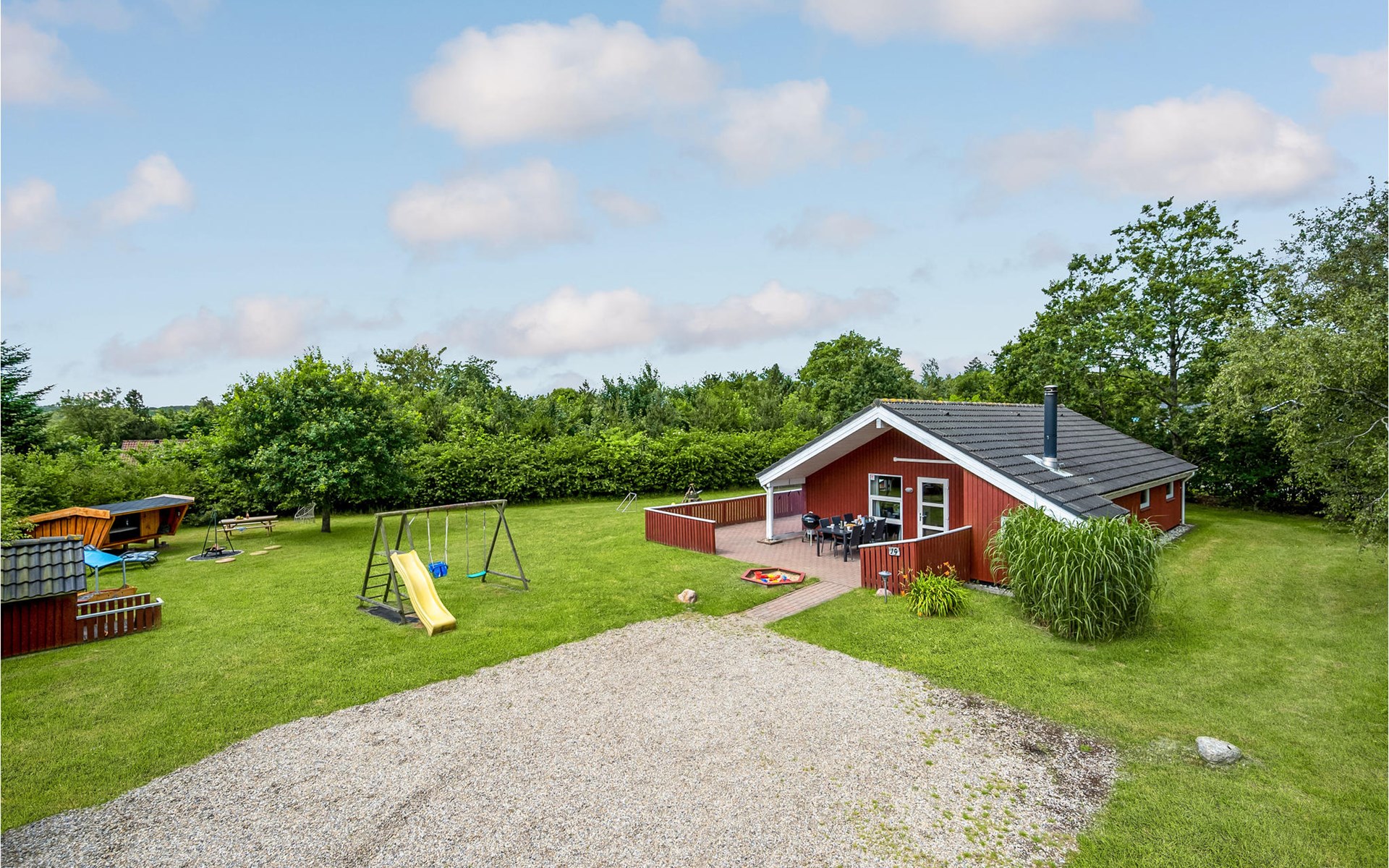 This vacation home offers the optimal vacation for the whole family. It is comfortably furnished and located in Jegum Ferieland with tennis courts, mini golf, playground, cafeteria, grocery store and more nearby. Henne golf course and fishing opportunities nearby. The facilities in this tastefully and comfortably furnished house make it ideal for a stay in any season. The facilities include three bedrooms, a bathroom with sauna and a guest toilet. For families with small children there is a playpen. There is a playhouse on the property and the terrace is partially fenced. The house is situated on a very large natural plot with a typical Danish shelter for sleeping outside. A network of footpaths covers the area, nearby is also the Tirpitz Museum.