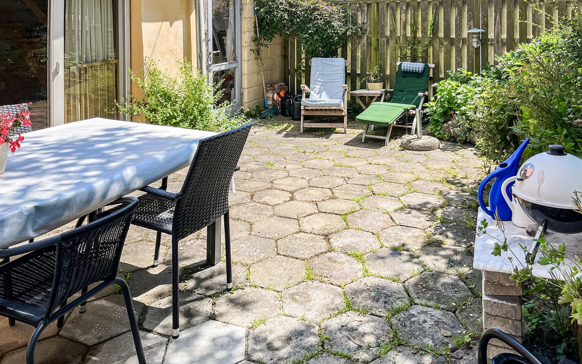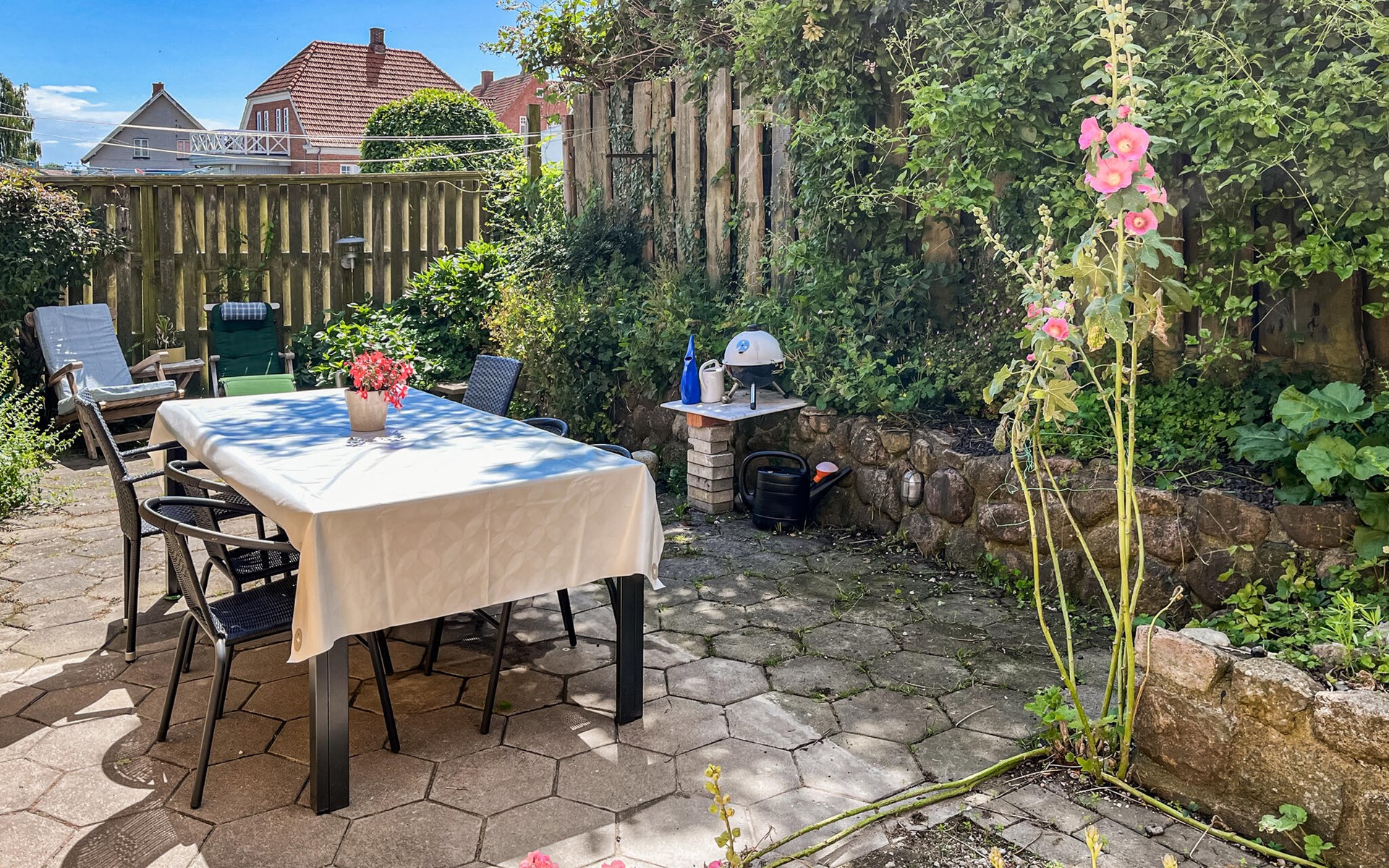 Set the table for a delicious lunch on the terrace and later prepare for the big barbecue dinner after a long day on the island.
