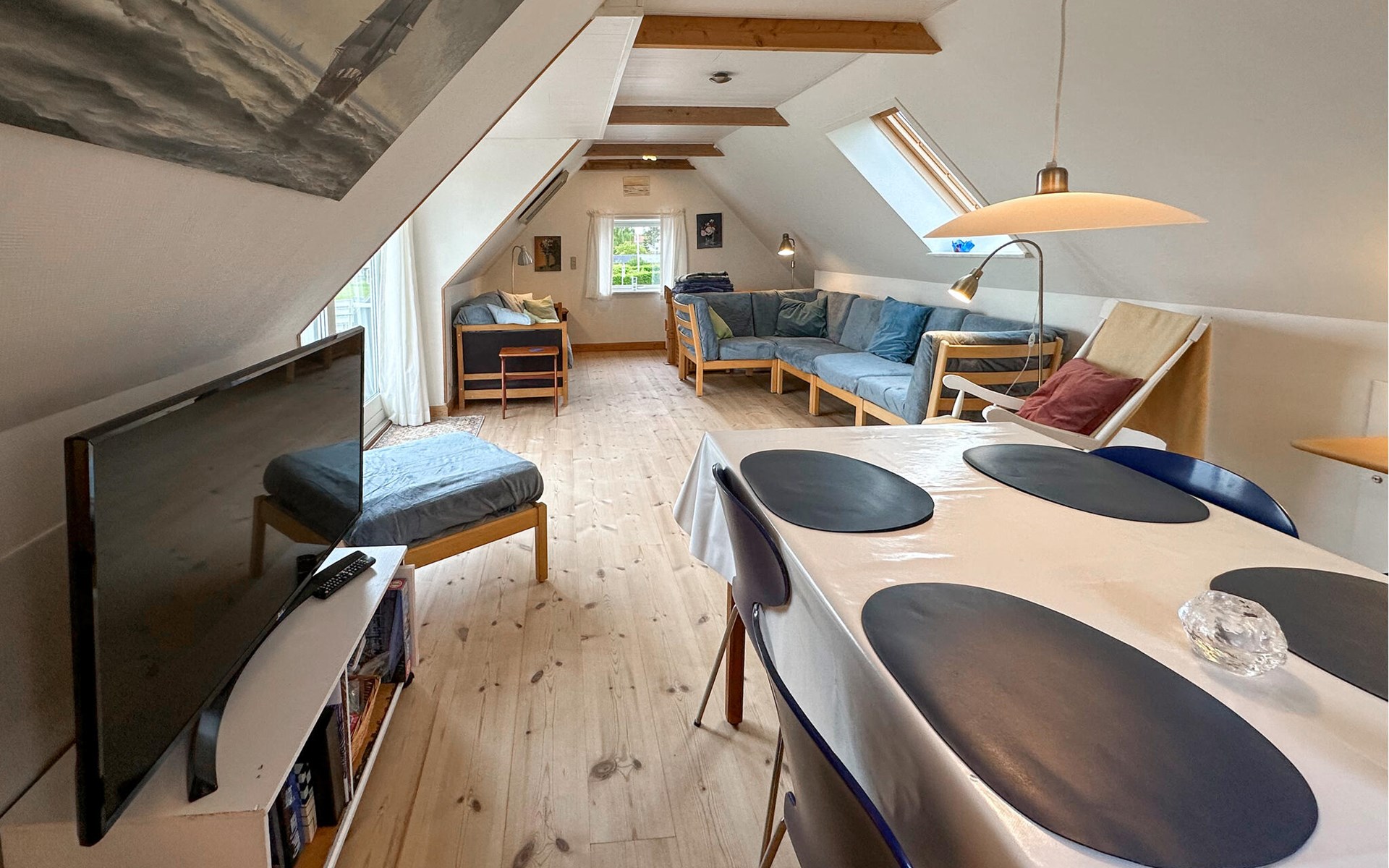 Welcome to a beautiful and tasteful house in the centre of Stubbekøbing. Here, great attention has been paid to detail both inside and out. During the day, everyone will find a cosy corner where you can sit alone with a cup of coffee and a good book or a shared activity. From the living room and the balcony you have a view of the harbour, so you can follow the life in the harbour and watch how the water changes colour depending on the weather.