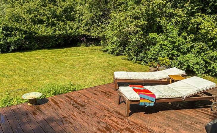 Relax in this classic holiday home with plenty of privacy and a quiet garden location near the beach.