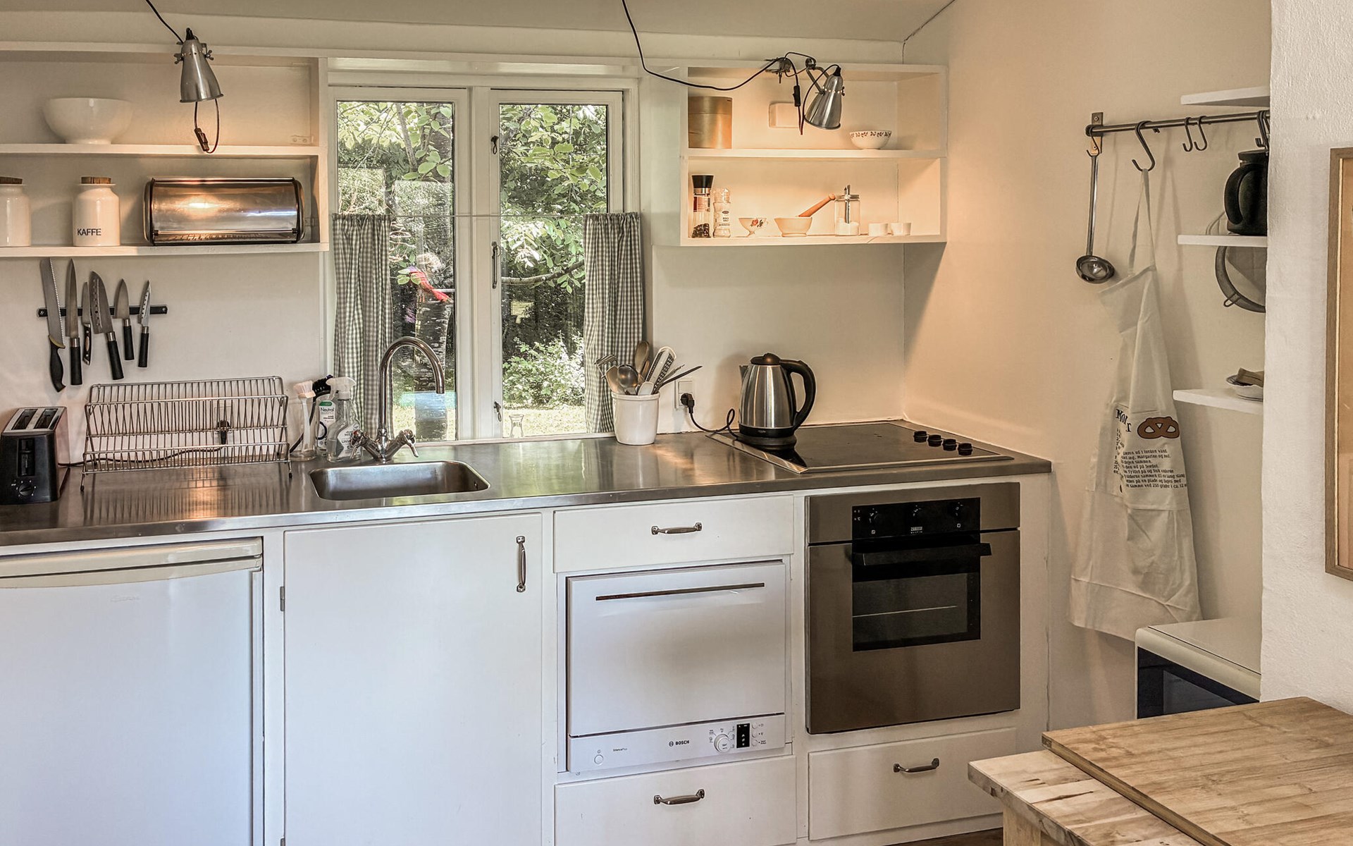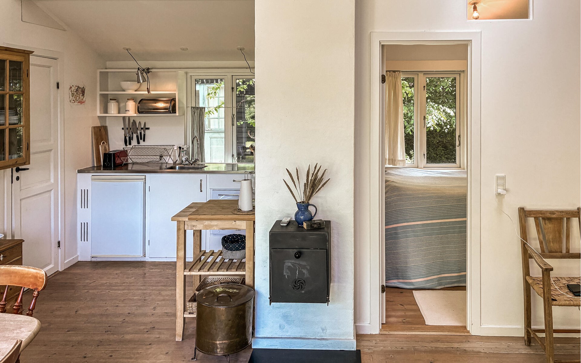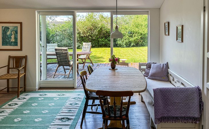 Your cosy holiday home is the ideal place for relaxing holidays with peace, nature and a cosy atmosphere. Enjoy the sheltered location, the lush greenery all around and the short distance to the sea. The bright living and dining area is furnished with attention to detail. Take a seat at the corner bench, gather around the dining table with a view of the terrace or relax on the sofa in the living room.
