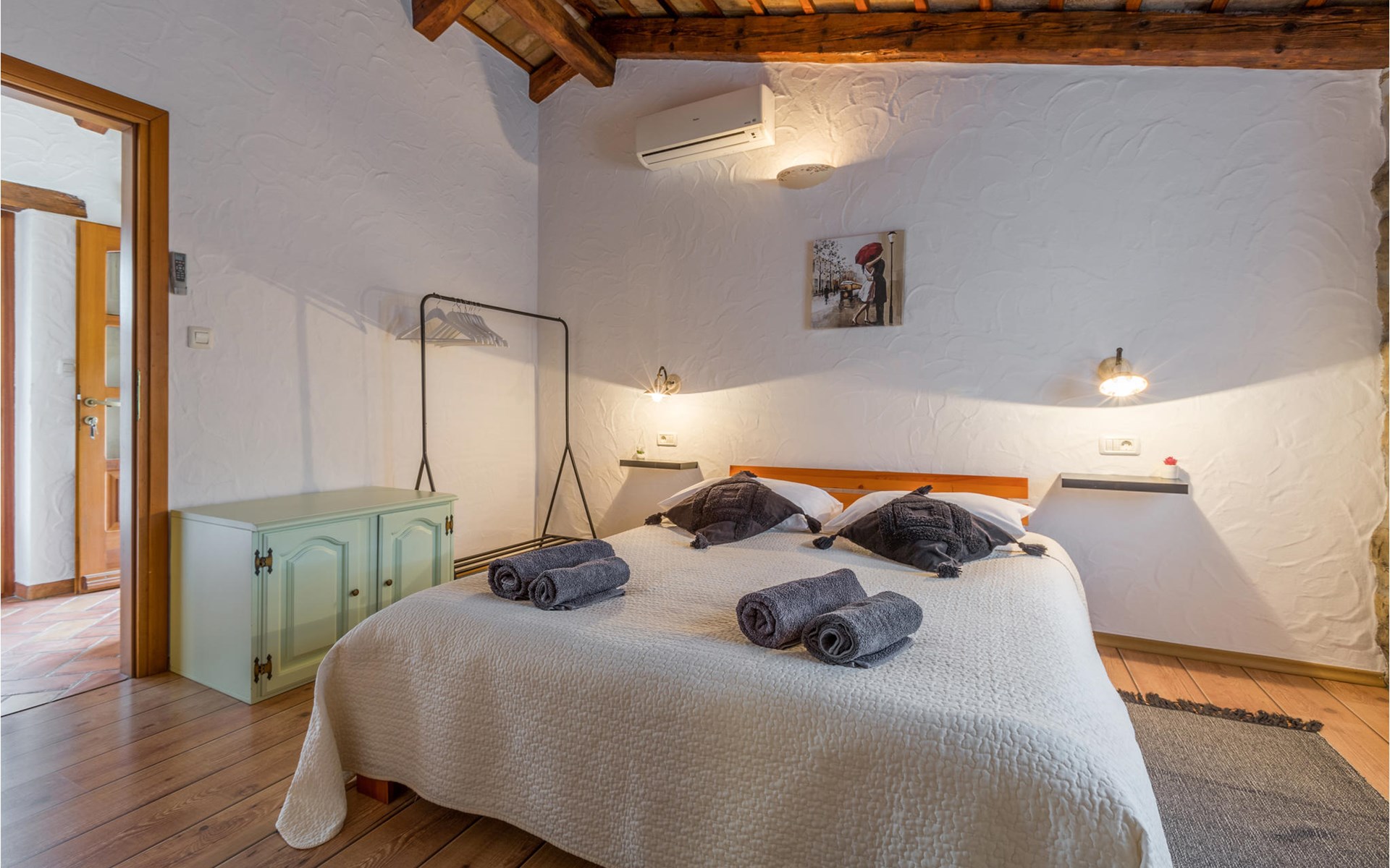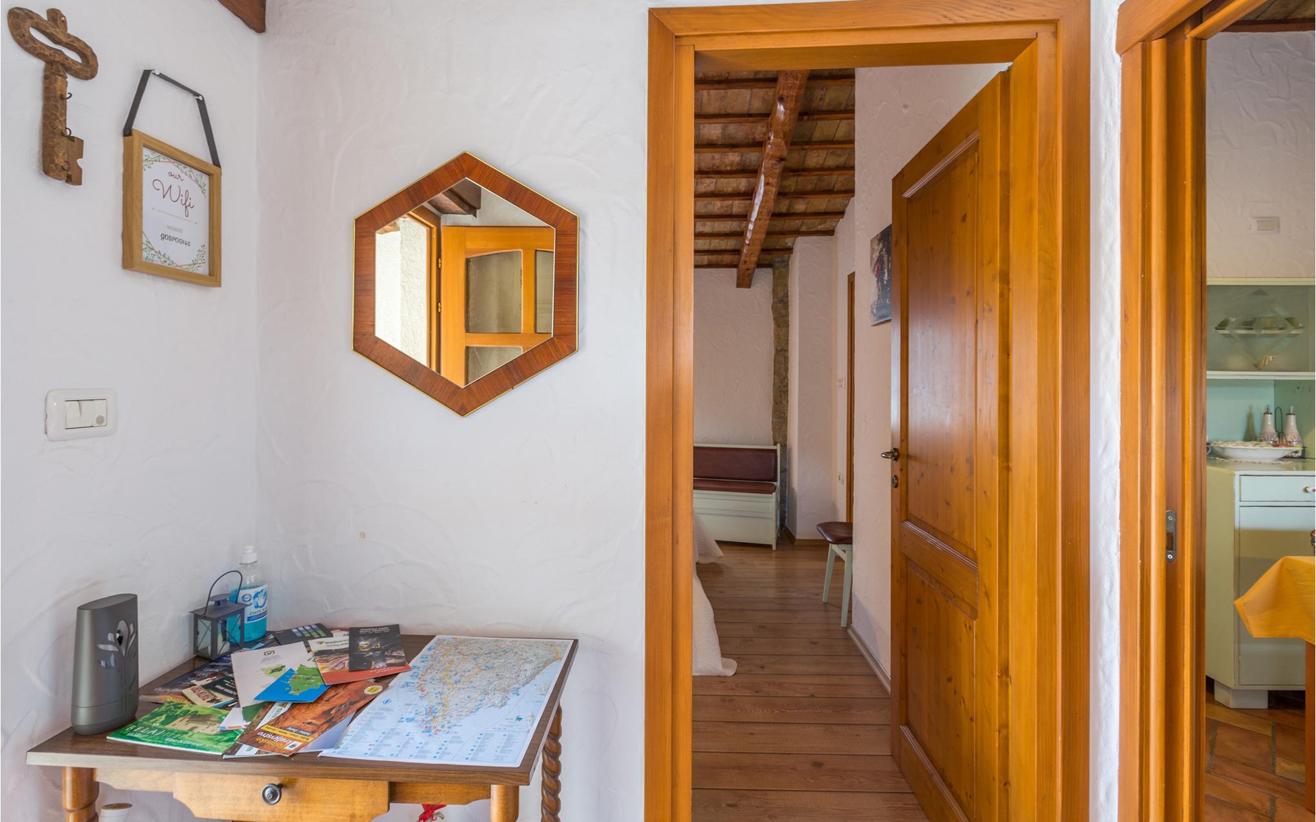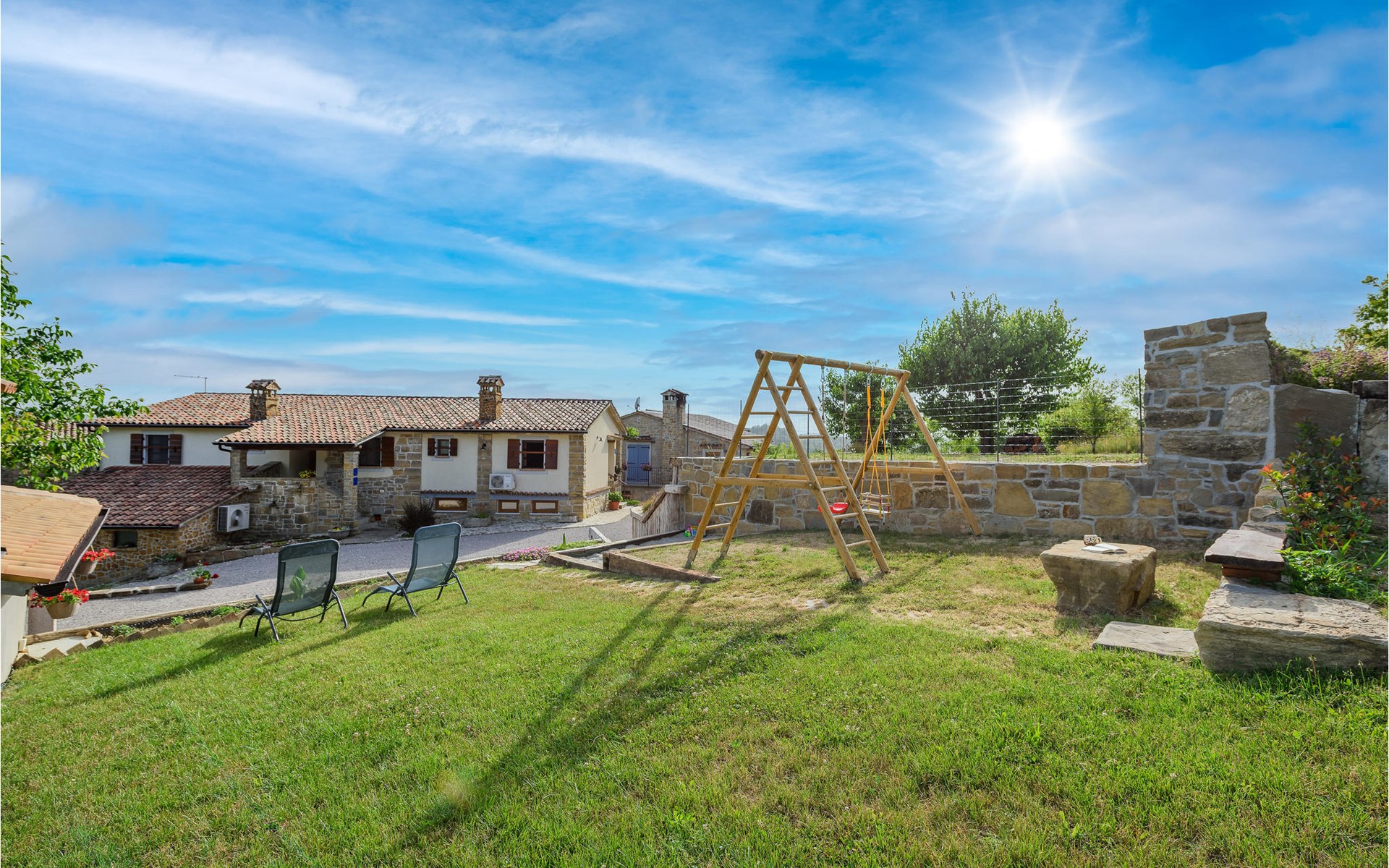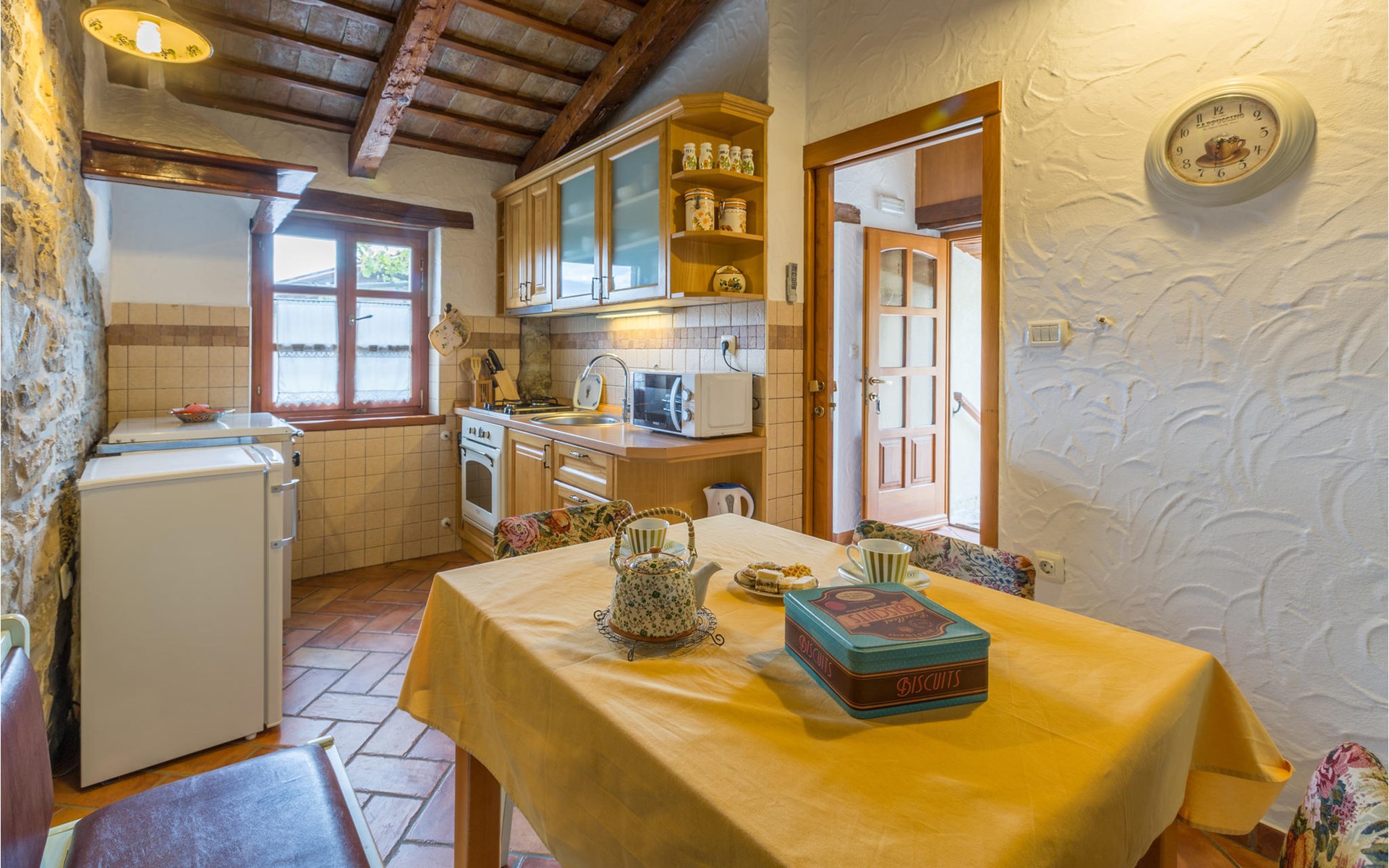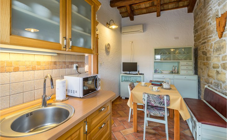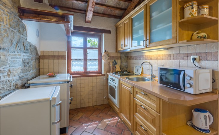 On the first floor of a charming stone house is located this apartment, which is ideal for a couple. The apartment offers space in 1 bedroom, 1 bathroom with shower and a kitchen with dining area. Prepare meals here or end the day with a glass of wine.