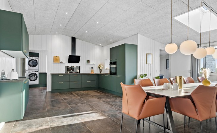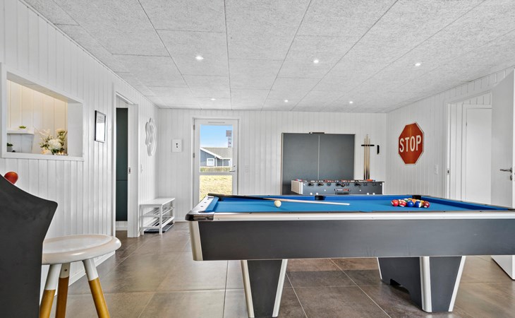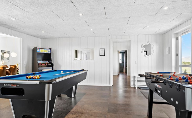 This spacious holiday home with space for two families or a larger group is the ideal retreat to get away from it all and enjoy the fresh air near the coast. You can prepare delicious meals in the spacious, modern kitchen and serve them at the elegant dining table. Put your feet up on the sofa and relax to the full. Entertainment is also provided here. Organise holiday tournaments of table football or billiards in the activity room and play games together on the games console.