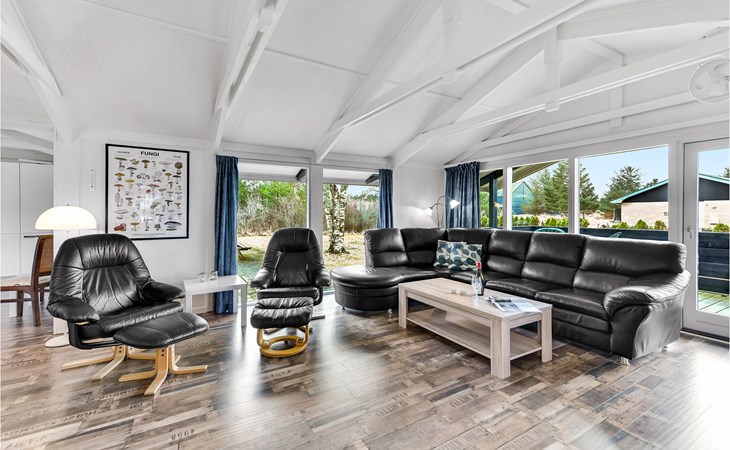 Large and beautiful cottage with a wide range of activities for the whole family. The excellent location allows you to park the car on arrival and walk and bike to everything from shopping to the golf course, Faarup Sommerland and a visit to the beach. The whole house was renovated in 2018 and appears bright and pleasant, and with the division into main house and annex, the family can spread out well, so early risers and night owls both get their money's worth. Here you have space to play and relax, here all family members get their money's worth.