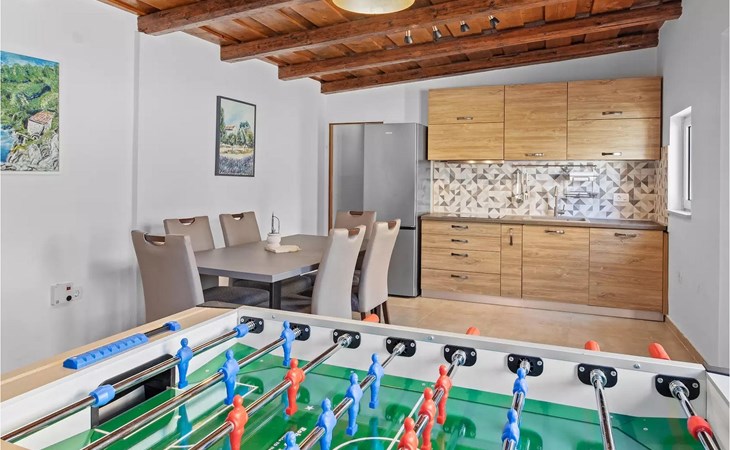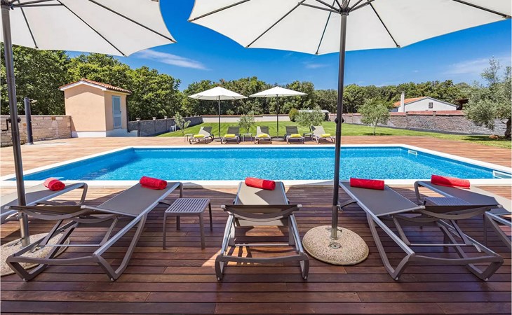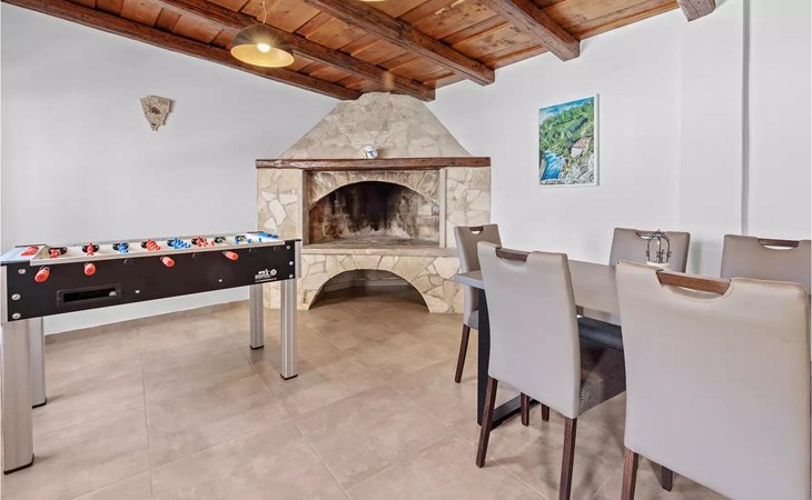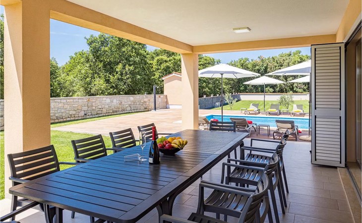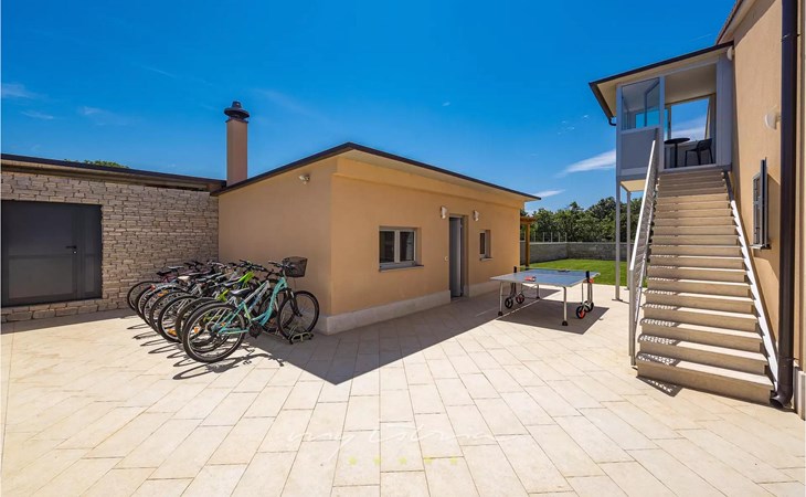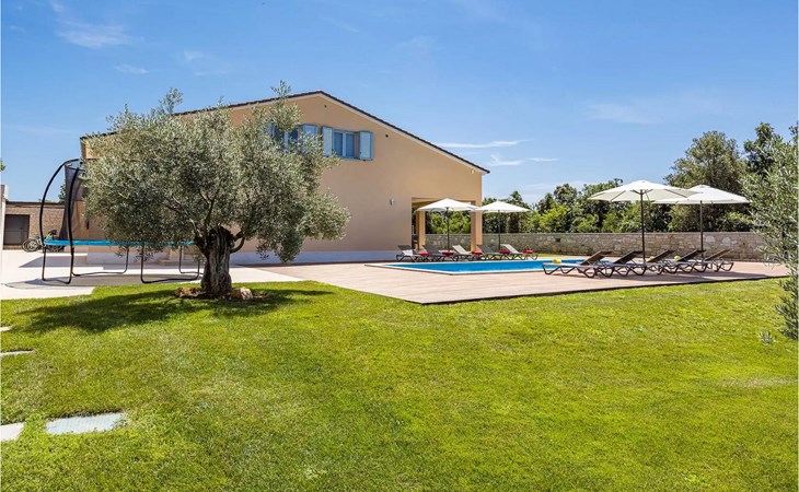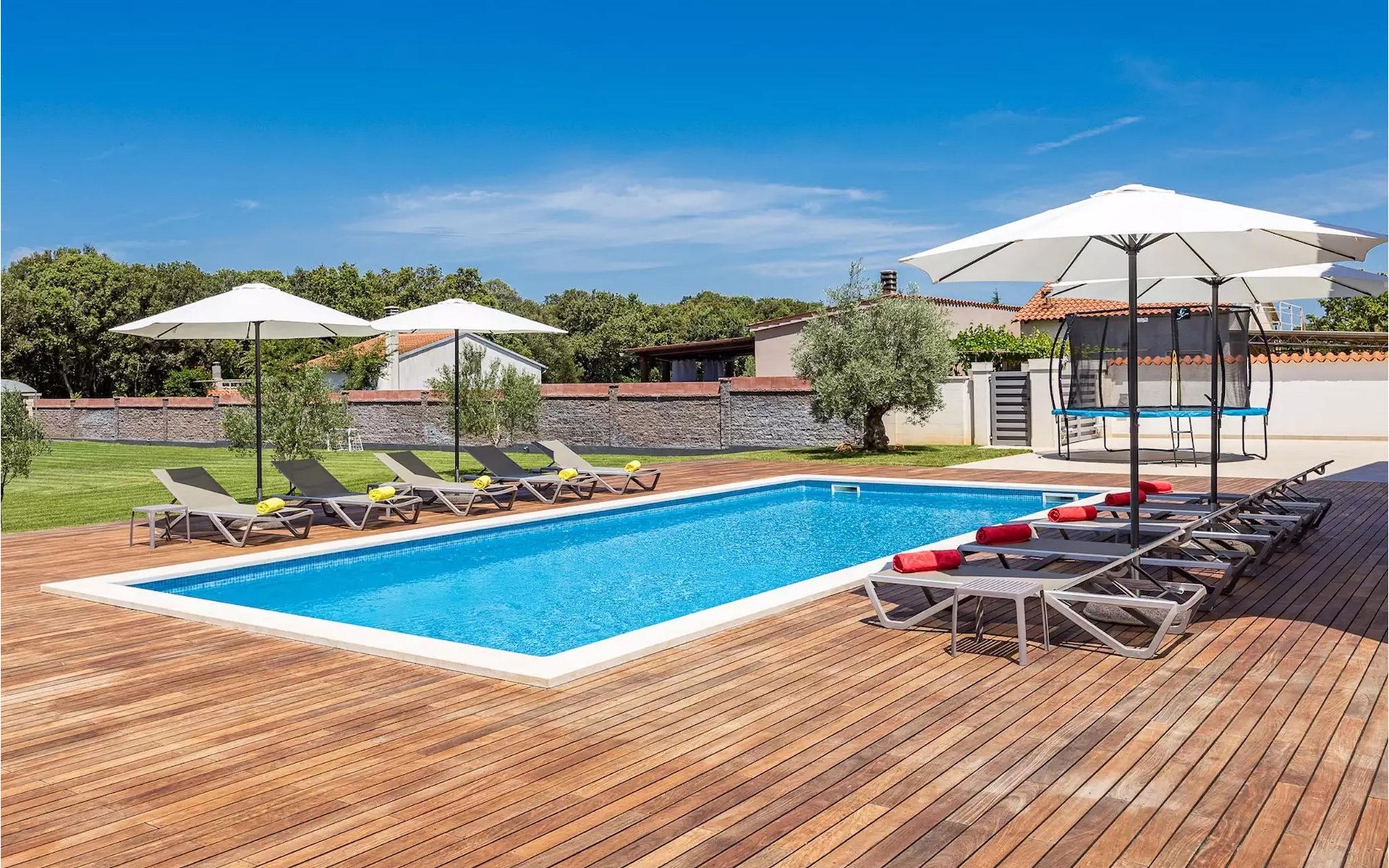 If you want to prepare traditional Istrian dishes, you will also find a summer kitchen in the tavern where you will find everything you need to prepare a delicious meal for the whole family. If you are looking for entertainment, you don't have to worry because at Villa Penelope there is also table soccer, a trampoline, PlayStation 4 Pro and a beautiful large garden where the children can run around and play soccer.Villa Penelope is located in Valbandon, a tourist settlement right on the coast near the picturesque fishing village of Fazana and the beautiful city of Pula, the largest city in Istria. The name Valbandon probably comes from the Italian medieval expression 'abandonata', which means 'abandoned bay'. The proximity to Pula and Fazana, from where you can also reach the beautiful Brijuni National Park, makes Valbandon the ideal choice for a quieter family vacation with children. Valbandon is one of the two villages that make up the town of Fazana. Fazana is known for its excellent gastronomic offer: Olive oil, wine, prosciutto and sardines. Here you will also find about 60 cycling trails, some of which lead along the beautiful Adriatic coast with a view of the Brijuni National Park. There is also a 4 km long hiking trail along the coast, ideal for romantic walks with your loved one. Fazana is also a place where you can enjoy various water sports: You can rent a jet ski, speedboat, paddle boat, canoe and bicycles. You can also try windsurfing and diving. Nearby you will find the Jangalooz adventure park. Pula is the largest city on the Istrian peninsula and one of the most important tourist cities with plenty to see and explore. Pula was built by Romans in 46 b.c. Although Pula is like an ancient museum in the open, you must also visit the largest monument, the famous amphitheater from the 1st century, located close to the city center. Many events take place here, from concerts and film screenings to sporting events.
