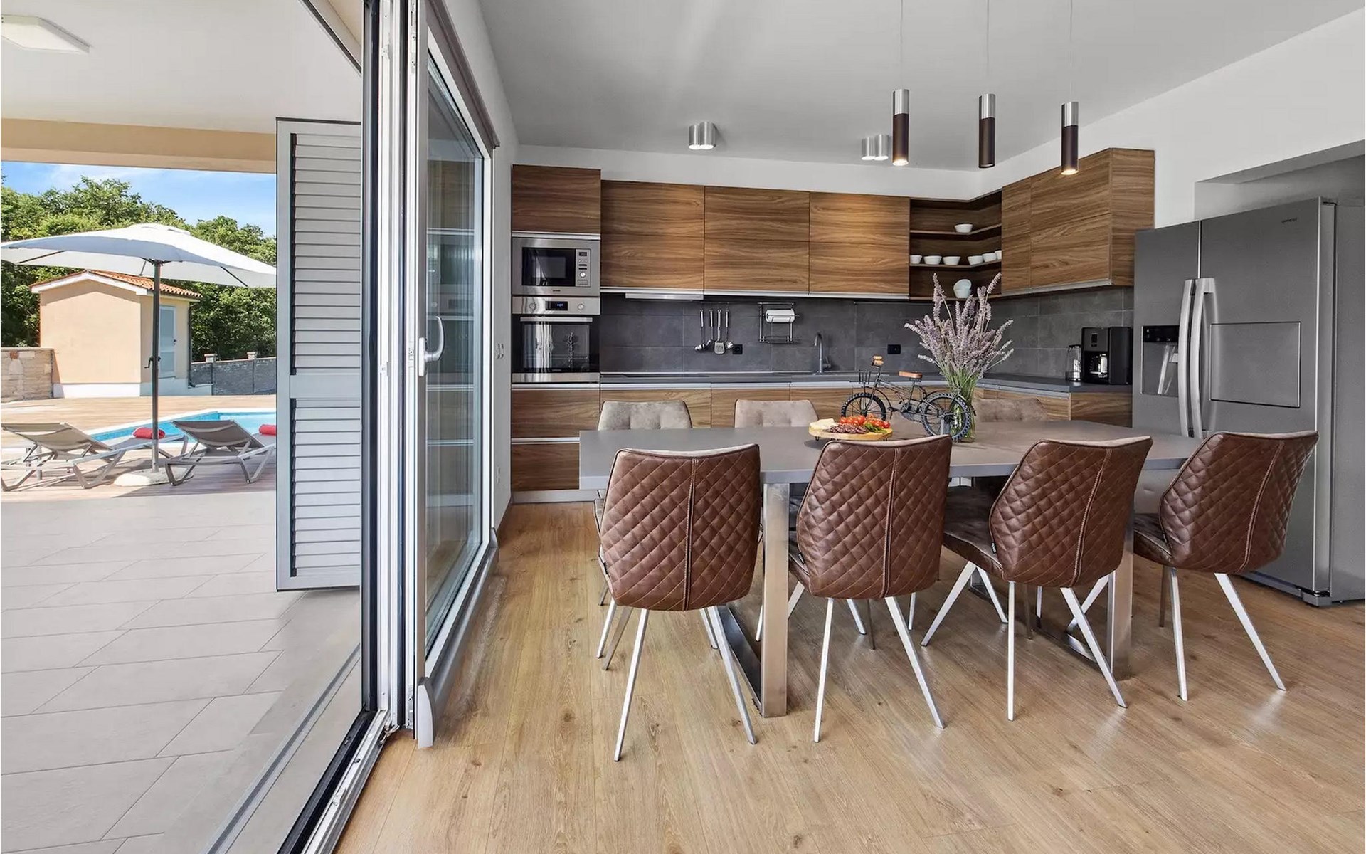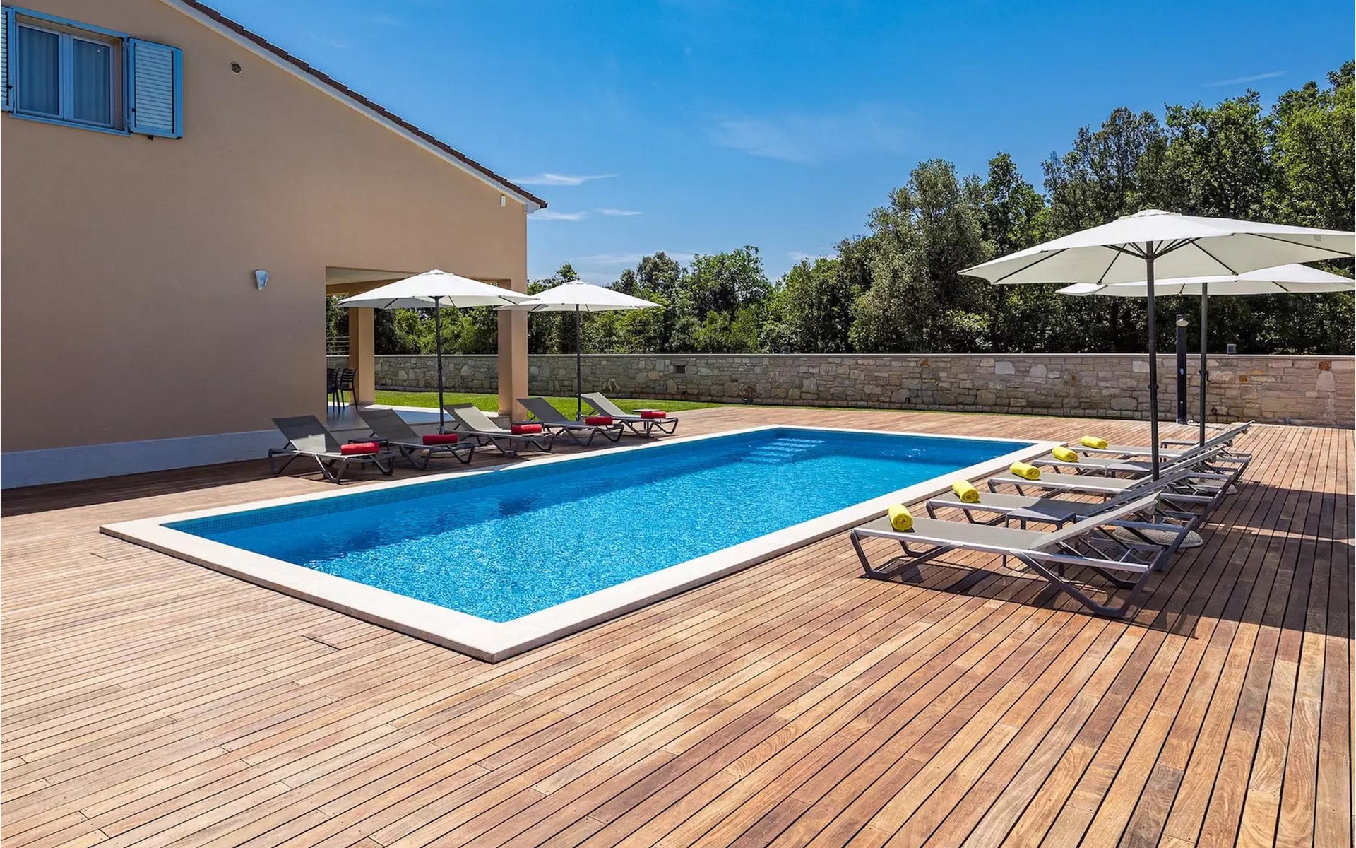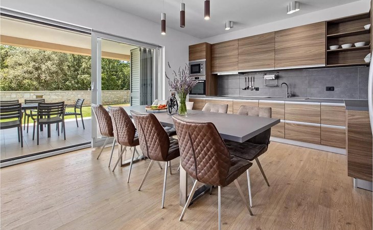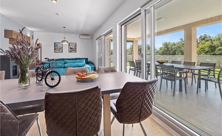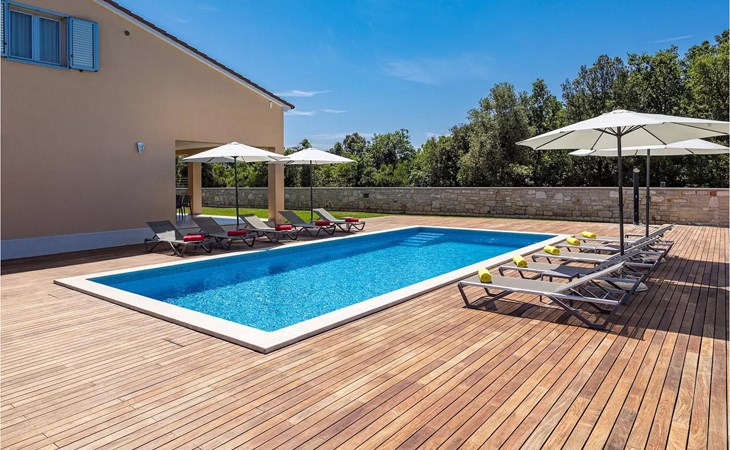 If you want to prepare traditional Istrian dishes, you will also find a summer kitchen in the tavern where you will find everything you need to prepare a delicious meal for the whole family. If you are looking for entertainment, you don't have to worry because at Villa Penelope there is also table soccer, a trampoline, PlayStation 4 Pro and a beautiful large garden where the children can run around and play soccer.Villa Penelope is located in Valbandon, a tourist settlement right on the coast near the picturesque fishing village of Fazana and the beautiful city of Pula, the largest city in Istria. The name Valbandon probably comes from the Italian medieval expression 'abandonata', which means 'abandoned bay'. The proximity to Pula and Fazana, from where you can also reach the beautiful Brijuni National Park, makes Valbandon the ideal choice for a quieter family vacation with children. Valbandon is one of the two villages that make up the town of Fazana. Fazana is known for its excellent gastronomic offer: Olive oil, wine, prosciutto and sardines. Here you will also find about 60 cycling trails, some of which lead along the beautiful Adriatic coast with a view of the Brijuni National Park. There is also a 4 km long hiking trail along the coast, ideal for romantic walks with your loved one. Fazana is also a place where you can enjoy various water sports: You can rent a jet ski, speedboat, paddle boat, canoe and bicycles. You can also try windsurfing and diving. Nearby you will find the Jangalooz adventure park. Pula is the largest city on the Istrian peninsula and one of the most important tourist cities with plenty to see and explore. Pula was built by Romans in 46 b.c. Although Pula is like an ancient museum in the open, you must also visit the largest monument, the famous amphitheater from the 1st century, located close to the city center. Many events take place here, from concerts and film screenings to sporting events.