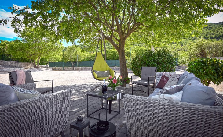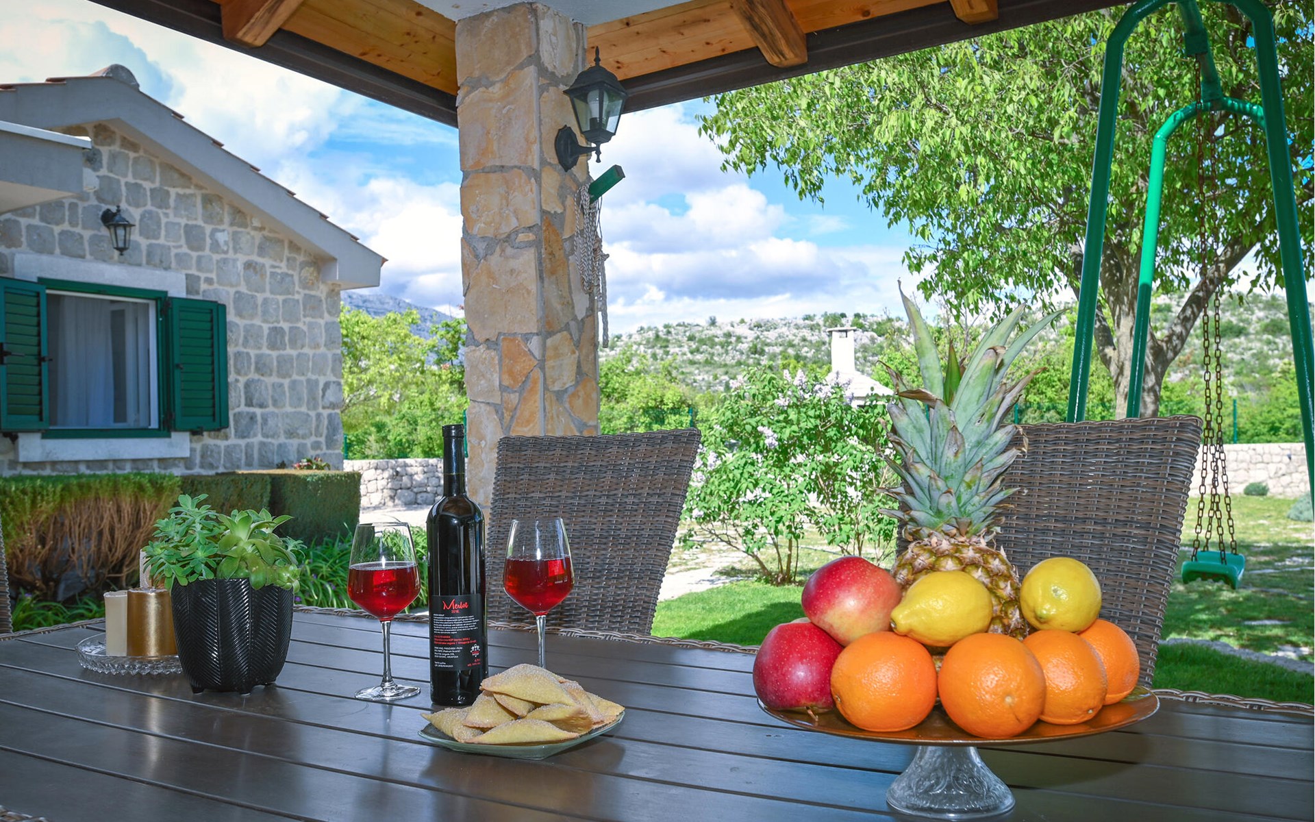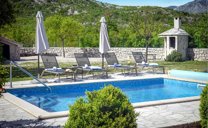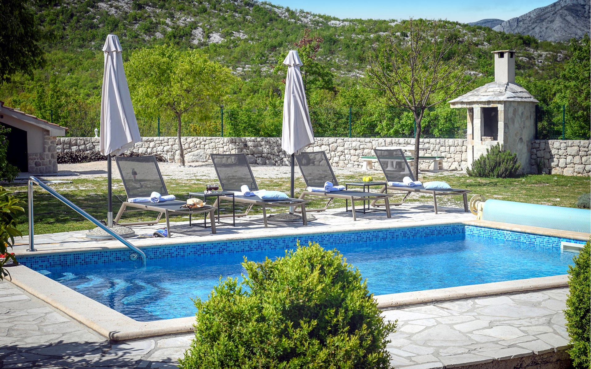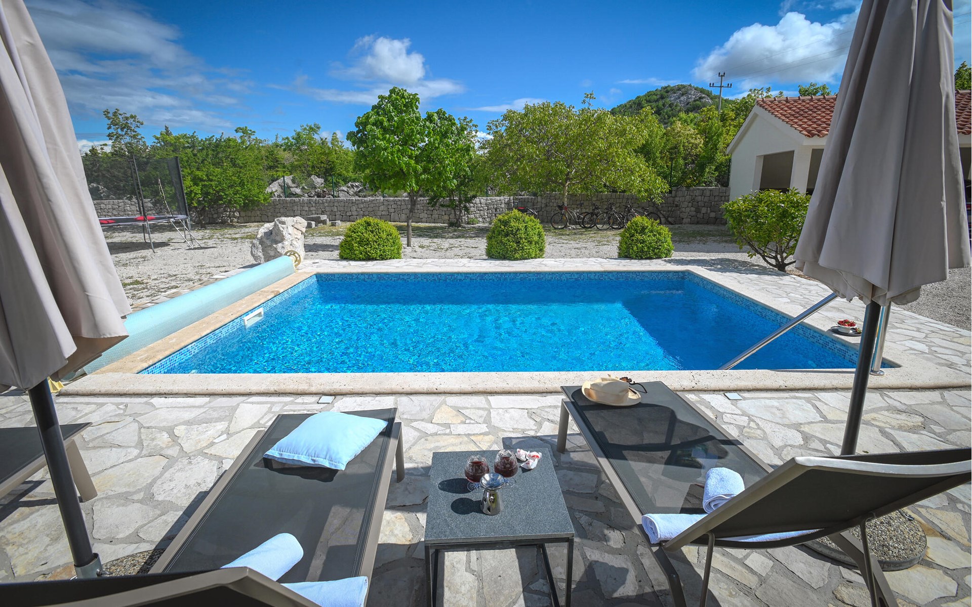 You've come to the right place if you're looking for a picturesque villa away from the crowds, surrounded by nature and with fantastic amenities for the kids and yourself. Villa Silentio Dalmatia is an ideal vacation villa for up to 5 people with a private pool. In addition to the heated pool, which is undoubtedly the highlight of the villa, you can relax on the comfortable sun loungers while the children play on the trampoline or table tennis. In the morning, you can enjoy your first cup of coffee and relax in the natural shade on the garden furniture in good company. The interior of this single-storey vacation home is also very appealing. Guests have access to a living room with fully equipped kitchen and dining room as well as two cozy and fully air-conditioned double bedrooms and two bathrooms with shower. Ride around the area on the villa's four bicycles, prepare some home-cooked meals from the vegetables and fruits grown in the eco-garden of Villa Silentio Dalmatia, have a wonderful barbecue and simply enjoy your stay in Croatia. This villa is an excellent choice for a peaceful vacation with many exciting things to do and see.The name Villa Silentio Dalmatia perfectly describes the location of the villa. It is located in the Dalmatian hinterland, more precisely in the small village of Duge Njive, close to the tourist hotspot Makarska. As the villa is surrounded by pure nature, it offers guests peace and quiet. Makarska is an excellent choice for a family vacation, with many exciting activities and sights to see. The beaches of the Makarska Riviera are known for their crystal clear waters and family-friendly beaches with a variety of sporting activities such as parasailing, yeti-skiing and diving. You have plenty of fantastic restaurants to choose from and the vibrant town is incredible. We recommend visiting the Biokovo Nature Park with Croatia's first skywalk, which is 1288 meters above sea level. This is not for the faint hearted. So if you're looking for an adrenaline rush, this is the place to be. The location of Villa Silentio Dalmatia is ideal as it is only a short drive away from the major historic towns on the Adriatic coast such as Trogir and Split. Perfect for a day trip to explore Croatia's traditions and ancient beauty. These two cities are even under UNESCO protection and are therefore well worth a visit. You can explore Croatia's stunning coastline while relaxing in your own villa with private pool and finding some much-needed peace and quiet.