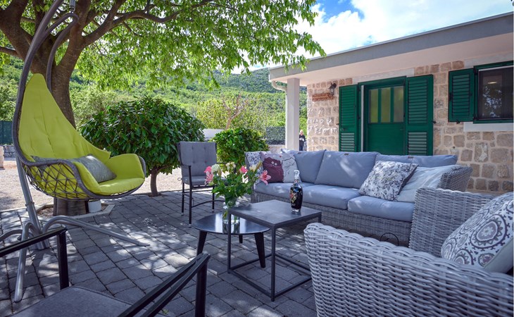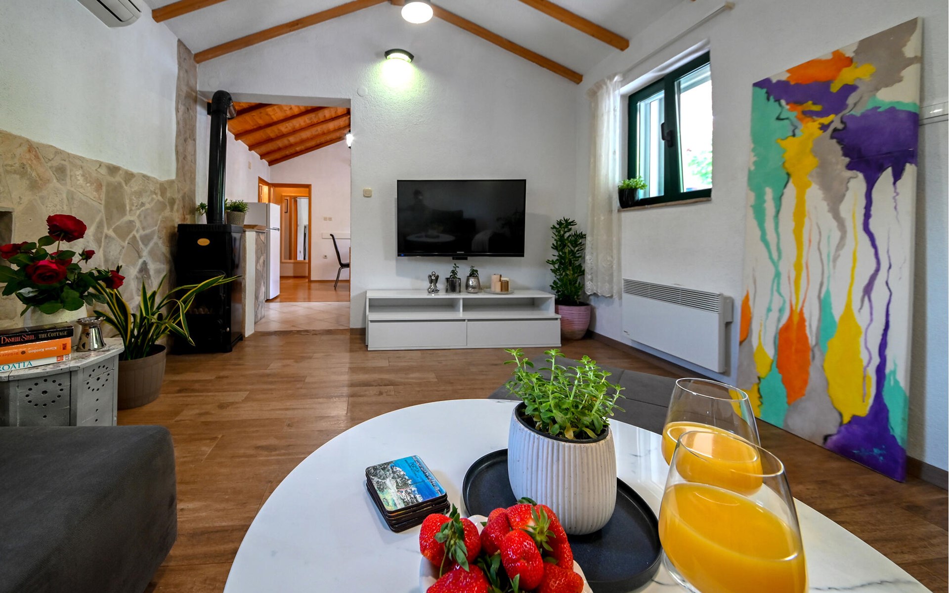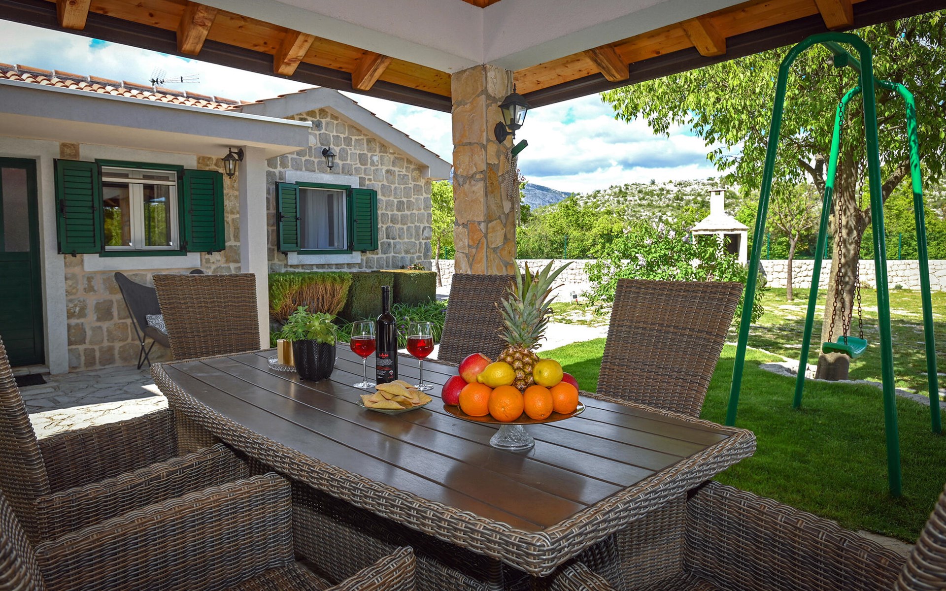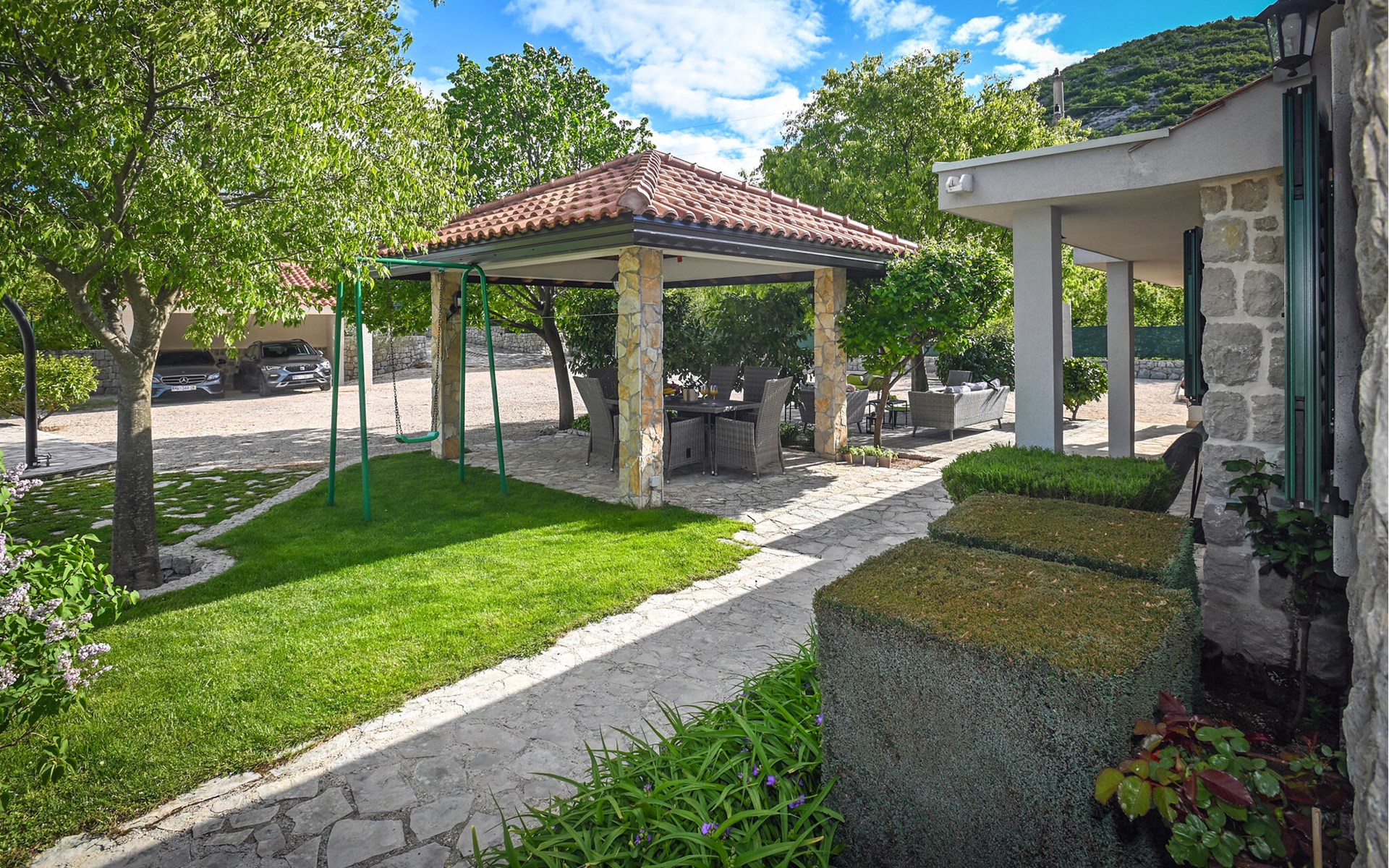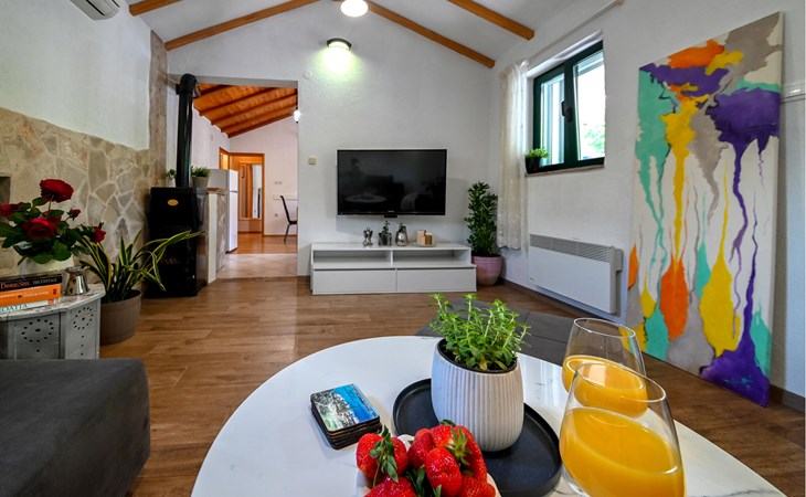 You've come to the right place if you're looking for a picturesque villa away from the crowds, surrounded by nature and with fantastic amenities for the kids and yourself. Villa Silentio Dalmatia is an ideal vacation villa for up to 5 people with a private pool. In addition to the heated pool, which is undoubtedly the highlight of the villa, you can relax on the comfortable sun loungers while the children play on the trampoline or table tennis. In the morning, you can enjoy your first cup of coffee and relax in the natural shade on the garden furniture in good company. The interior of this single-storey vacation home is also very appealing. Guests have access to a living room with fully equipped kitchen and dining room as well as two cozy and fully air-conditioned double bedrooms and two bathrooms with shower. Ride around the area on the villa's four bicycles, prepare some home-cooked meals from the vegetables and fruits grown in the eco-garden of Villa Silentio Dalmatia, have a wonderful barbecue and simply enjoy your stay in Croatia. This villa is an excellent choice for a peaceful vacation with many exciting things to do and see.The name Villa Silentio Dalmatia perfectly describes the location of the villa. It is located in the Dalmatian hinterland, more precisely in the small village of Duge Njive, close to the tourist hotspot Makarska. As the villa is surrounded by pure nature, it offers guests peace and quiet. Makarska is an excellent choice for a family vacation, with many exciting activities and sights to see. The beaches of the Makarska Riviera are known for their crystal clear waters and family-friendly beaches with a variety of sporting activities such as parasailing, yeti-skiing and diving. You have plenty of fantastic restaurants to choose from and the vibrant town is incredible. We recommend visiting the Biokovo Nature Park with Croatia's first skywalk, which is 1288 meters above sea level. This is not for the faint hearted. So if you're looking for an adrenaline rush, this is the place to be. The location of Villa Silentio Dalmatia is ideal as it is only a short drive away from the major historic towns on the Adriatic coast such as Trogir and Split. Perfect for a day trip to explore Croatia's traditions and ancient beauty. These two cities are even under UNESCO protection and are therefore well worth a visit. You can explore Croatia's stunning coastline while relaxing in your own villa with private pool and finding some much-needed peace and quiet.